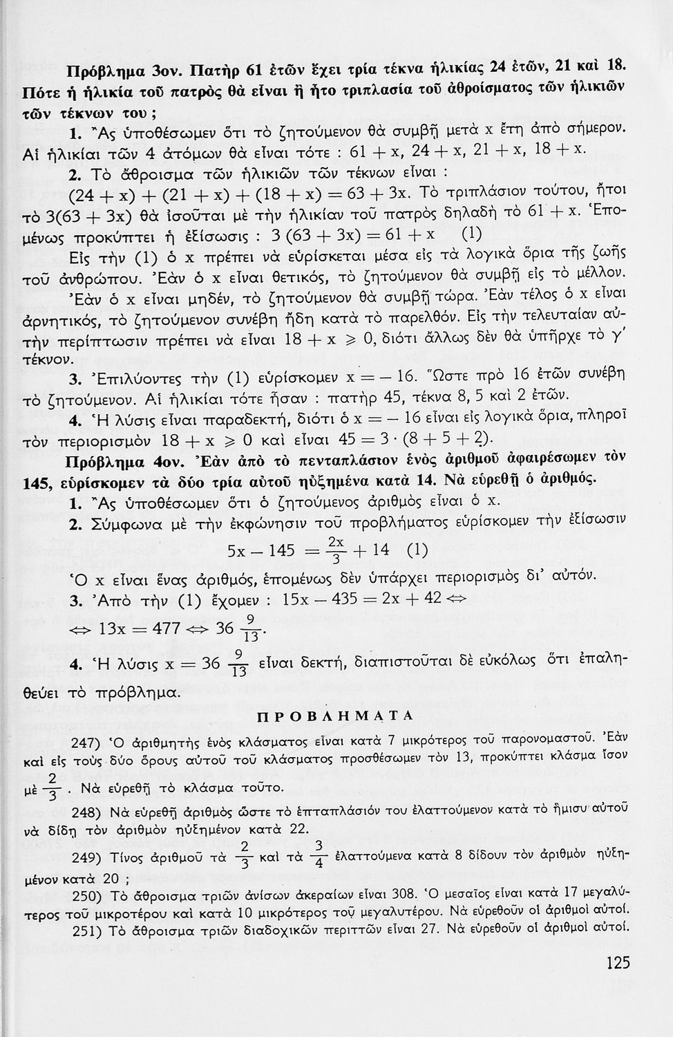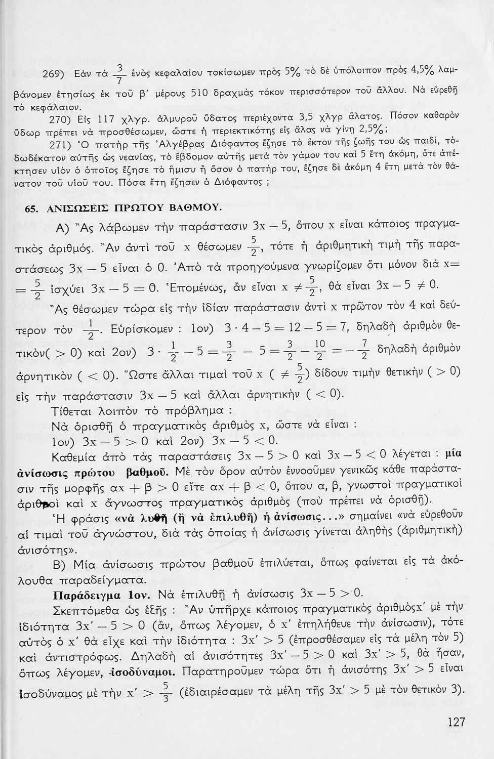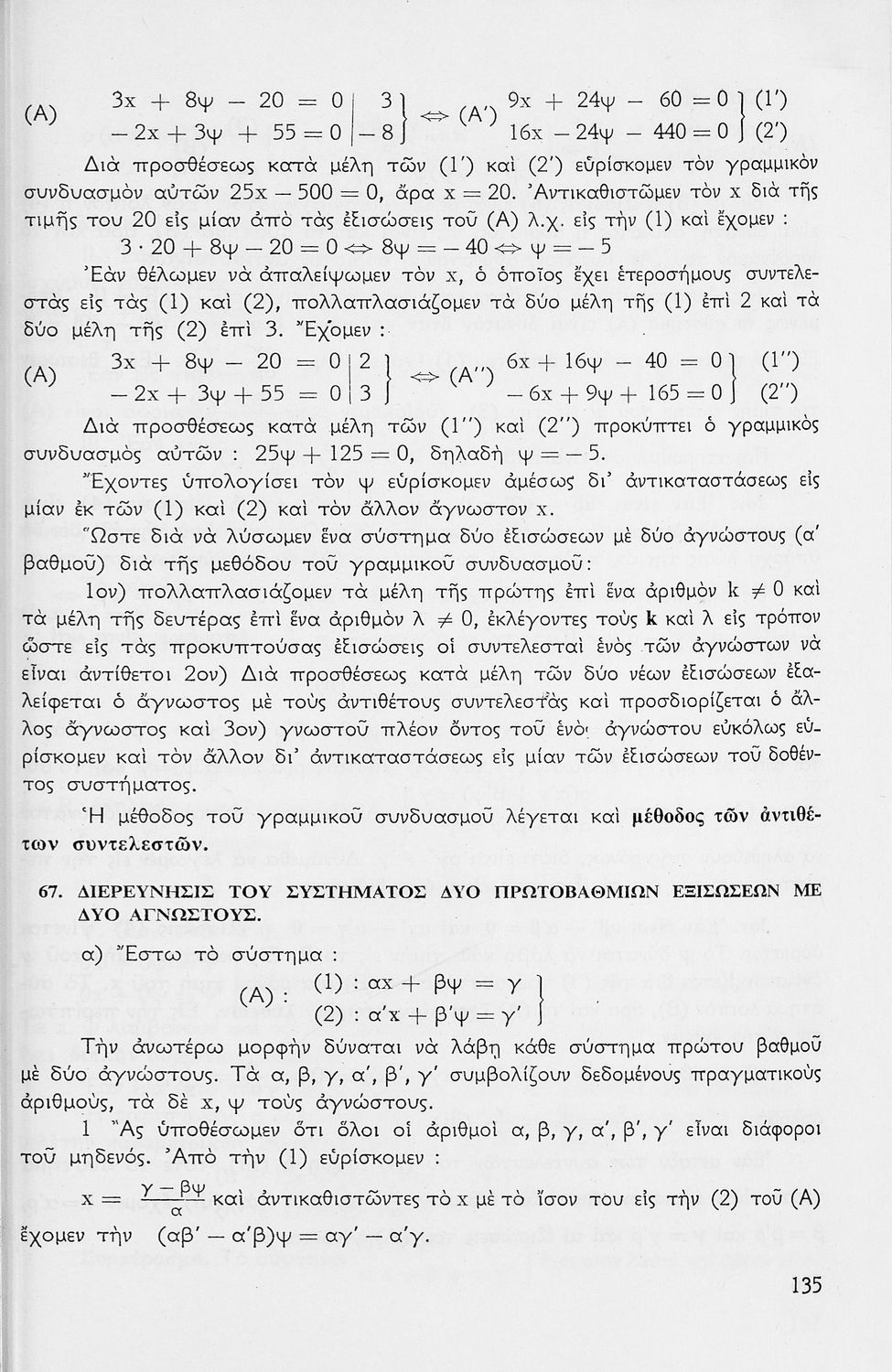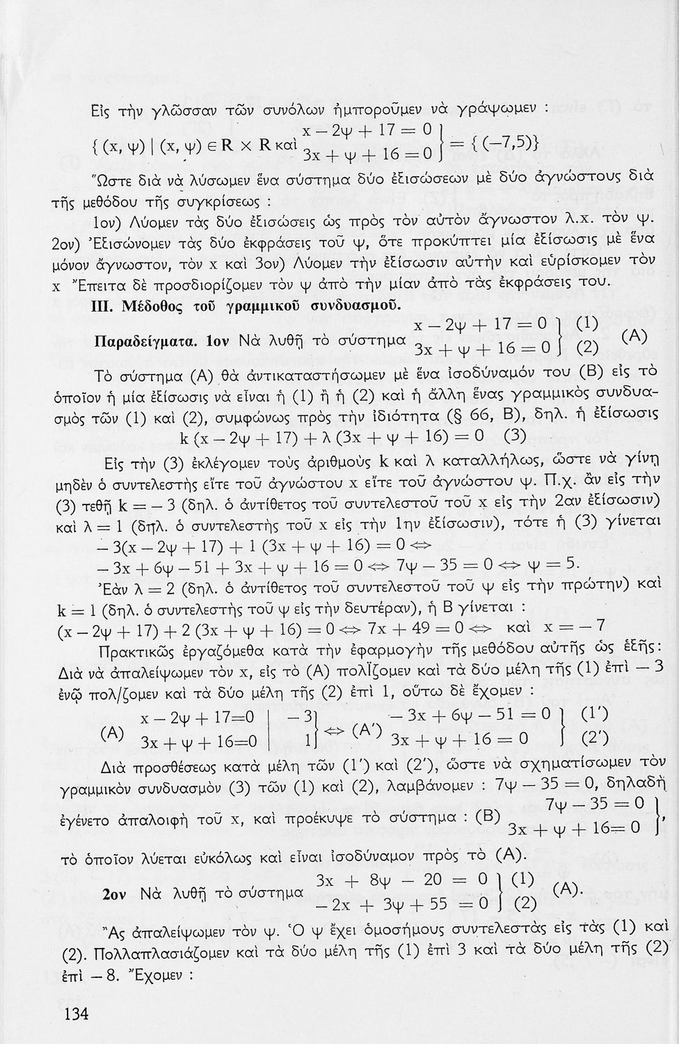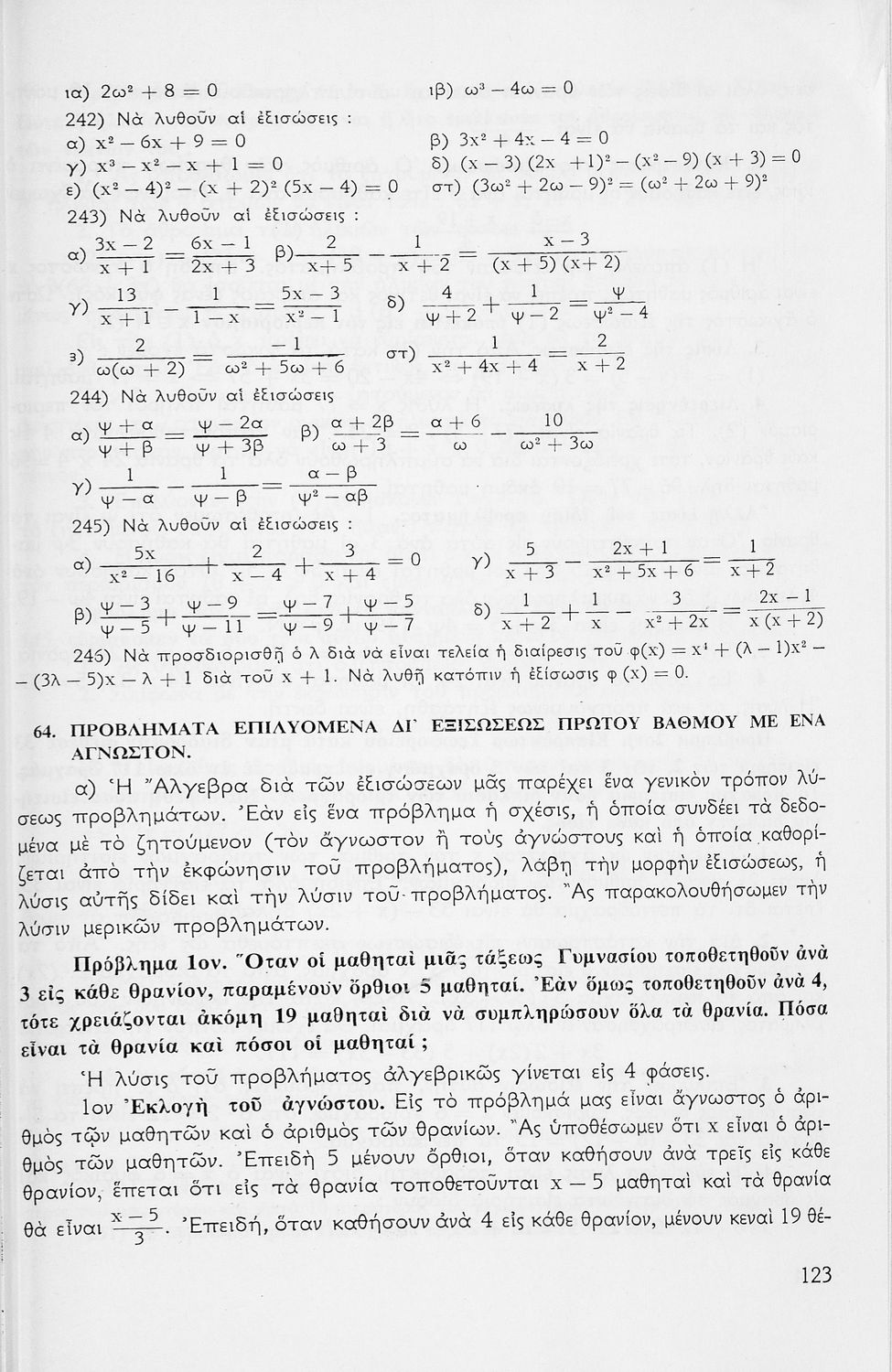 Σχολικό εγχειρίδιο μαθηματικών Γ΄ Γυμνασίου που περιλαμβάνει θεωρία, παραδείγματα και ασκήσεις. Φέρει το σύμβολο της δικτατορίας.