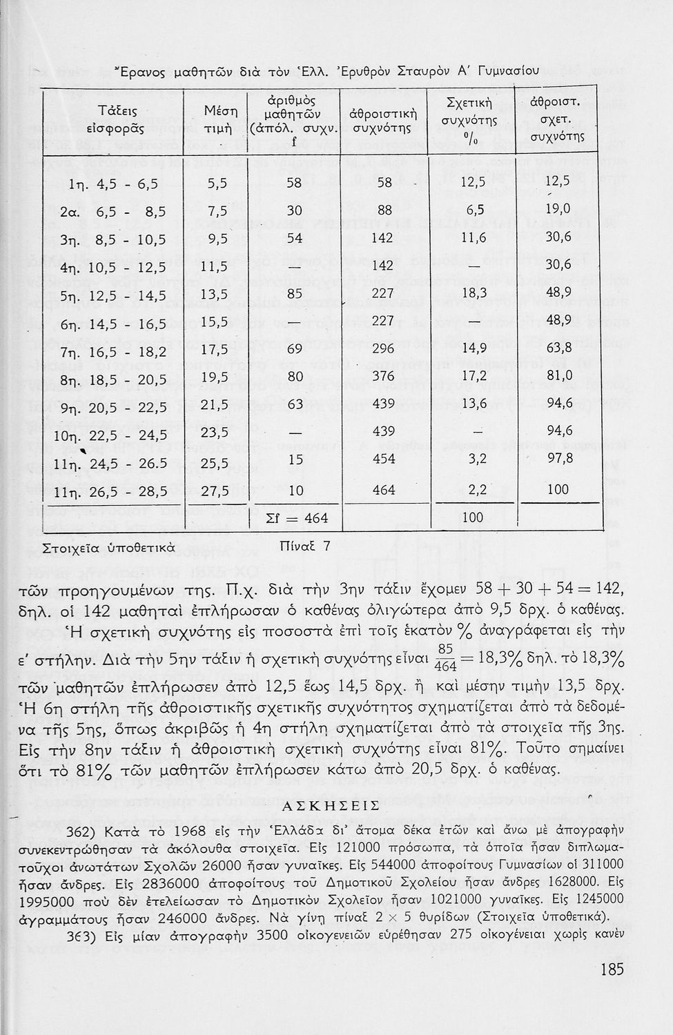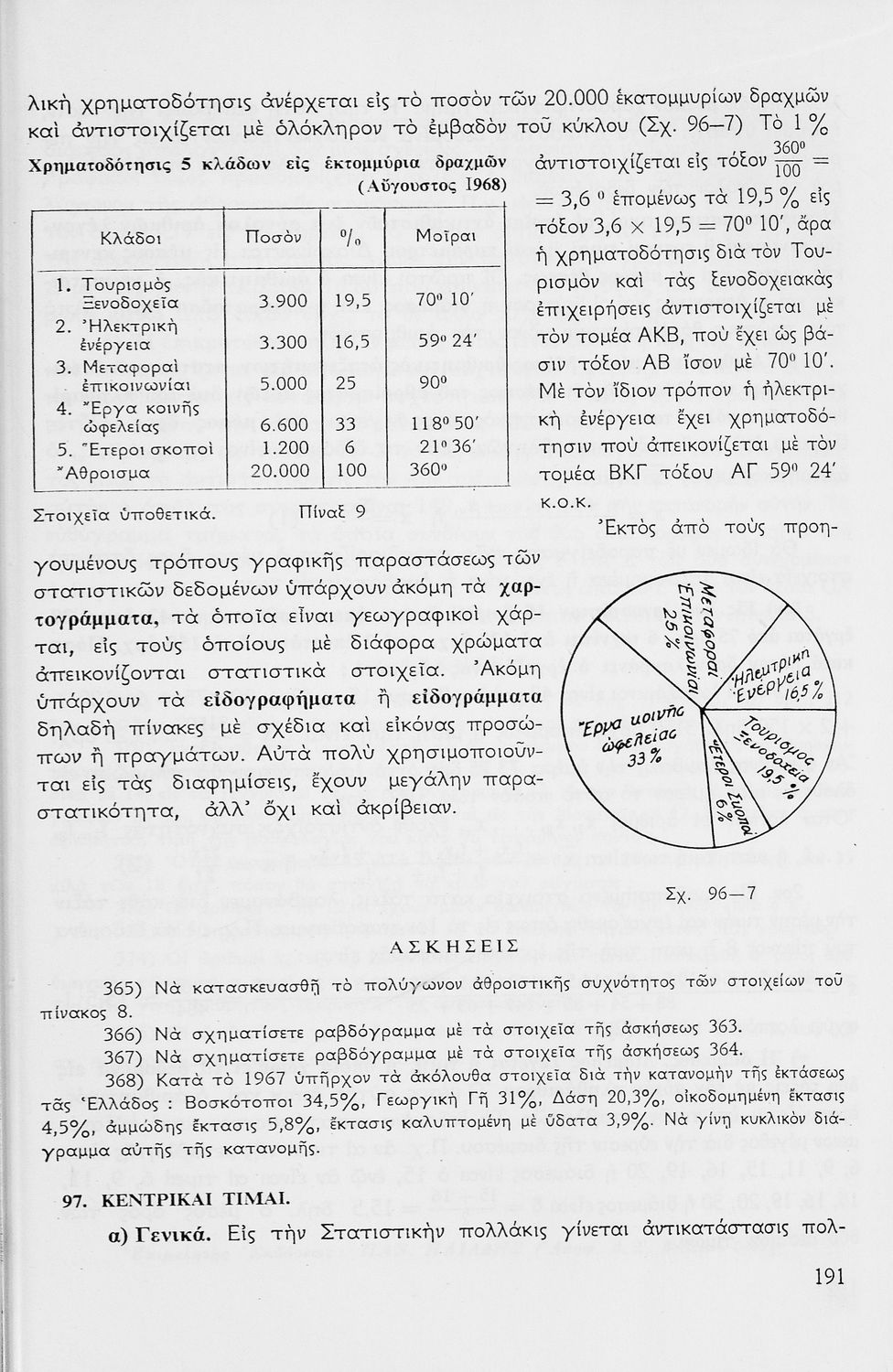 Σχολικό εγχειρίδιο Μαθηματικών για την Ε΄ Γυμνασίου, χωρισμένο σε προβλήματα, εφαρμογές και ασκήσεις, που εστιάζει στην Τριγωνομετρία. Φέρει το σύμβολο της δικτατορίας.