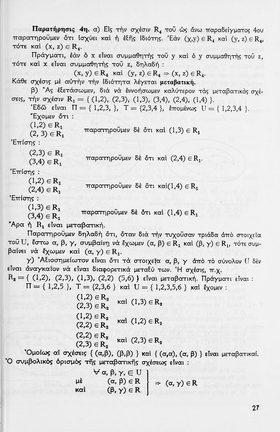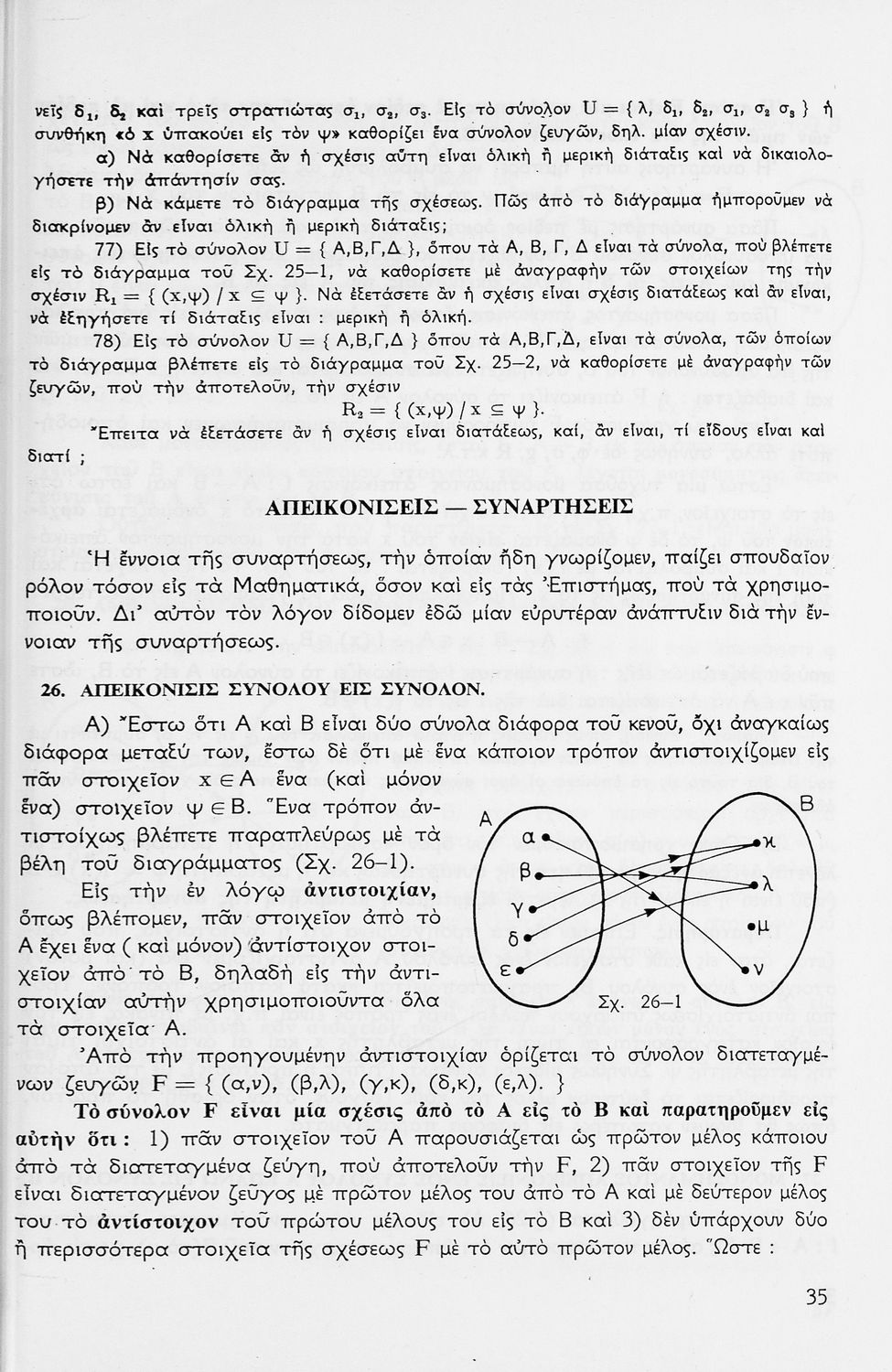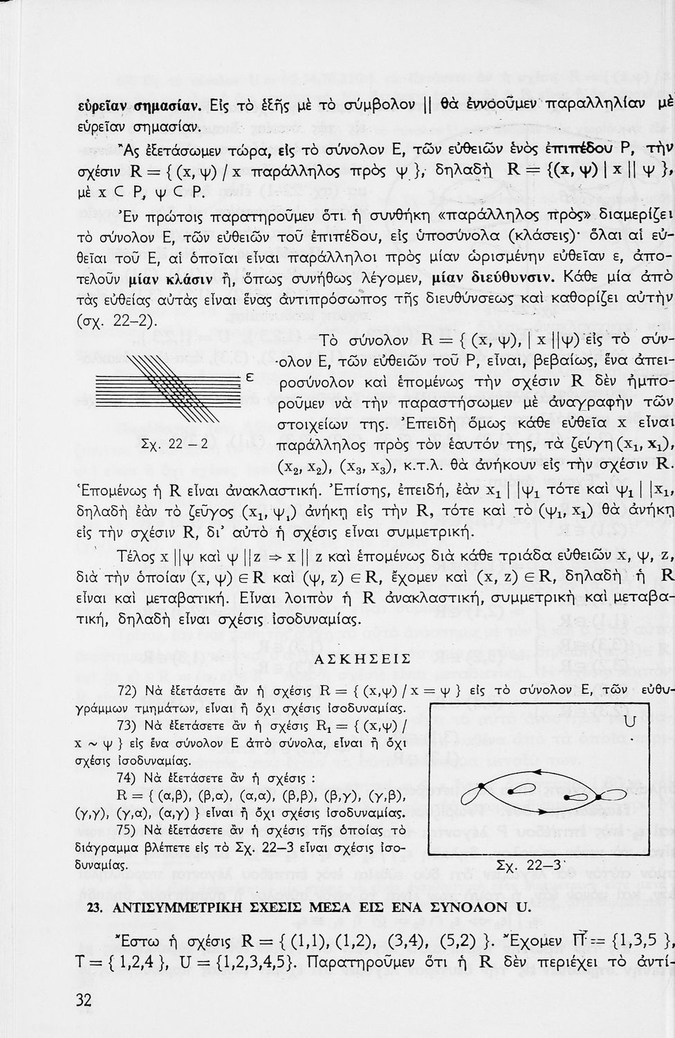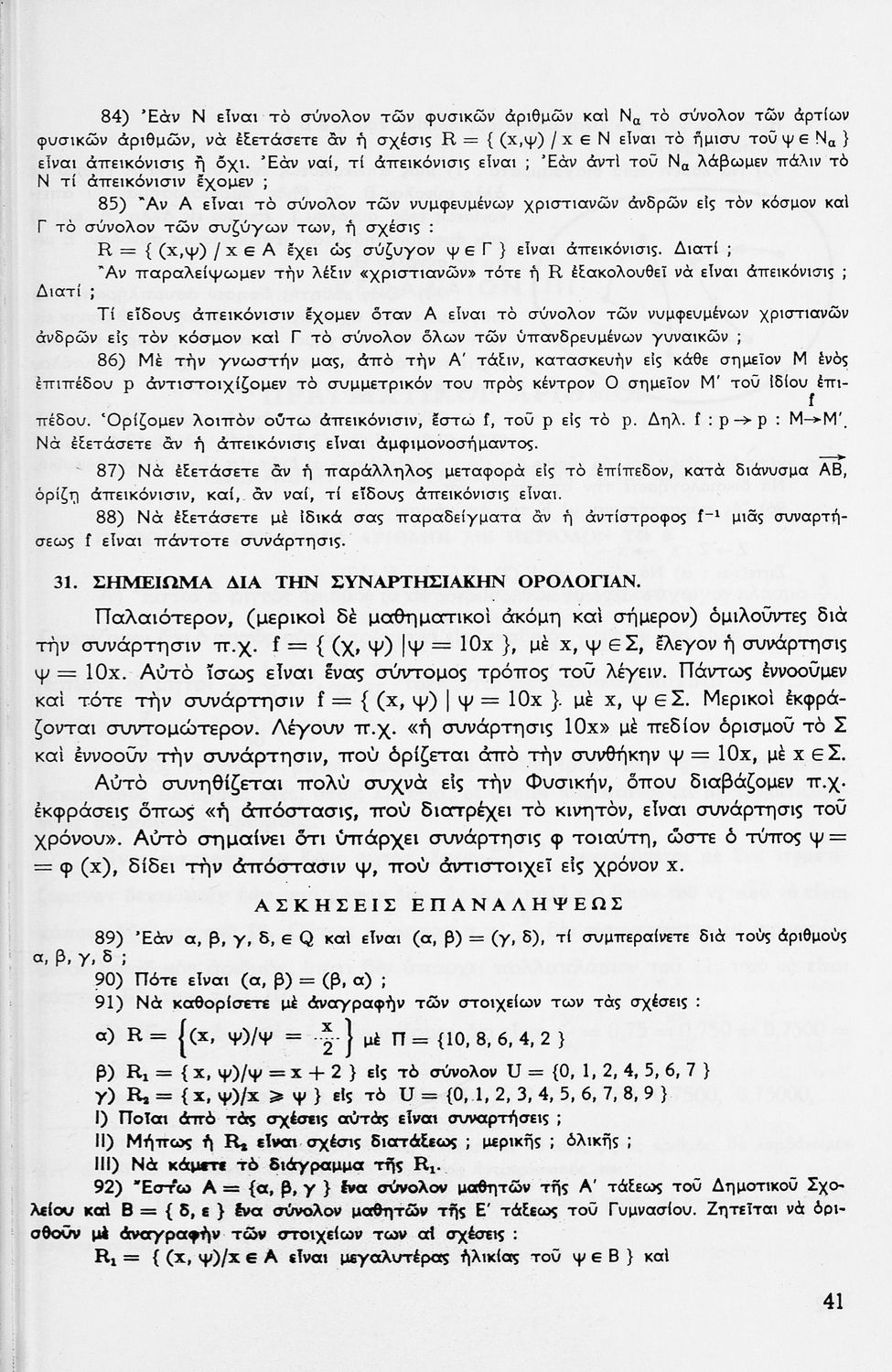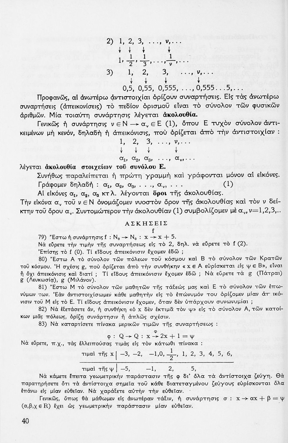 Σχολικό εγχειρίδιο μαθηματικών Γ΄ Γυμνασίου που περιλαμβάνει θεωρία, παραδείγματα και ασκήσεις. Φέρει το σύμβολο της δικτατορίας.
