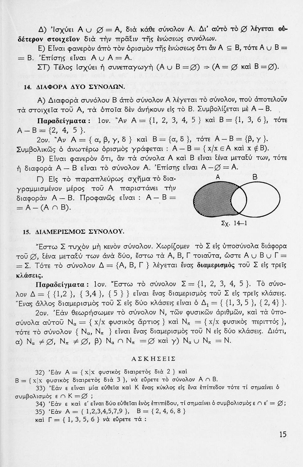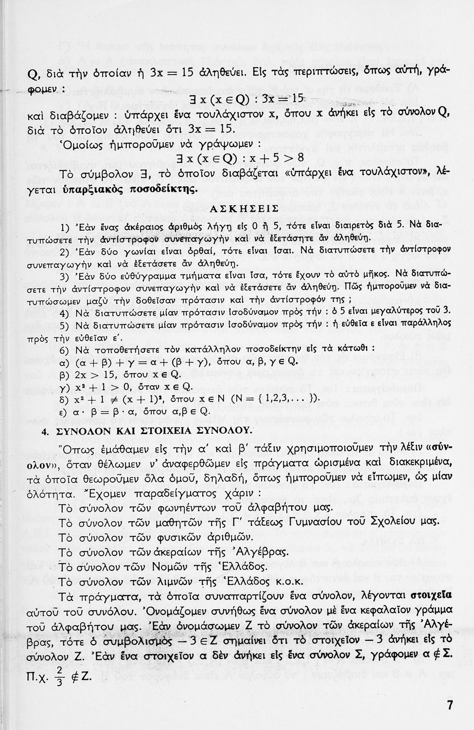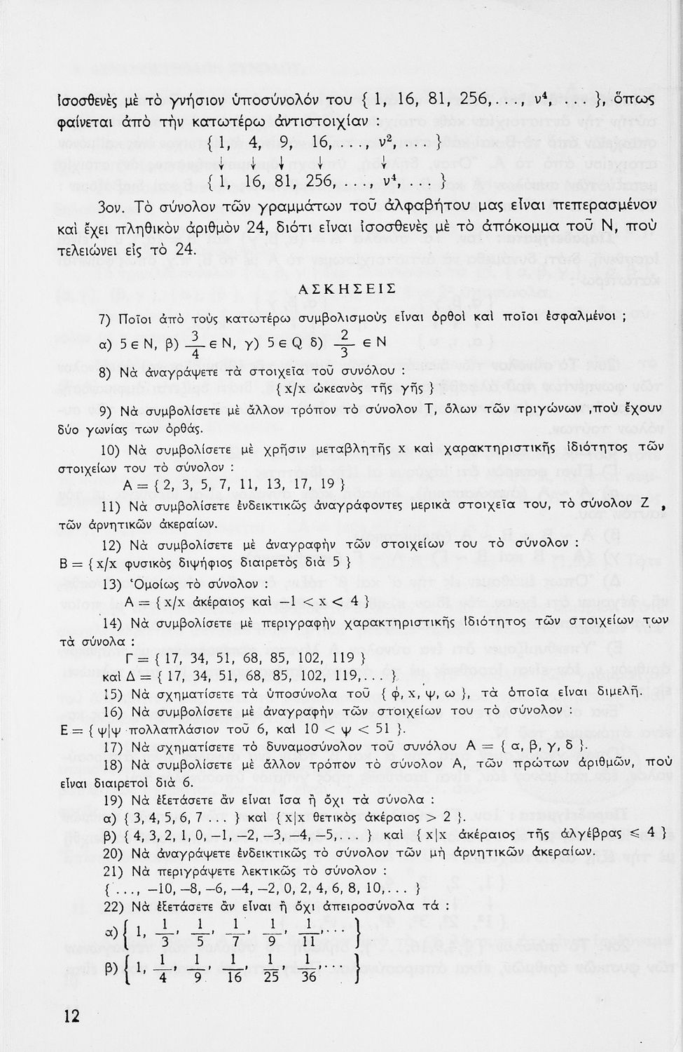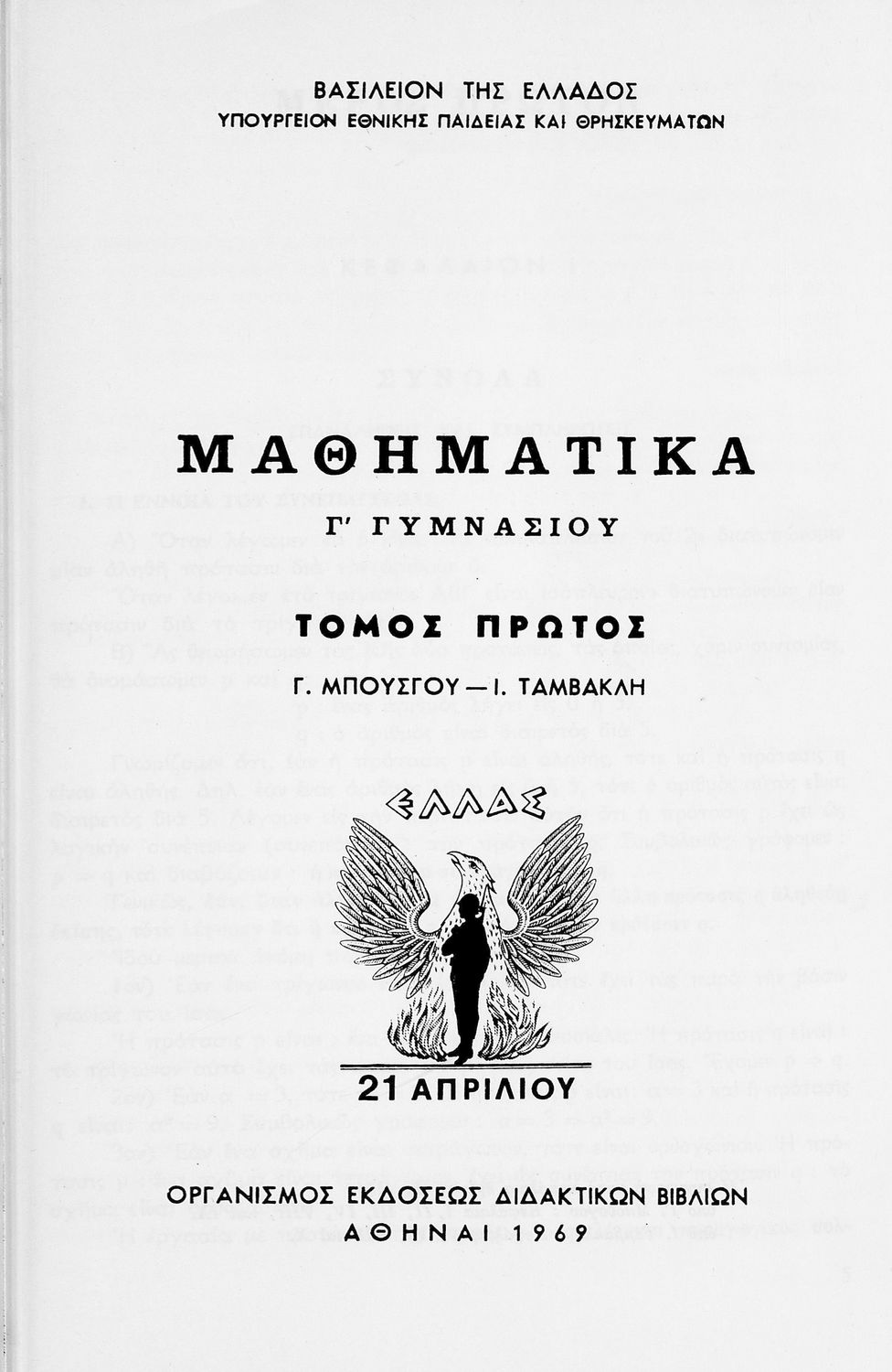 Σχολικό εγχειρίδιο Μαθηματικών Γ΄ Γυμνασίου που περιλαμβάνει θεωρία, παραδείγματα και ασκήσεις. Φέρει το σύμβολο της δικτατορίας.