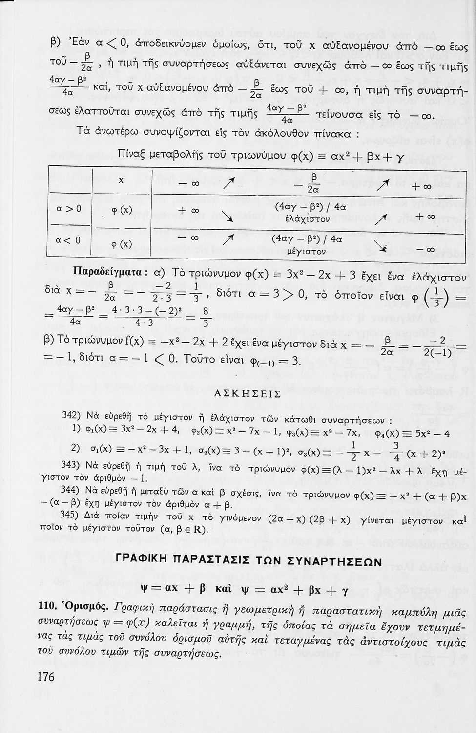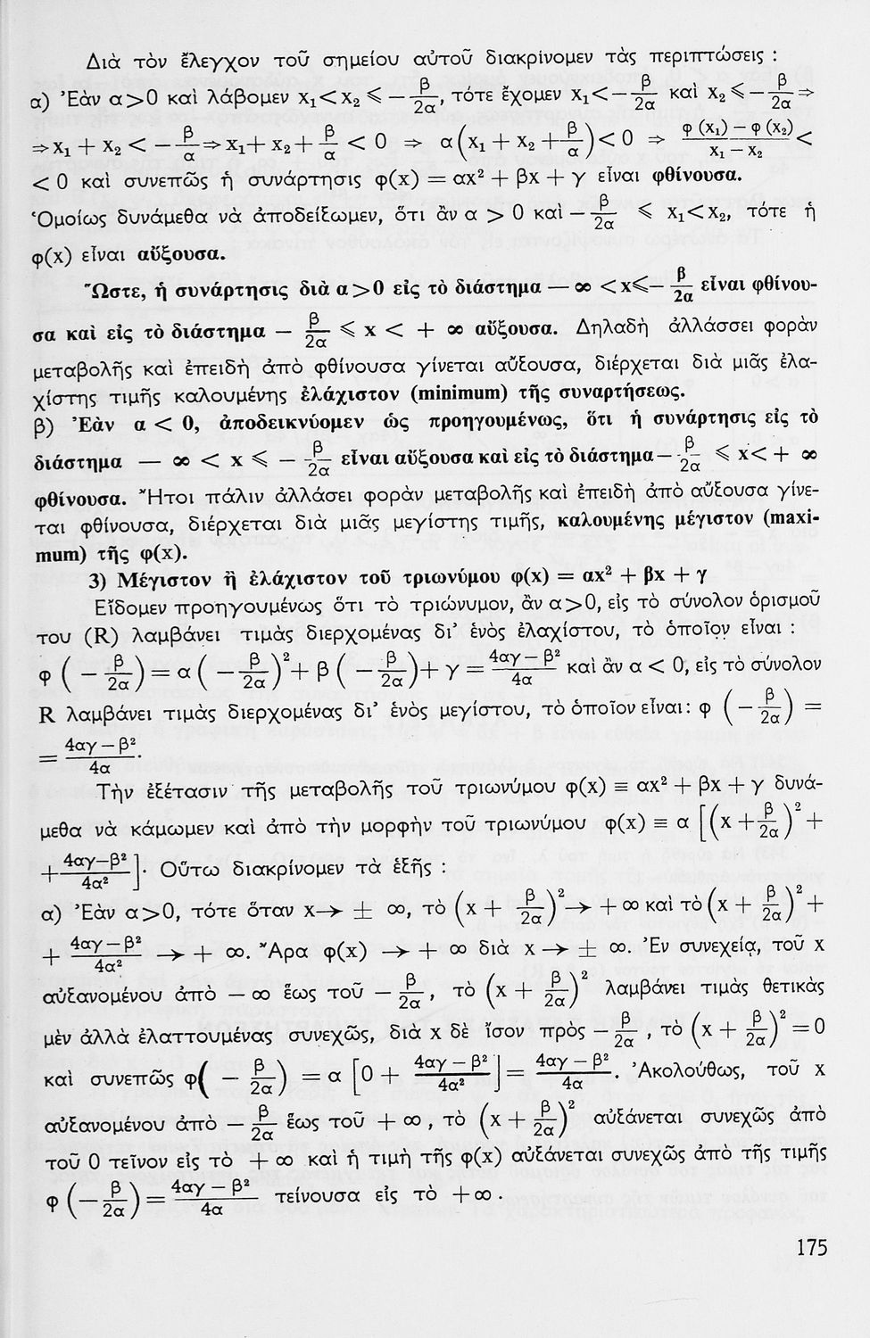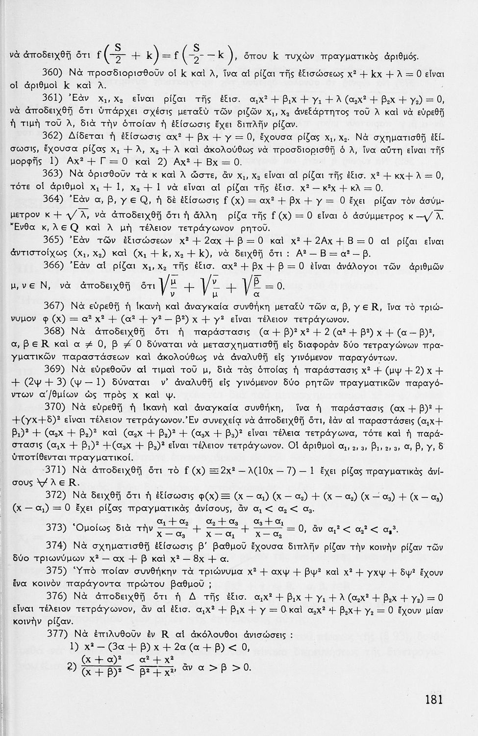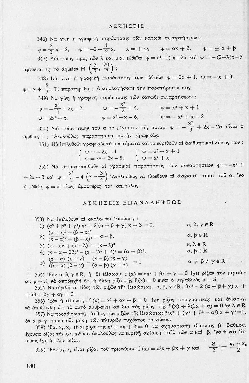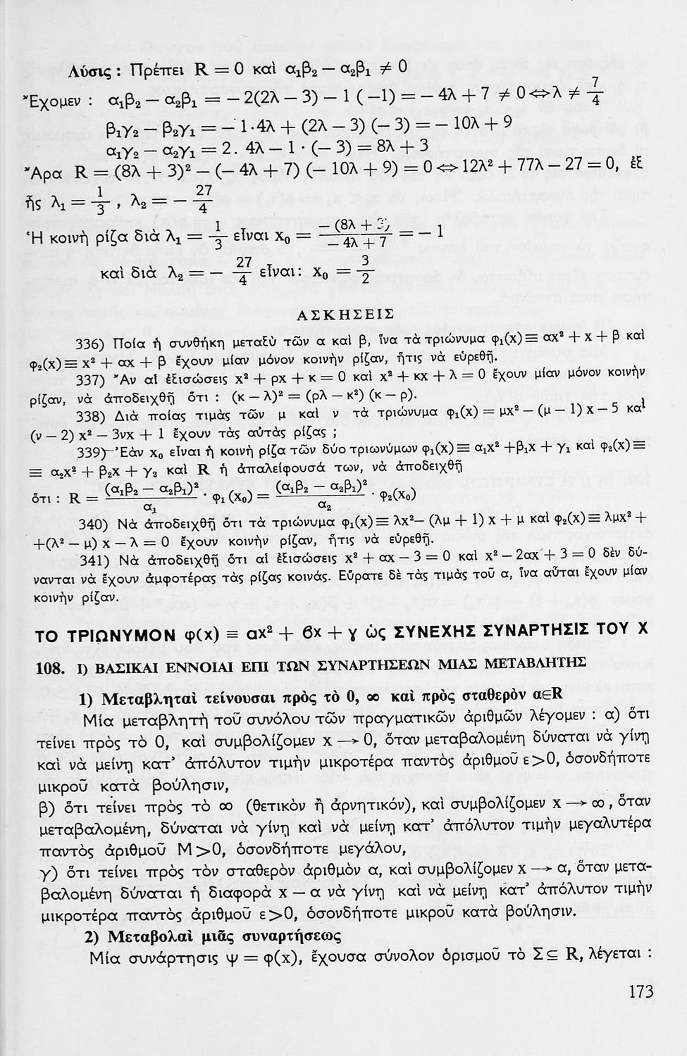 Σχολικό εγχειρίδιο Μαθηματικών Γυμνασίου που είναι χωρισμένο σε θεωρήματα, παραδείγματα και ασκήσεις και περιλαμβάνει στοιχεία Ανώτερης Άλγεβρας και Μαθηματικής Ανάλυσης.