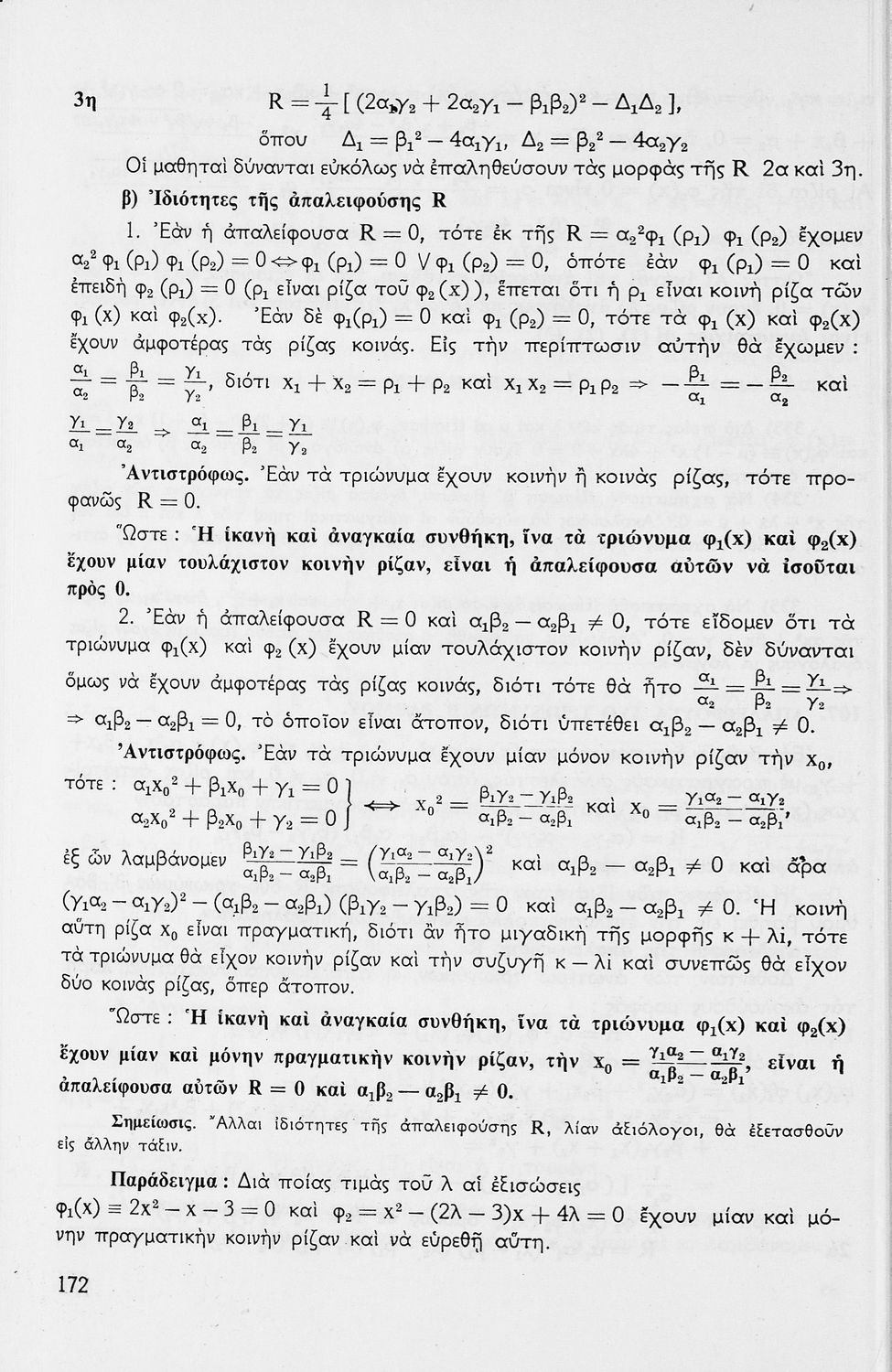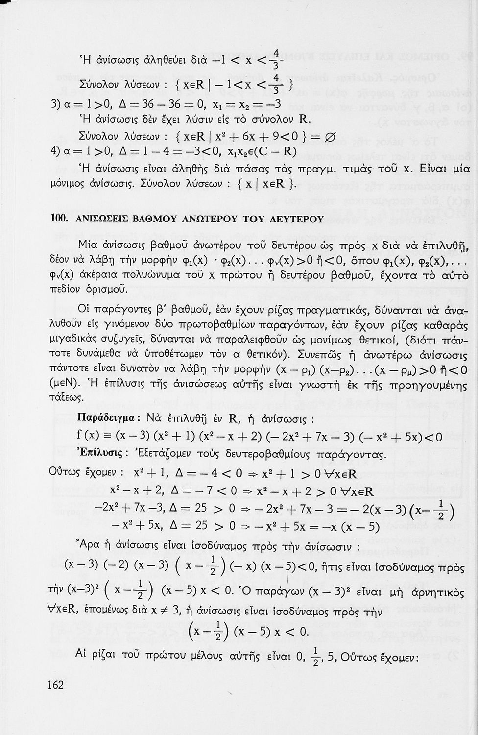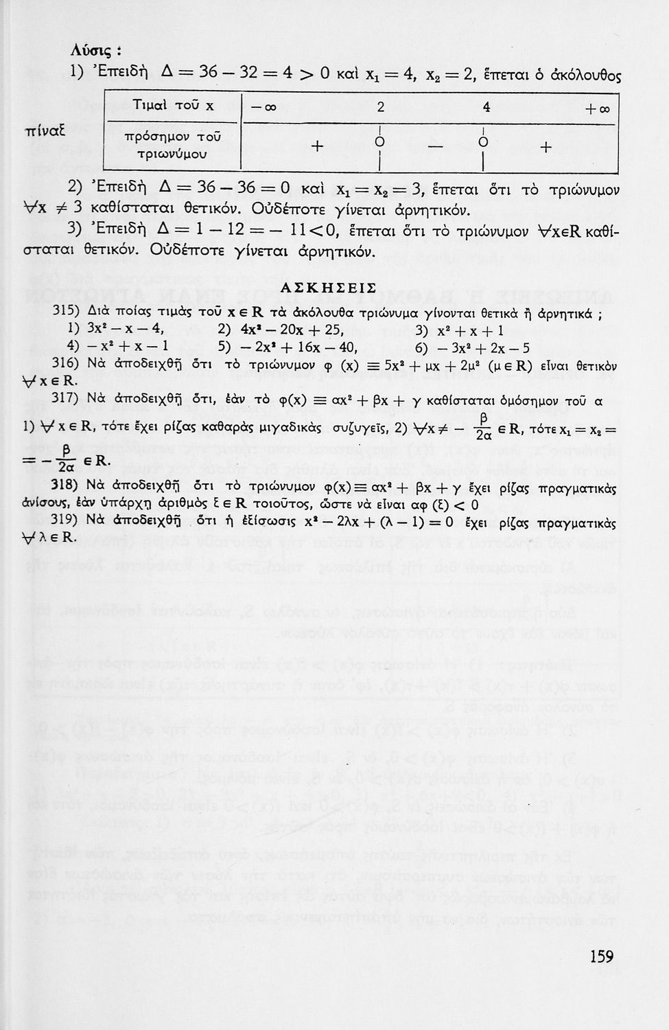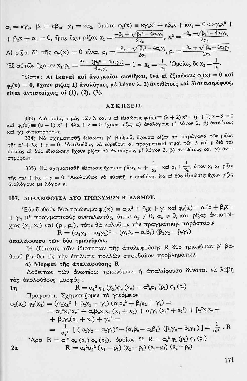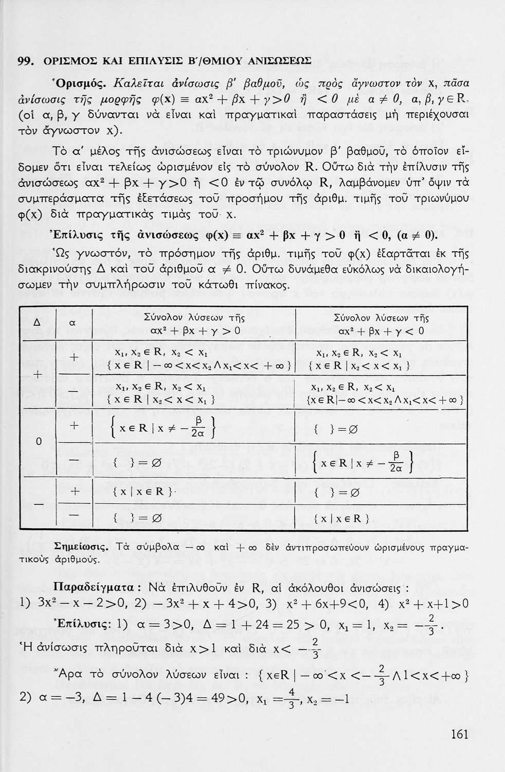 Σχολικό εγχειρίδιο Μαθηματικών Γυμνασίου που είναι χωρισμένο σε θεωρήματα, παραδείγματα και ασκήσεις και περιλαμβάνει στοιχεία Ανώτερης Άλγεβρας και Μαθηματικής Ανάλυσης.