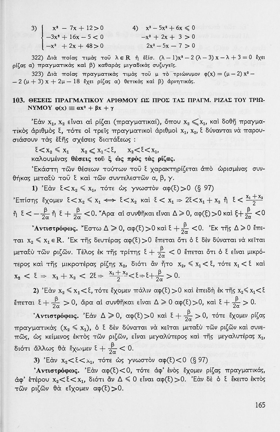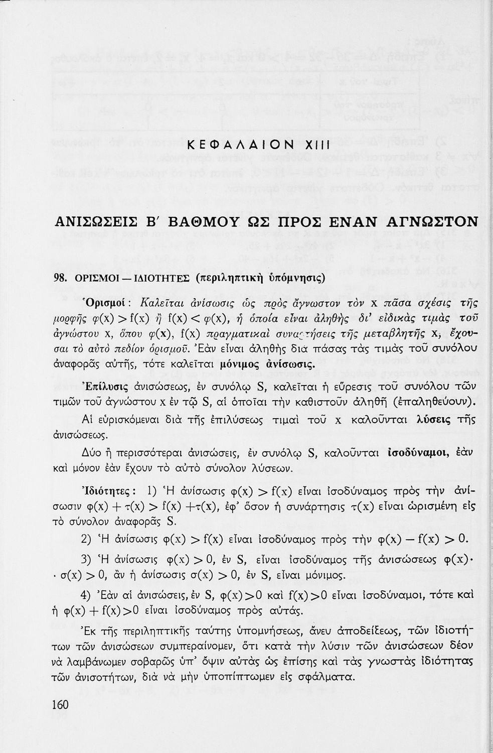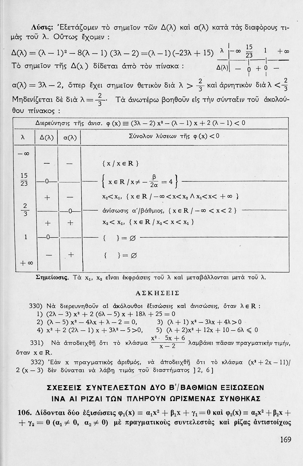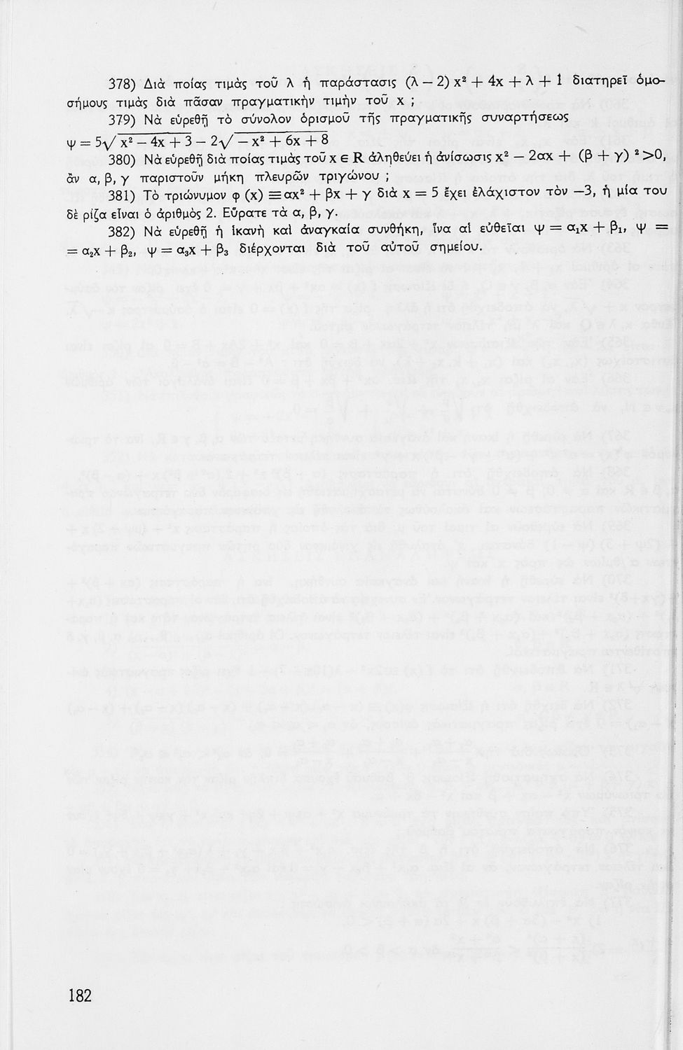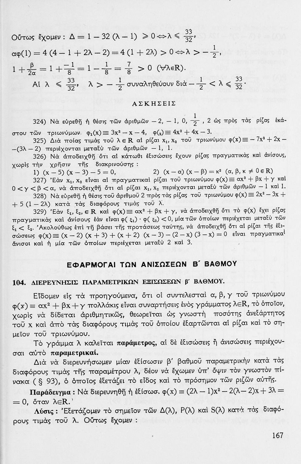 Σχολικό εγχειρίδιο Μαθηματικών Γυμνασίου που είναι χωρισμένο σε θεωρήματα, παραδείγματα και ασκήσεις και περιλαμβάνει στοιχεία Ανώτερης Άλγεβρας και Μαθηματικής Ανάλυσης.