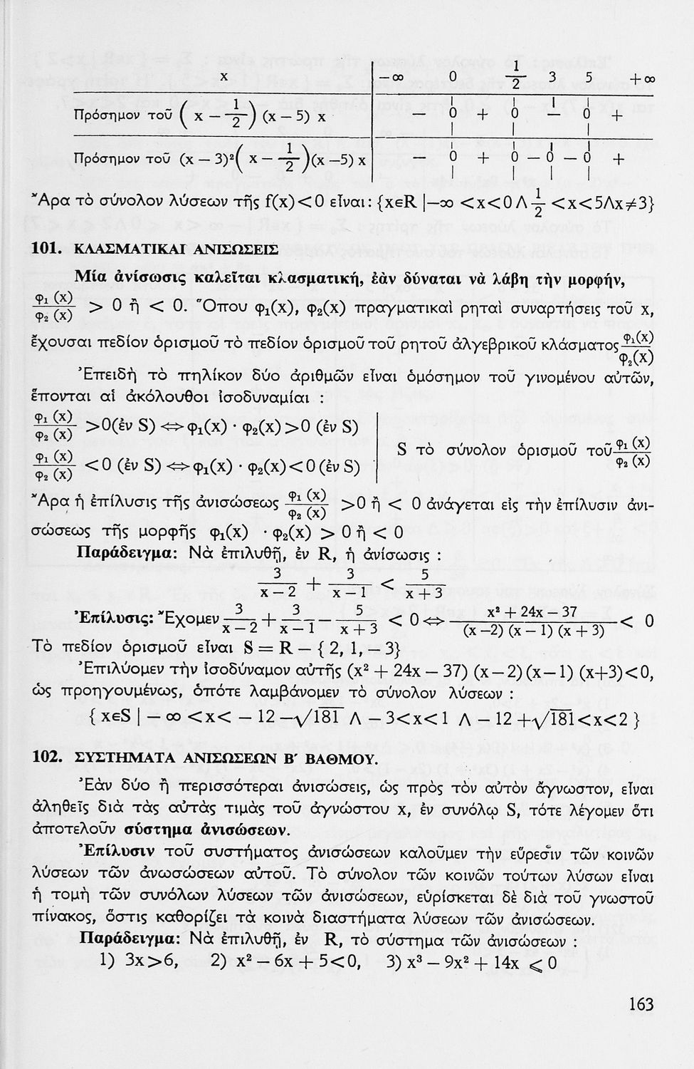 Σχολικό εγχειρίδιο Μαθηματικών ΣΤ΄ Γυμνασίου που είναι χωρισμένο σε θεωρήματα, παραδείγματα και ασκήσεις και περιλαμβάνει στοιχεία Ανώτερης Άλγεβρας και Μαθηματικής Ανάλυσης.
