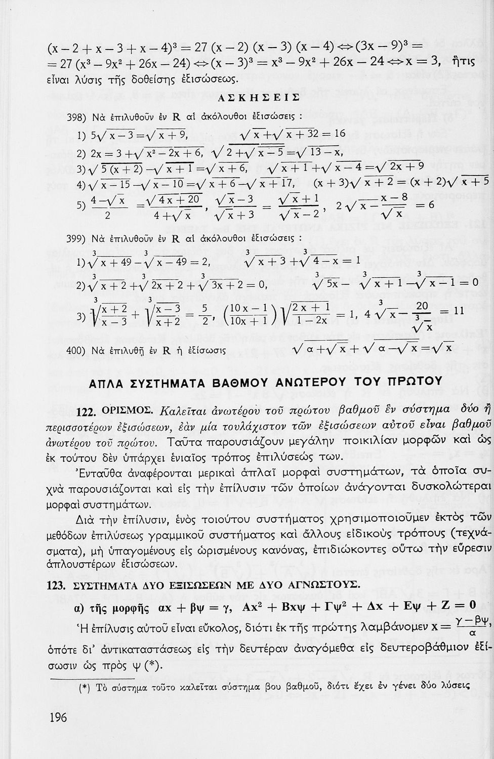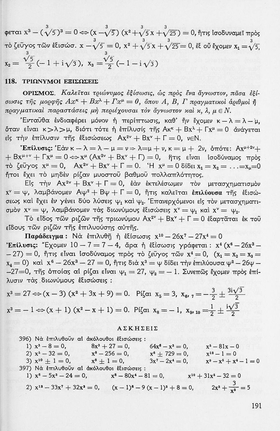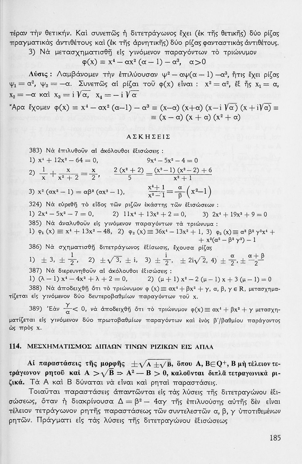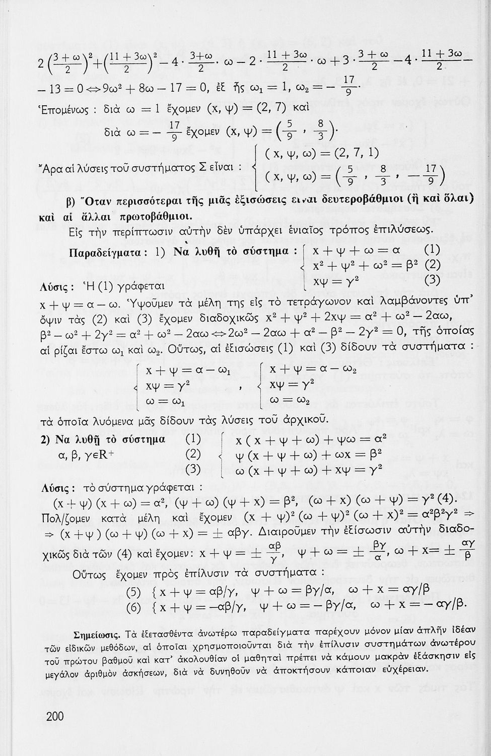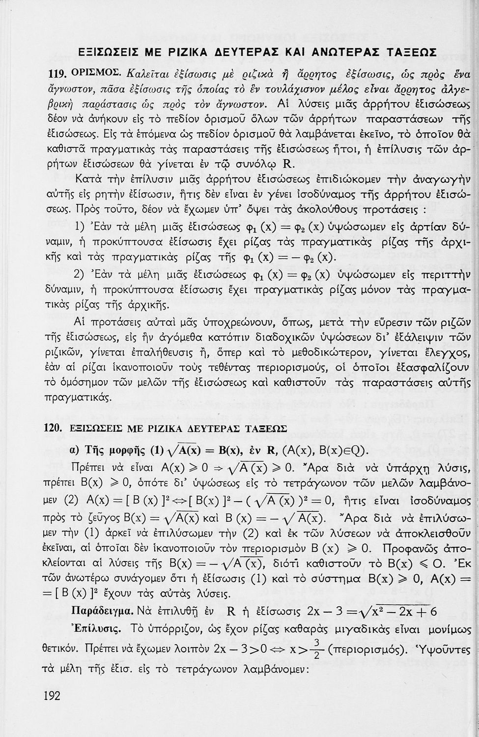 Σχολικό εγχειρίδιο Μαθηματικών Γυμνασίου που είναι χωρισμένο σε θεωρήματα, παραδείγματα και ασκήσεις και περιλαμβάνει στοιχεία Ανώτερης Άλγεβρας και Μαθηματικής Ανάλυσης.