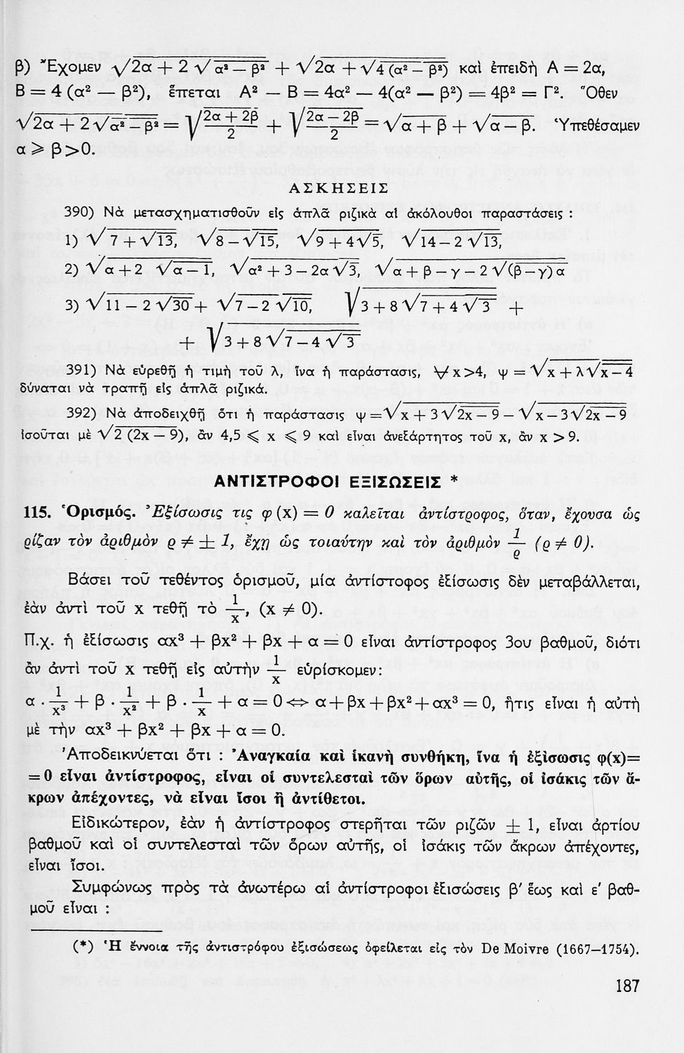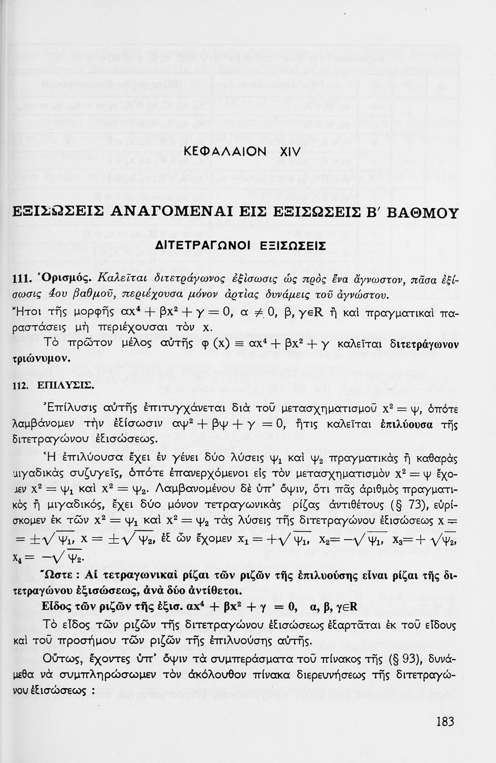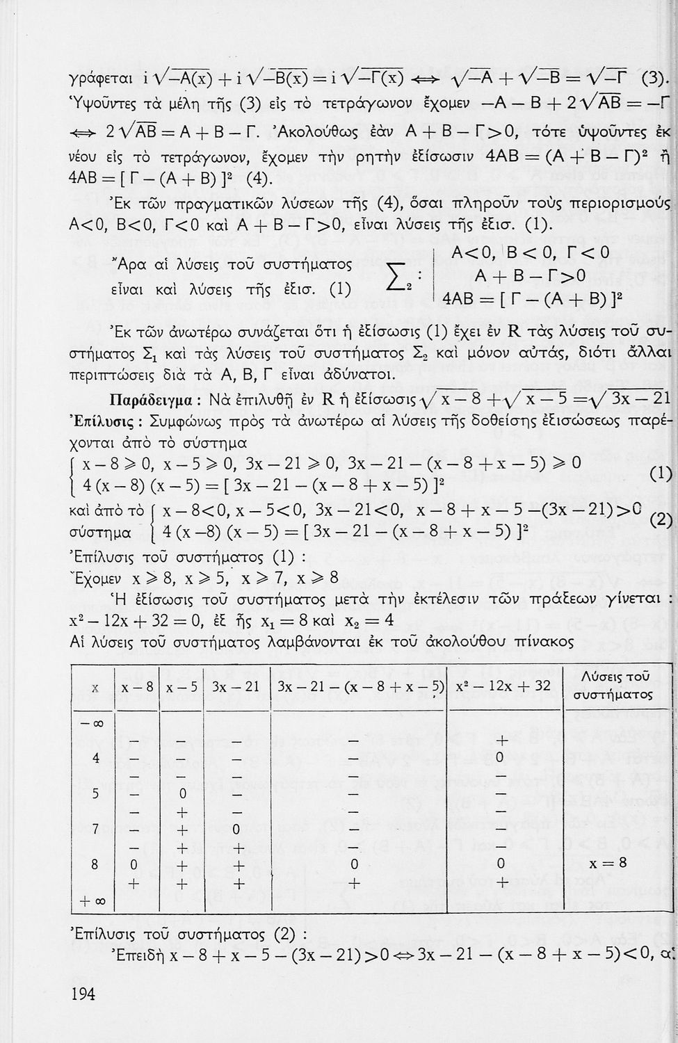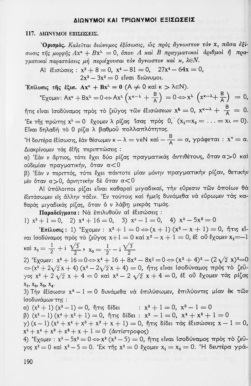 Σχολικό εγχειρίδιο Μαθηματικών Γυμνασίου που είναι χωρισμένο σε θεωρήματα, παραδείγματα και ασκήσεις και περιλαμβάνει στοιχεία Ανώτερης Άλγεβρας και Μαθηματικής Ανάλυσης.