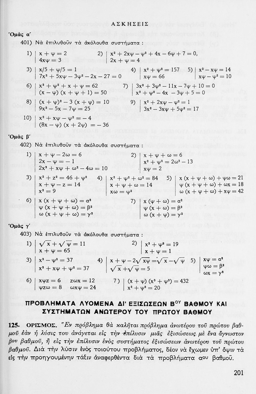 Σχολικό εγχειρίδιο Μαθηματικών ΣΤ΄ Γυμνασίου που είναι χωρισμένο σε θεωρήματα, παραδείγματα και ασκήσεις και περιλαμβάνει στοιχεία Ανώτερης Άλγεβρας και Μαθηματικής Ανάλυσης.