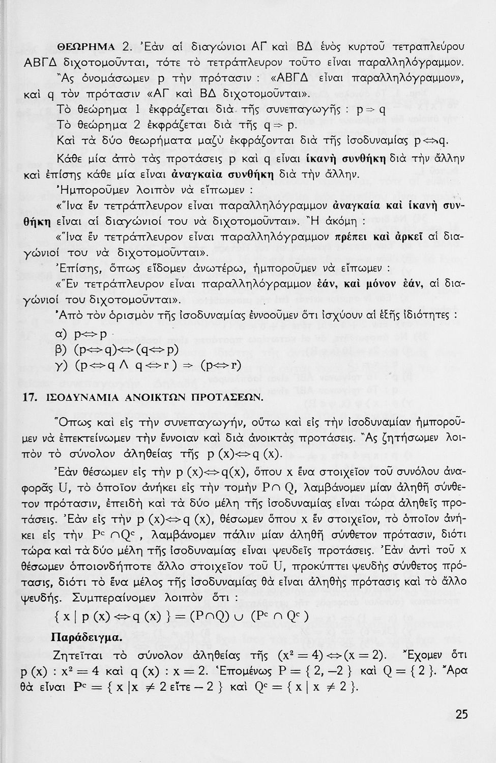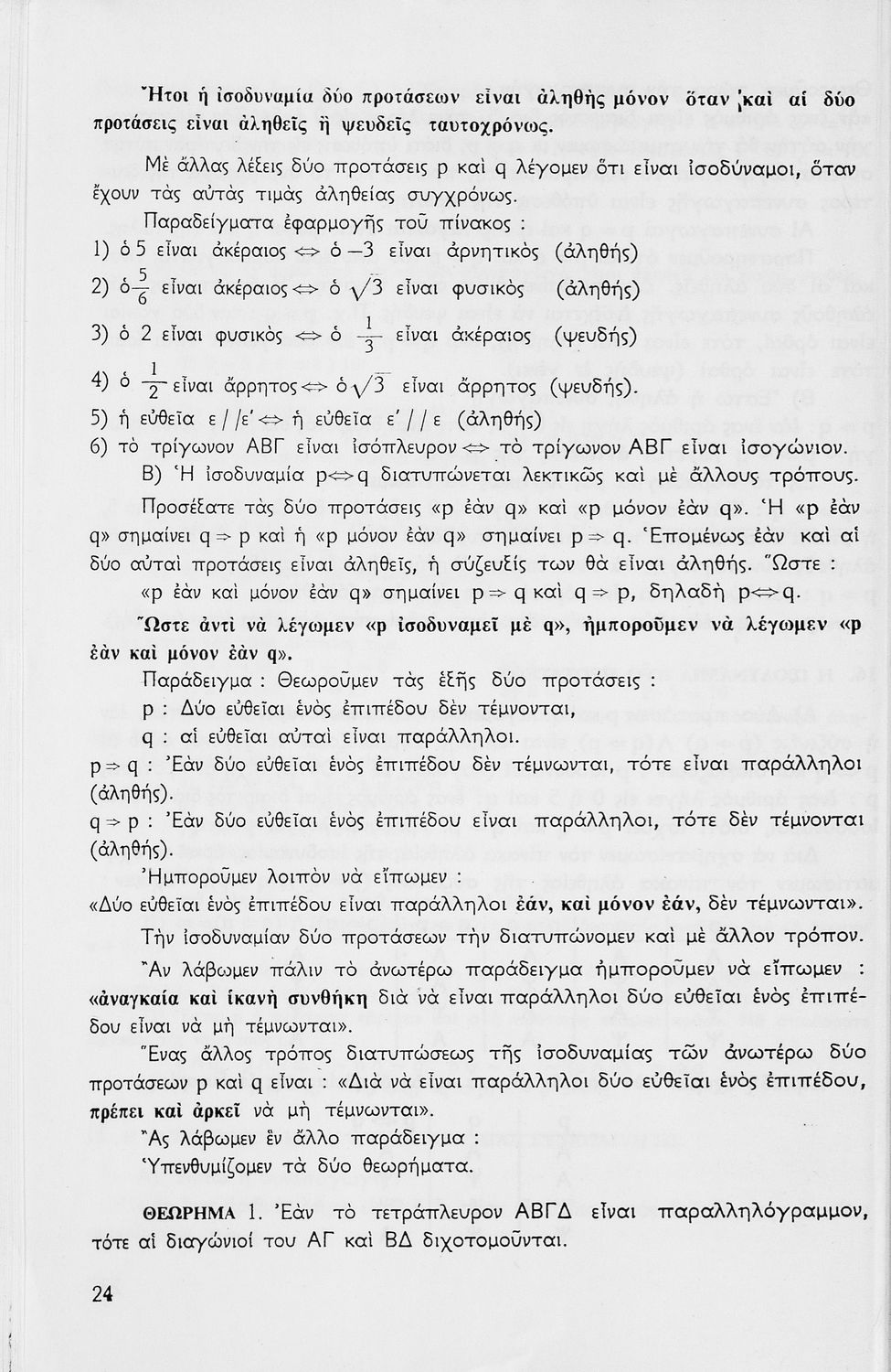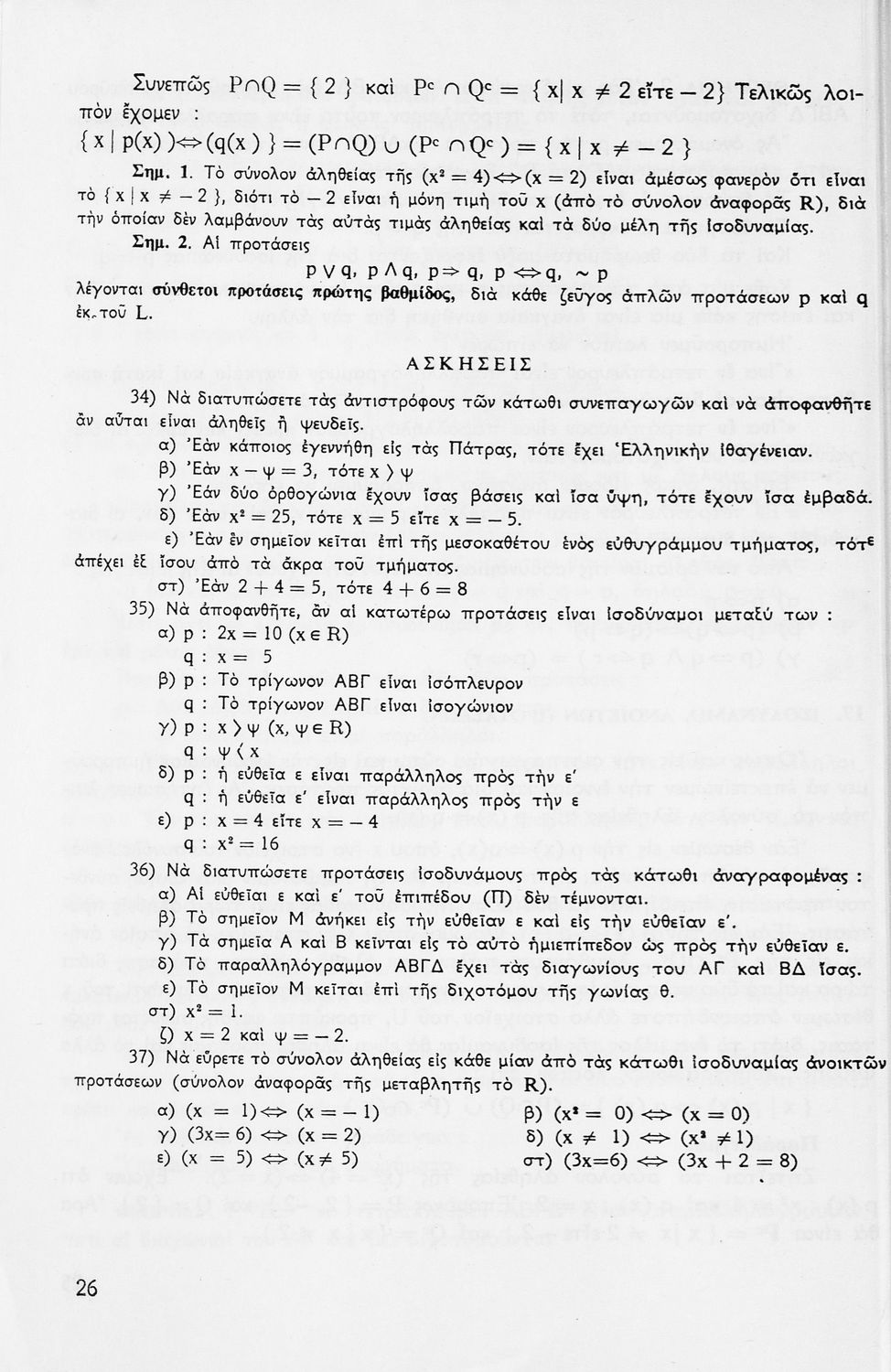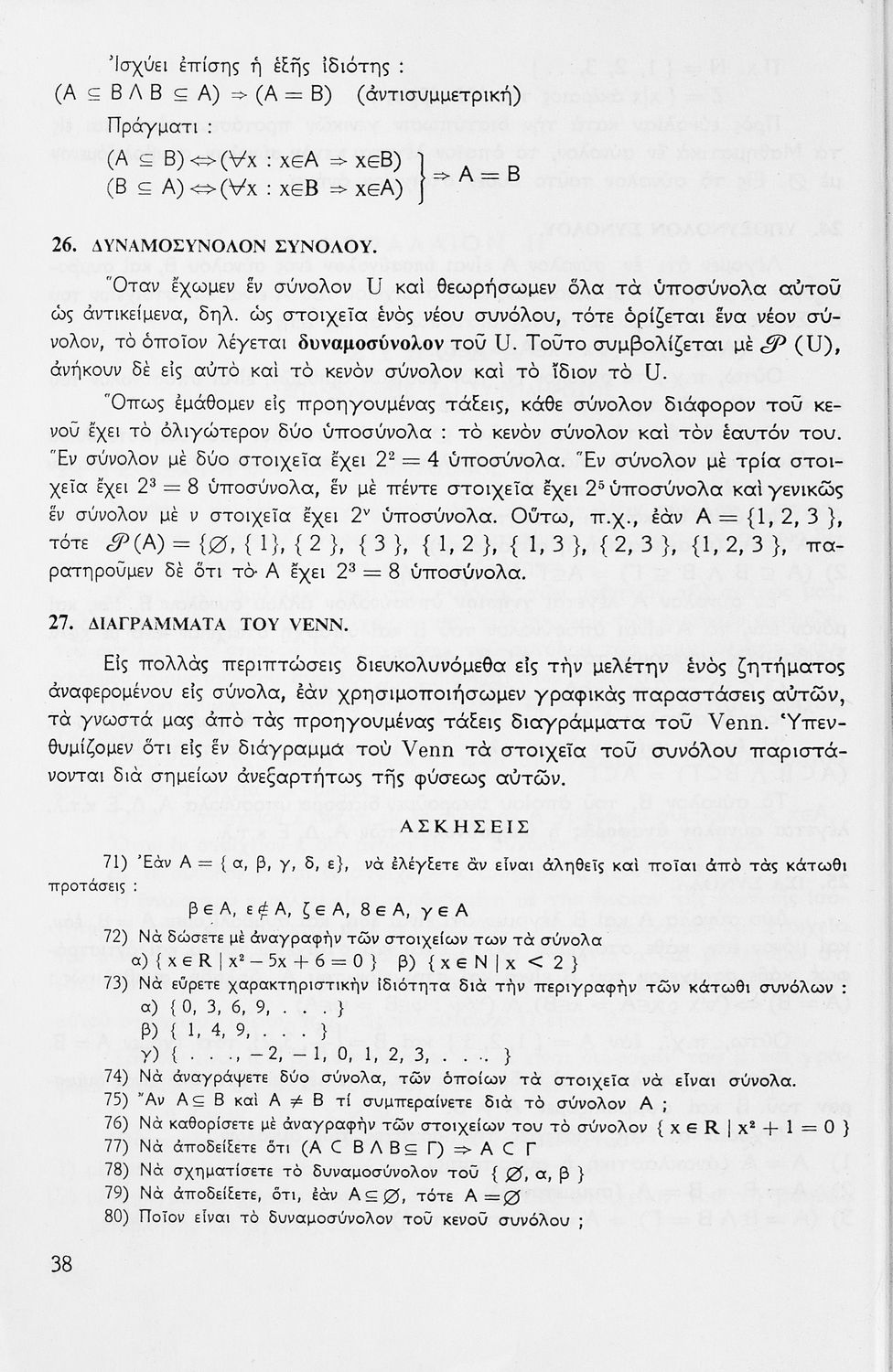 Σχολικό εγχειρίδιο Μαθηματικών ΣΤ΄ Γυμνασίου που είναι χωρισμένο σε θεωρήματα, παραδείγματα και ασκήσεις και περιλαμβάνει στοιχεία Ανώτερης Άλγεβρας και Μαθηματικής Ανάλυσης.