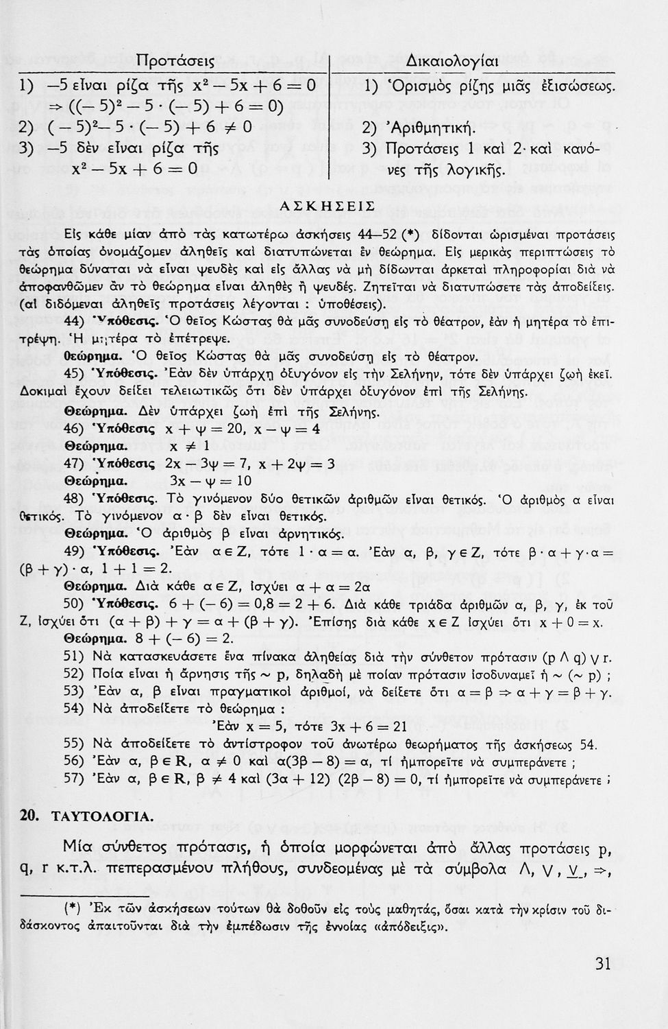 Σχολικό εγχειρίδιο Μαθηματικών Γυμνασίου που είναι χωρισμένο σε θεωρήματα, παραδείγματα και ασκήσεις και περιλαμβάνει στοιχεία Ανώτερης Άλγεβρας και Μαθηματικής Ανάλυσης.