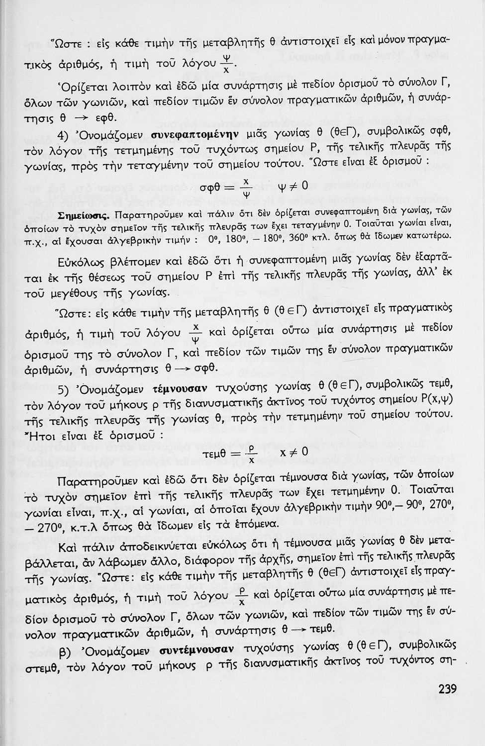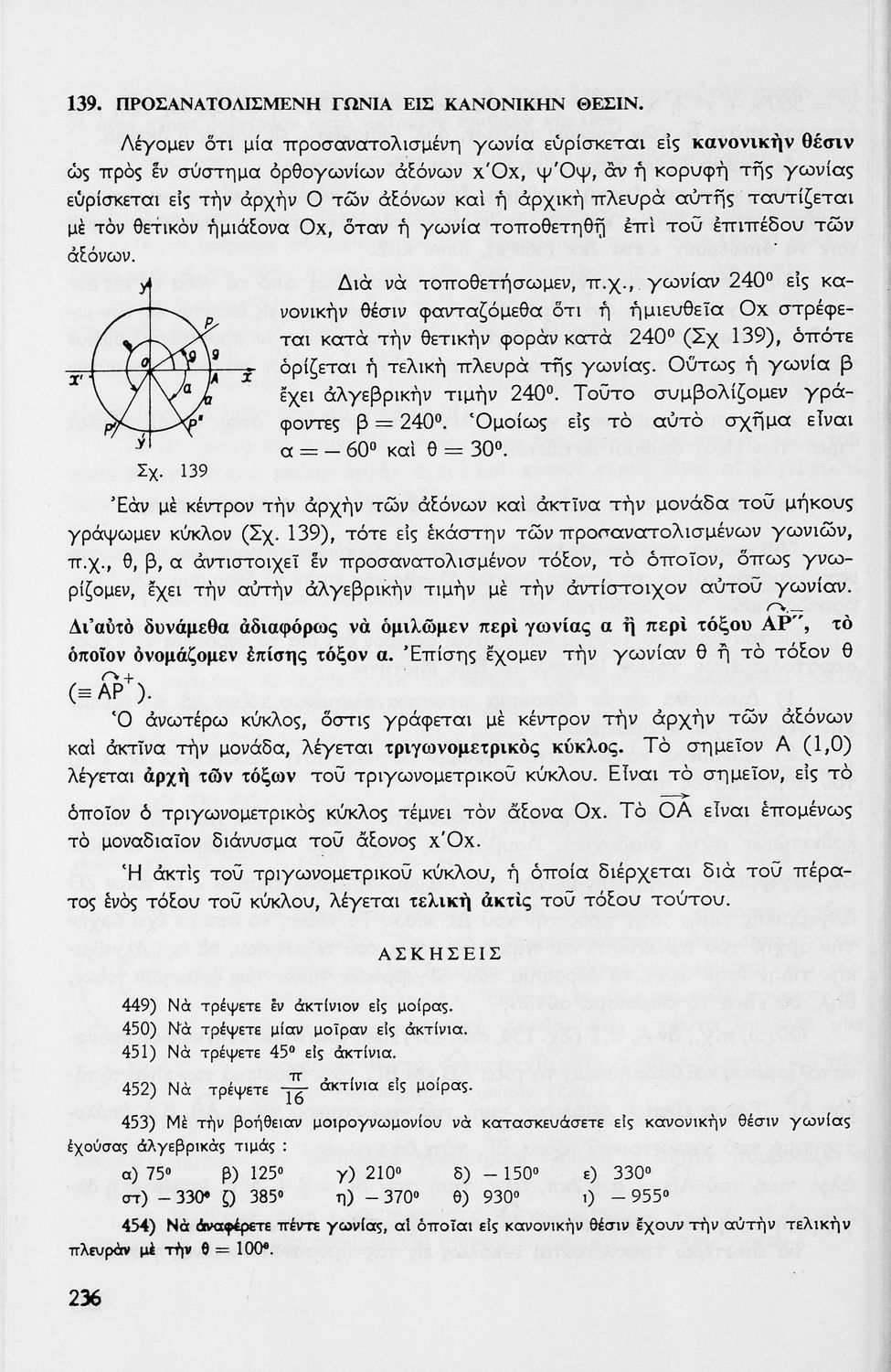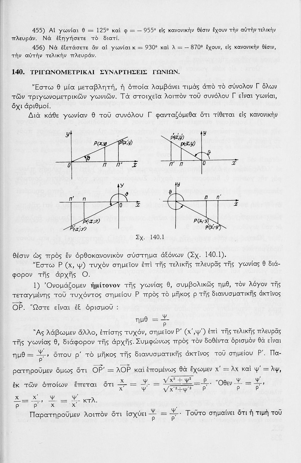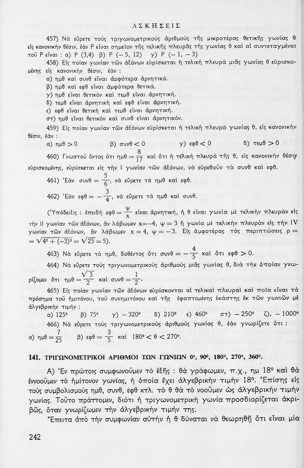 Σχολικό εγχειρίδιο Μαθηματικών για την Ε΄ Γυμνασίου, χωρισμένο σε προβλήματα, εφαρμογές και ασκήσεις, που εστιάζει στην Τριγωνομετρία. Φέρει το σύμβολο της δικτατορίας.