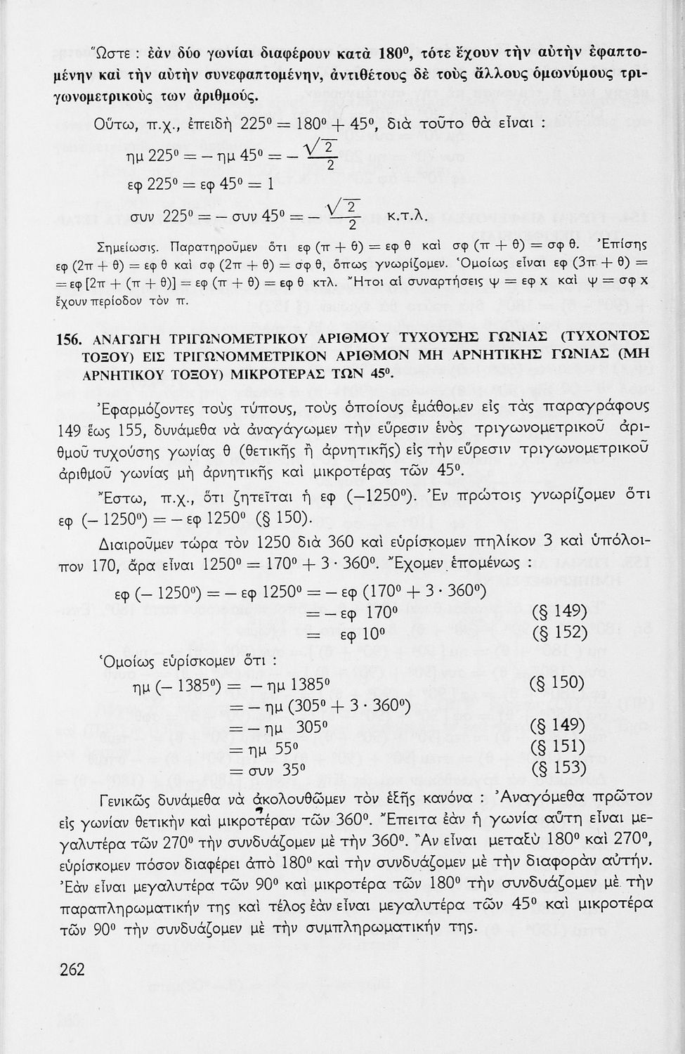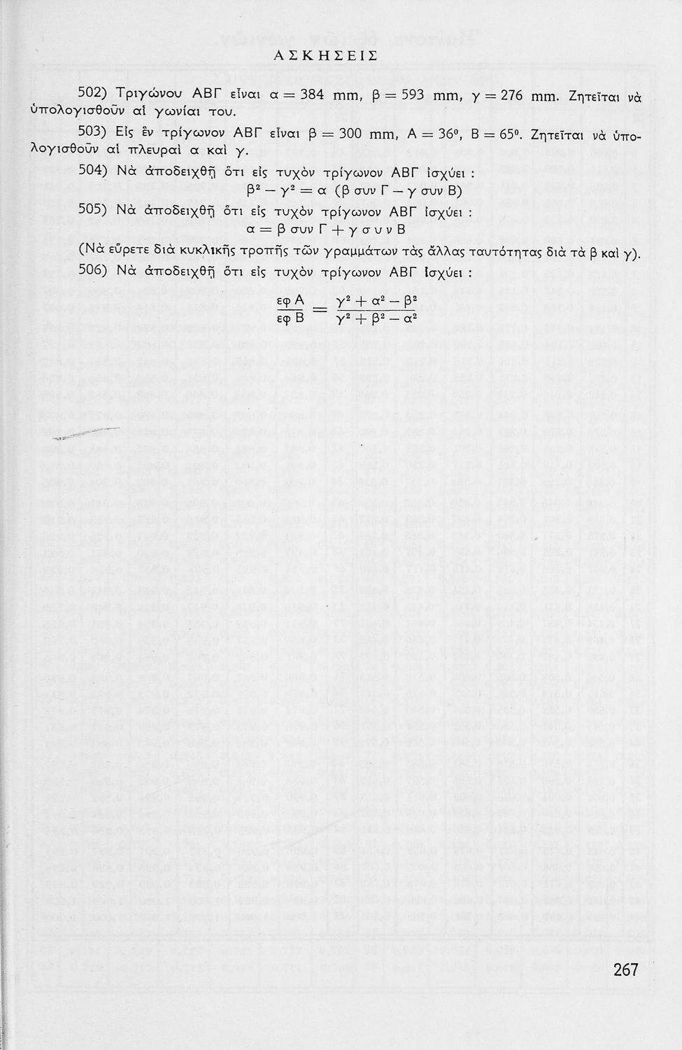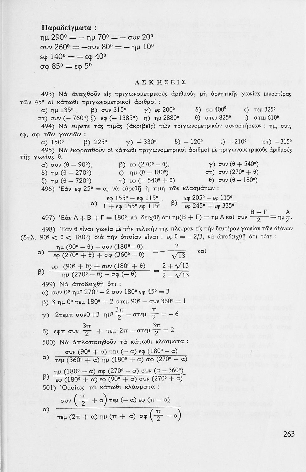 Σχολικό εγχειρίδιο Μαθηματικών για την Ε΄ Γυμνασίου, χωρισμένο σε προβλήματα, εφαρμογές και ασκήσεις, που εστιάζει στην Τριγωνομετρία. Φέρει το σύμβολο της δικτατορίας.