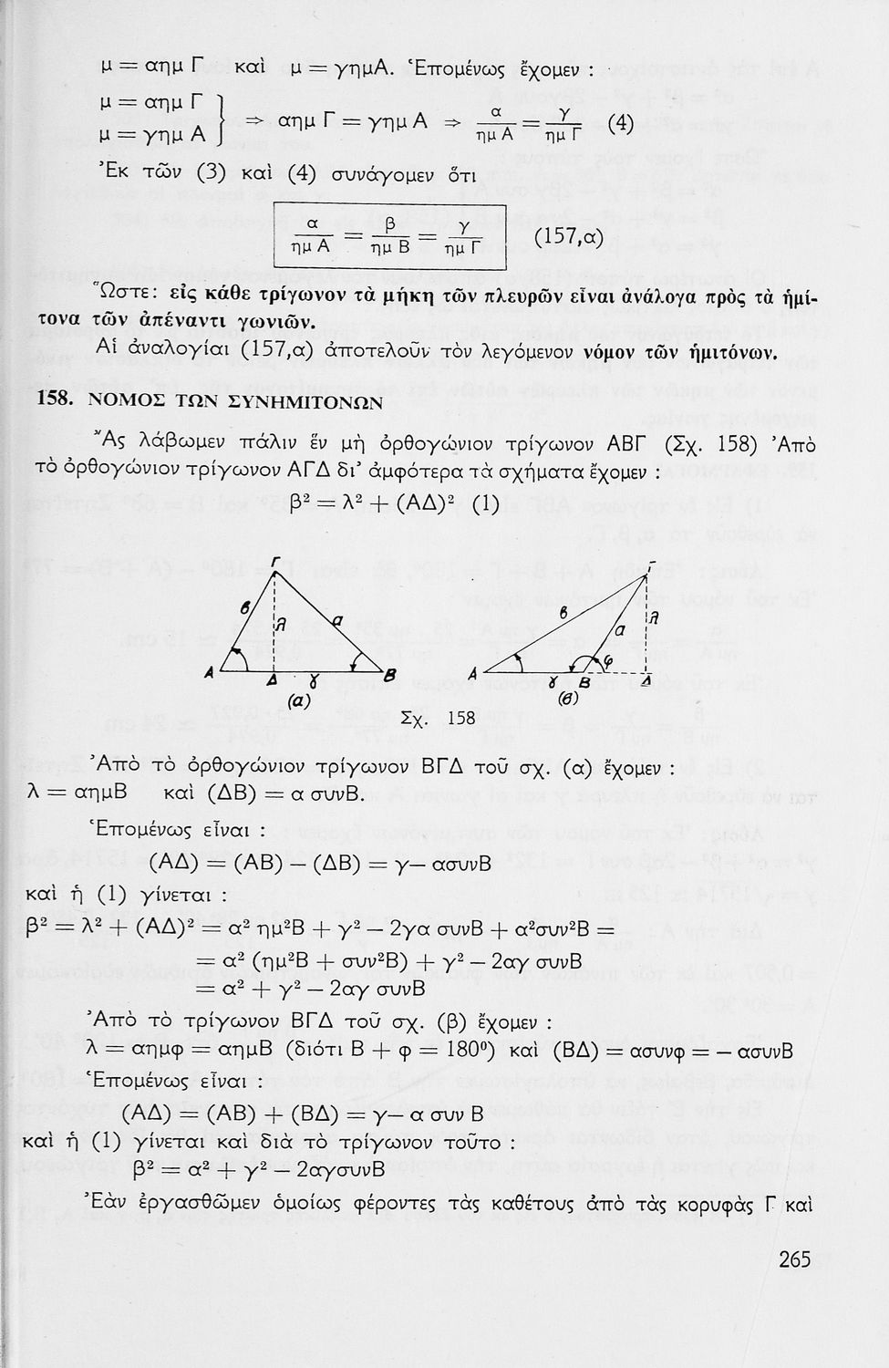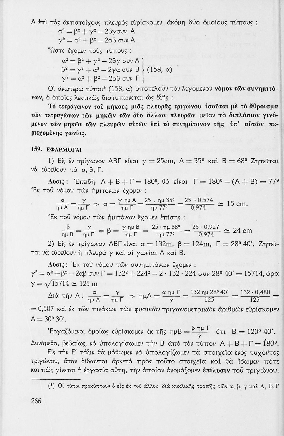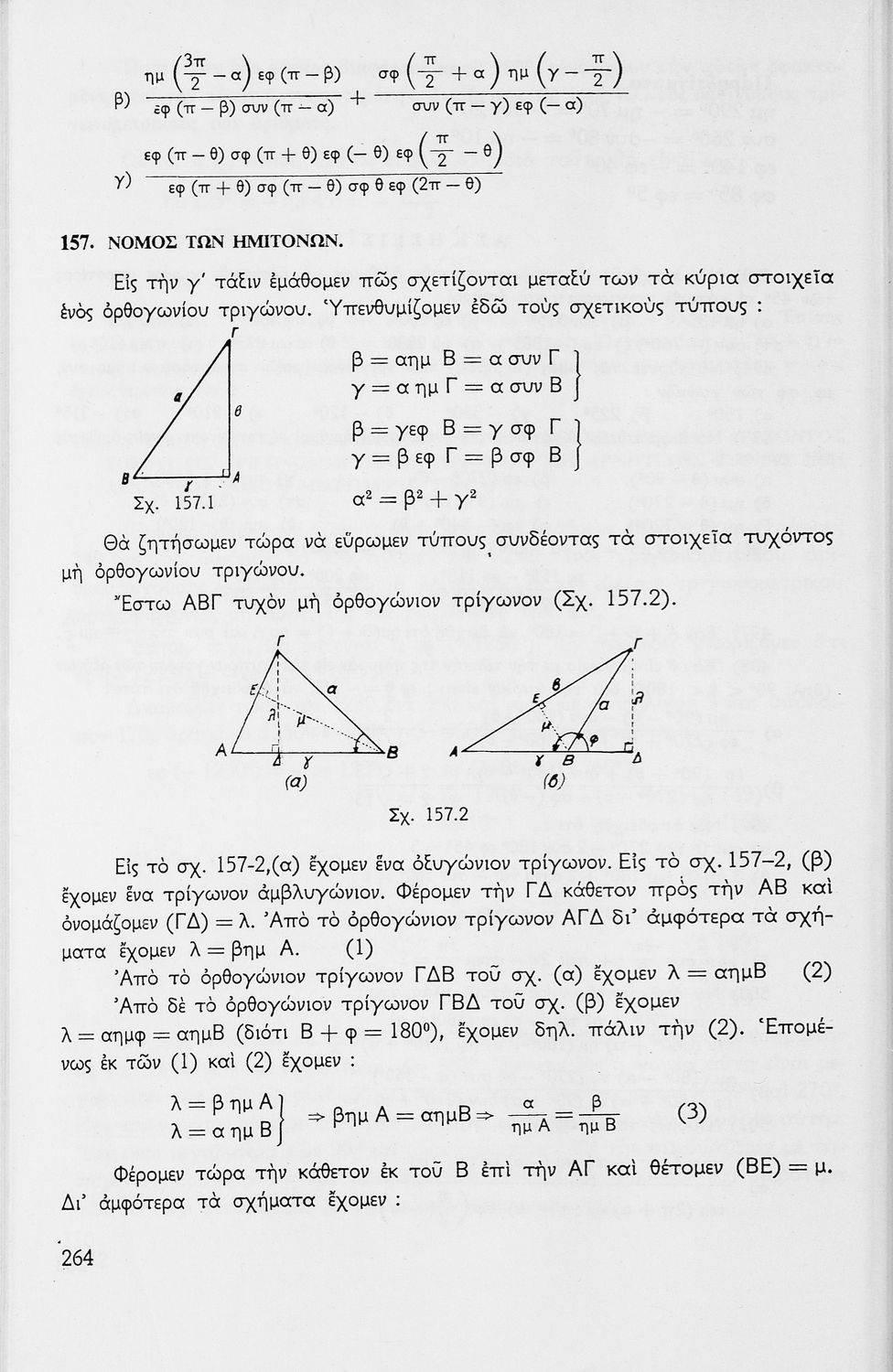 Σχολικό εγχειρίδιο Μαθηματικών για την Ε΄ Γυμνασίου, χωρισμένο σε προβλήματα, εφαρμογές και ασκήσεις, που εστιάζει στην Τριγωνομετρία. Φέρει το σύμβολο της δικτατορίας.