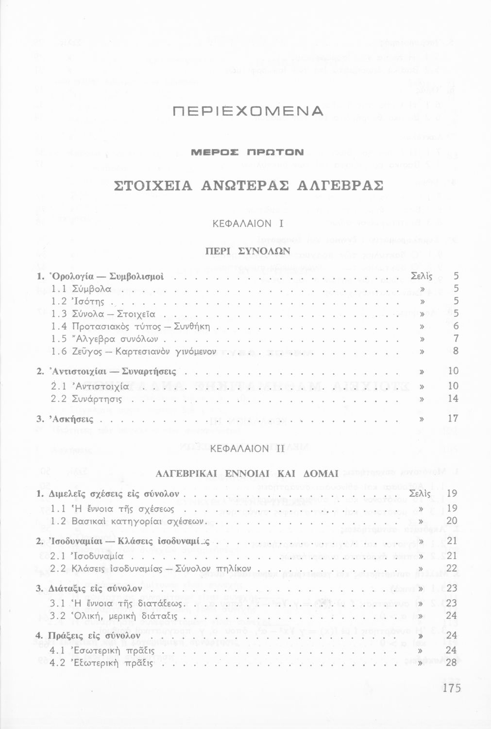 Σχολικό εγχειρίδιο Μαθηματικών ΣΤ΄ Γυμνασίου που είναι χωρισμένο σε θεωρήματα, παραδείγματα και ασκήσεις και περιλαμβάνει στοιχεία Ανώτερης Άλγεβρας και Μαθηματικής Ανάλυσης.