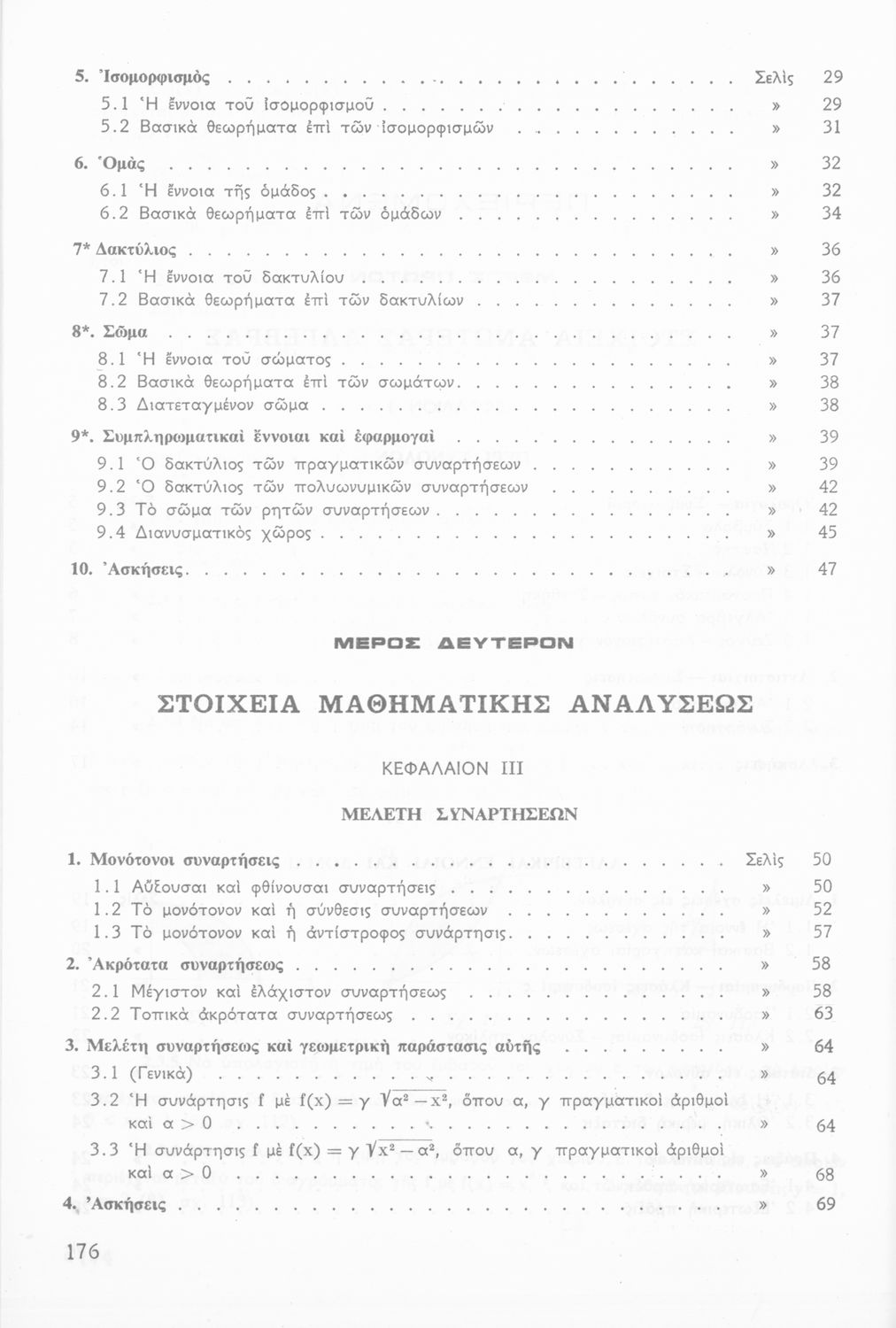 Σχολικό εγχειρίδιο Μαθηματικών Γυμνασίου που είναι χωρισμένο σε θεωρήματα, παραδείγματα και ασκήσεις και περιλαμβάνει στοιχεία Ανώτερης Άλγεβρας και Μαθηματικής Ανάλυσης.