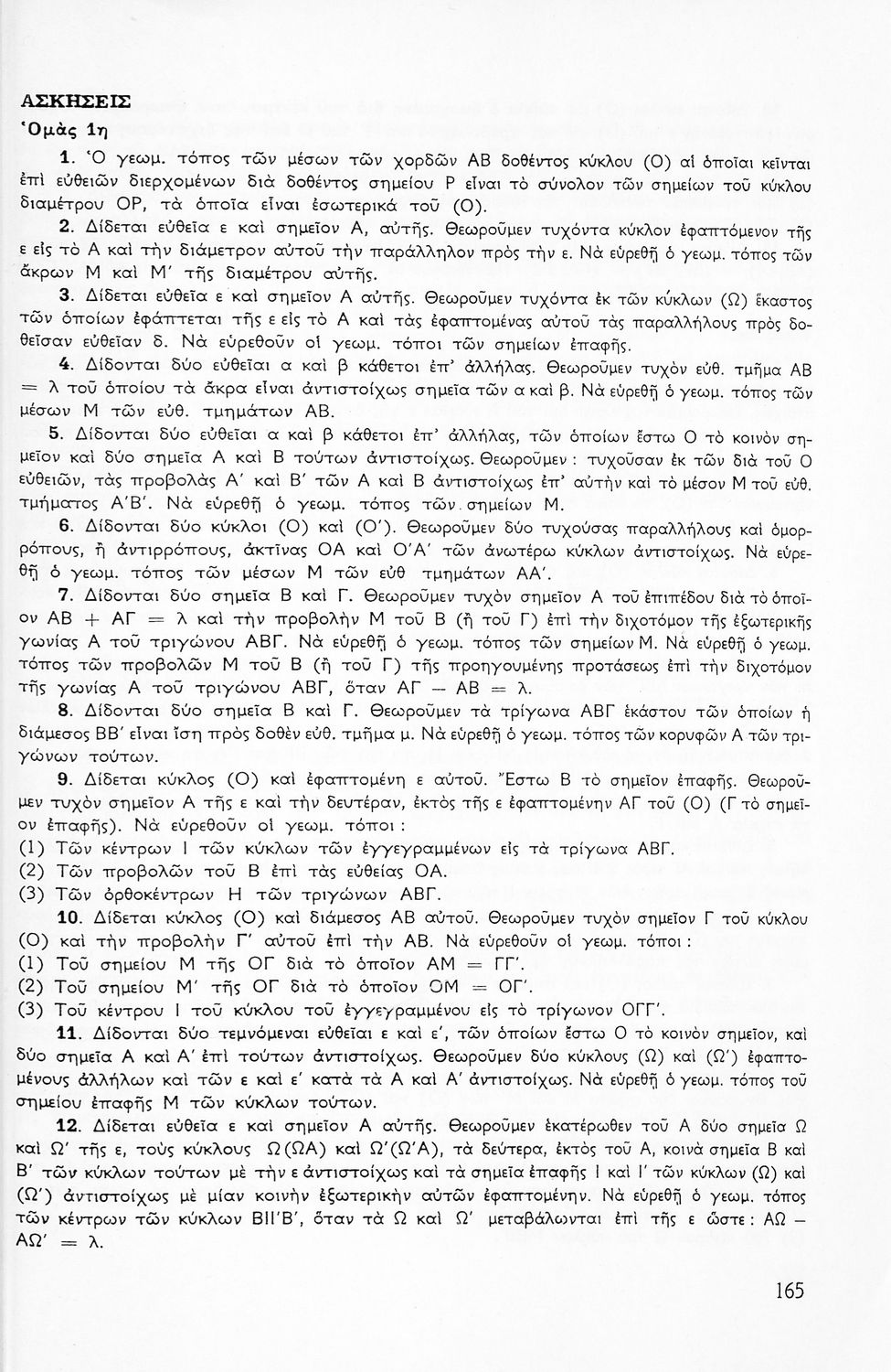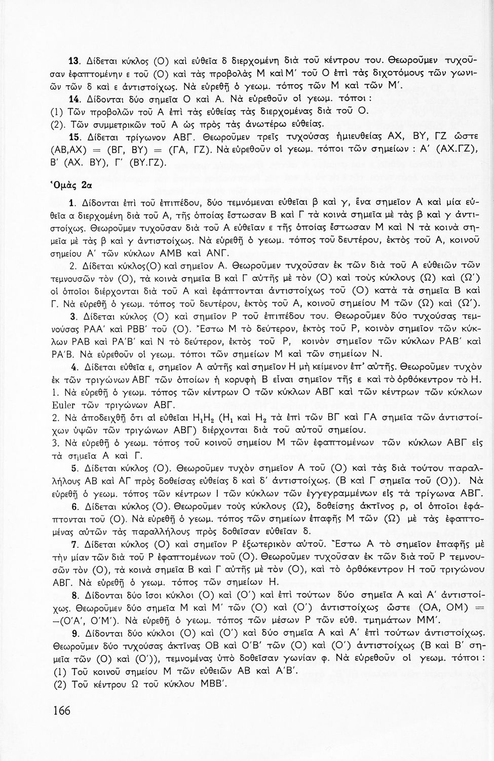 Βαθμίδα εκπαίδευσης: Δευτεροβάθμια Τάξη: Γ' Γυμνασίου Μάθημα: Μαθηματικά Γλώσσα: Απλή καθαρεύουσα Παρουσίαση περιεχομένου: Σχολικό εγχειρίδιο Μαθηματικών Γ΄ Γυμνασίου που εστιάζει στη Γεωμετρία. Φέρει το σύμβολο της δικτατορίας. |