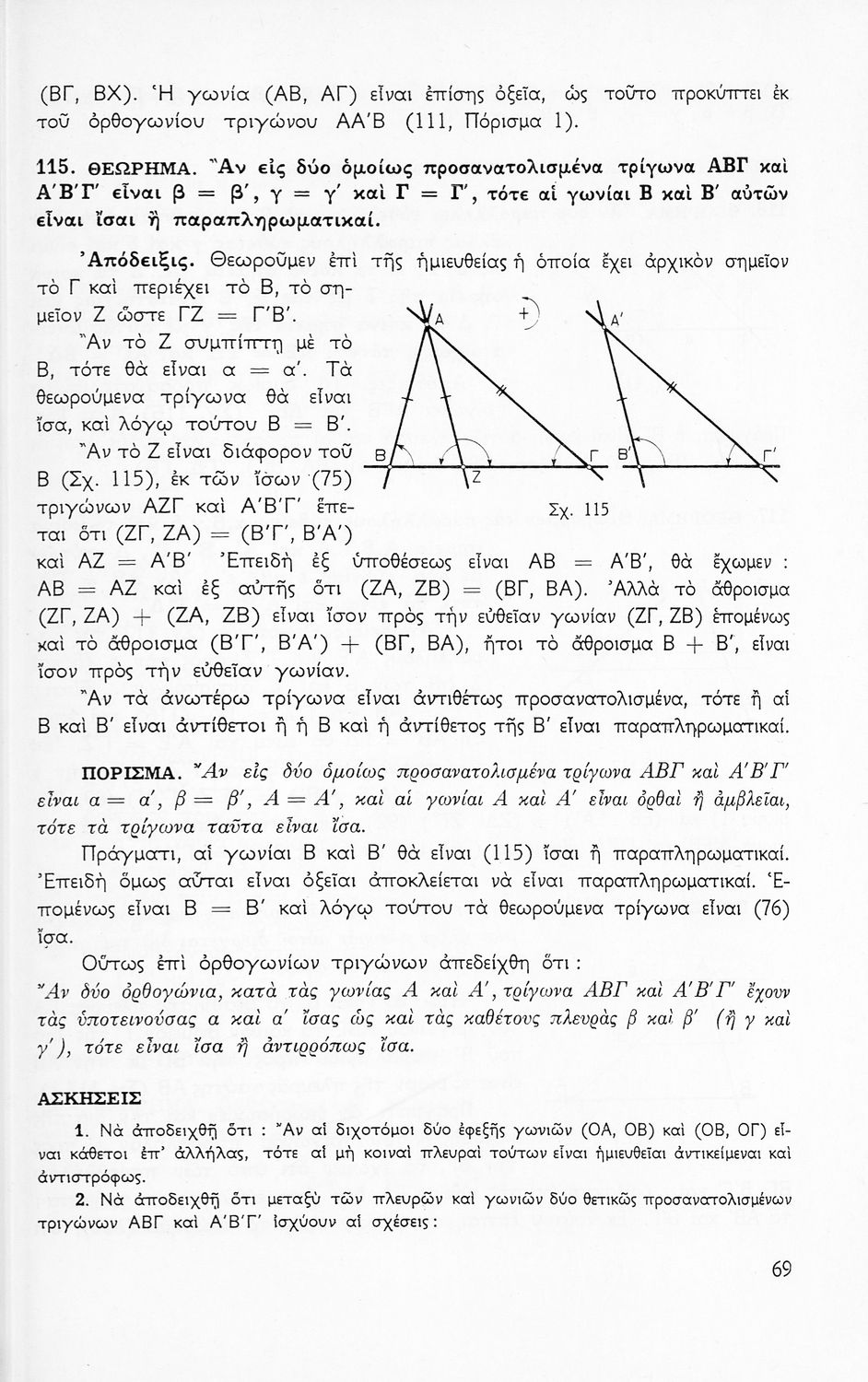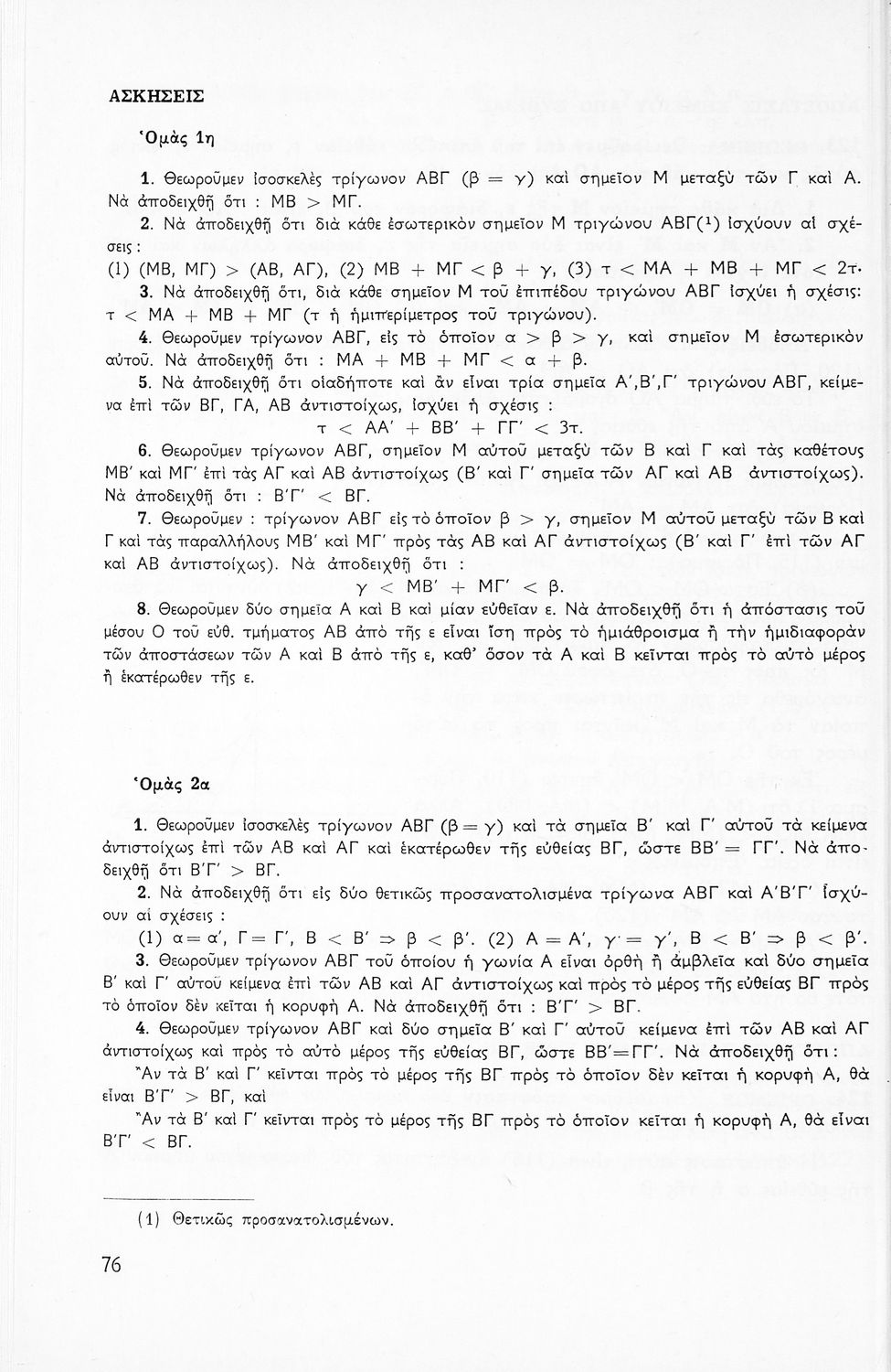 Σχολικό εγχειρίδιο Μαθηματικών Γ΄ Γυμνασίου που εστιάζει στη Γεωμετρία. Φέρει το σύμβολο της δικτατορίας. Ο συγγραφέας ήταν επιμελητής στο ΕΜΠ.