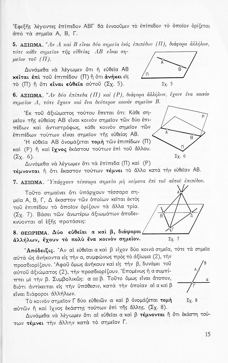 Σχολικό εγχειρίδιο Μαθηματικών Γ΄ Γυμνασίου που εστιάζει στη Γεωμετρία. Φέρει το σύμβολο της δικτατορίας.