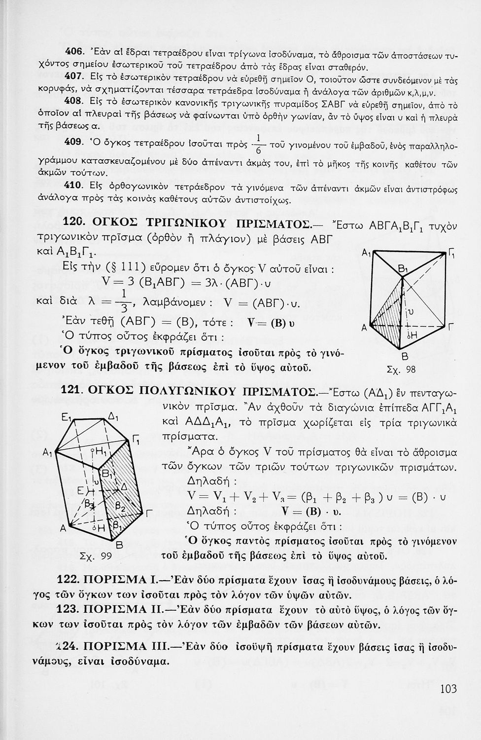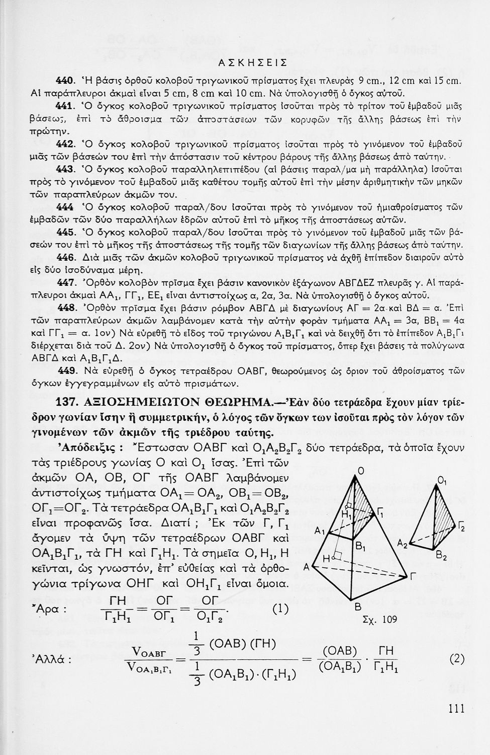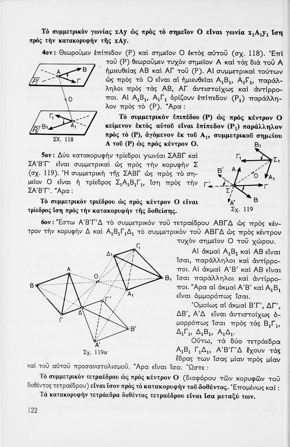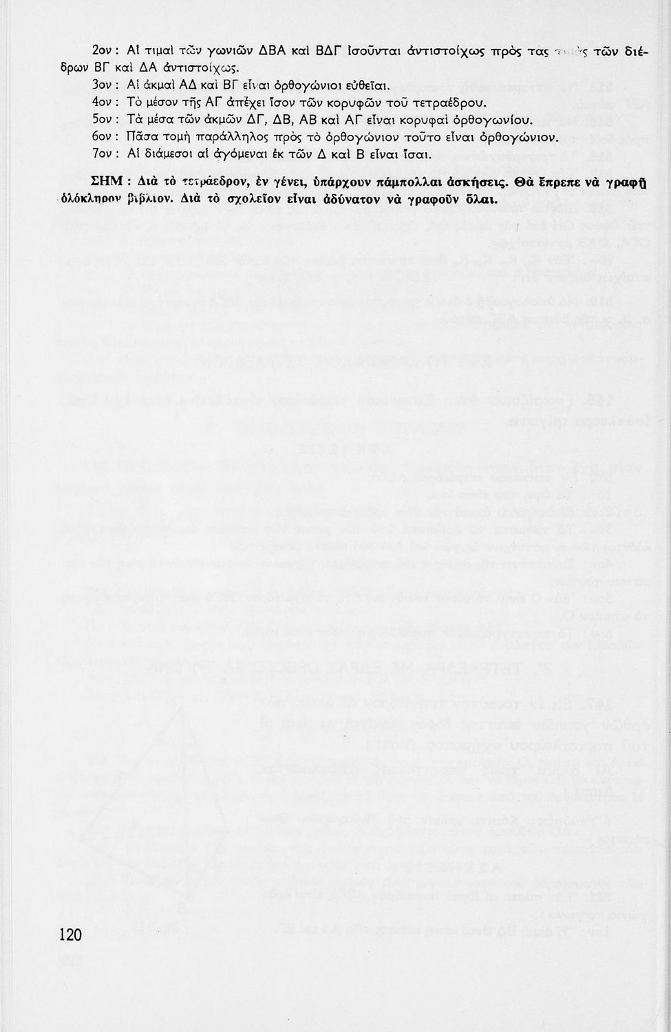 Σχολικό εγχειρίδιο Μαθηματικών για τις Δ΄, Ε΄ και ΣΤ΄ Γυμνασίου χωρισμένο σε θεωρήματα και ασκήσεις που εστιάζει στη Γεωμετρία. Φέρει το σύμβολο της δικτατορίας.