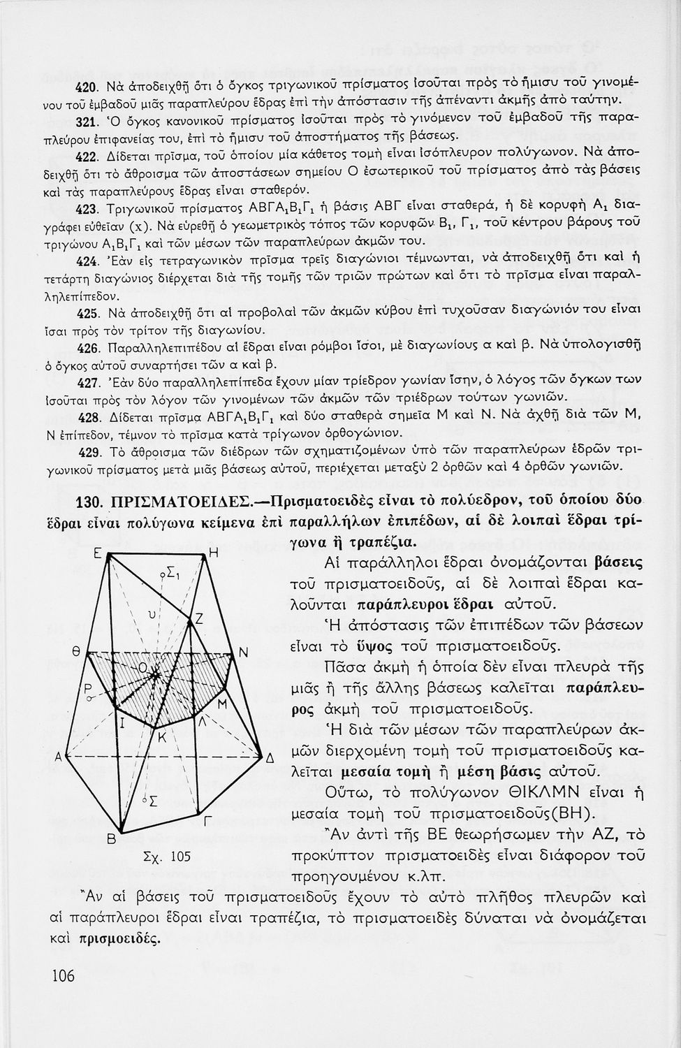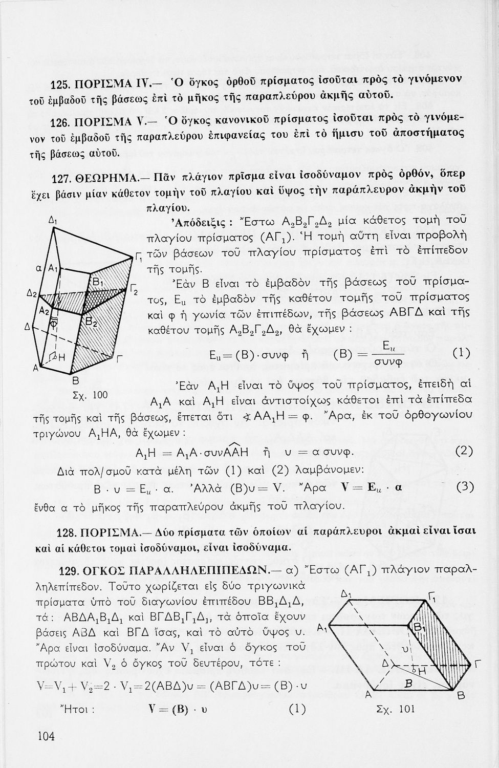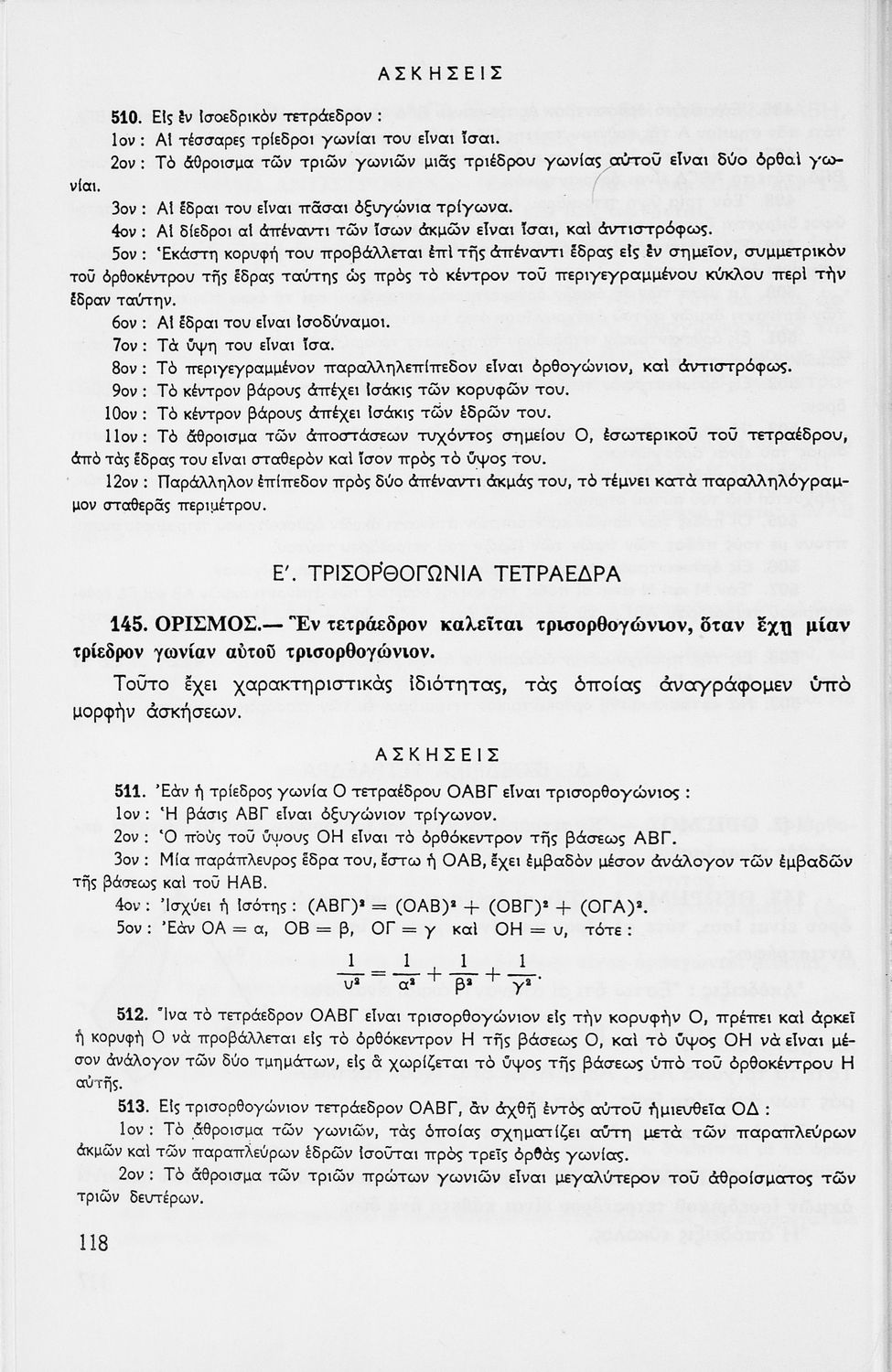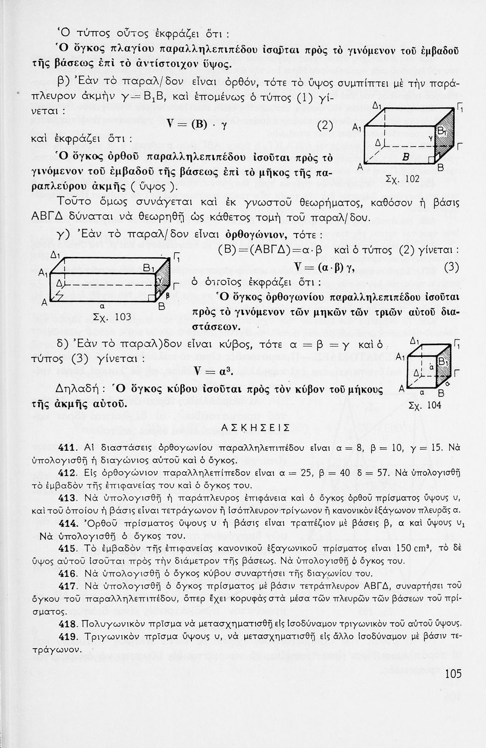 Σχολικό εγχειρίδιο Μαθηματικών για τις Δ΄, Ε΄ και ΣΤ΄ Γυμνασίου χωρισμένο σε θεωρήματα και ασκήσεις που εστιάζει στη Γεωμετρία. Φέρει το σύμβολο της δικτατορίας.