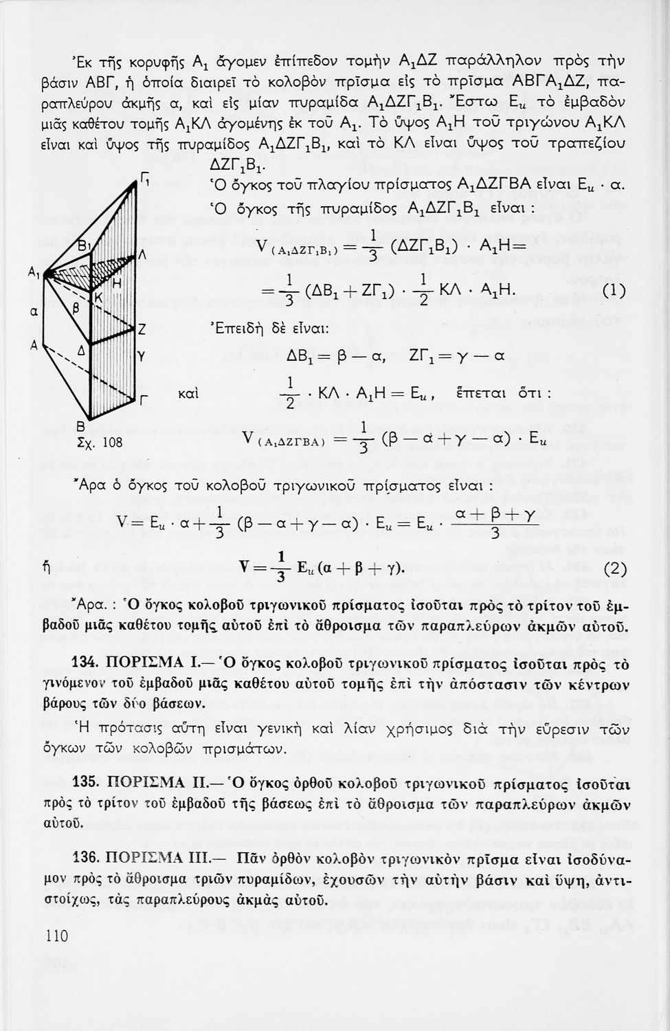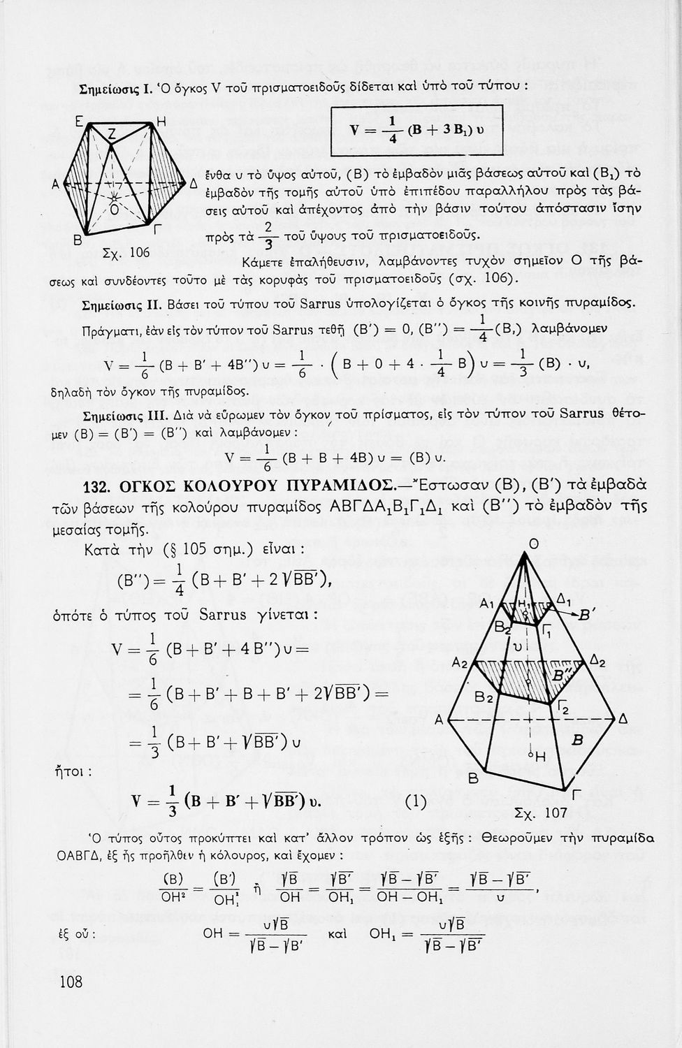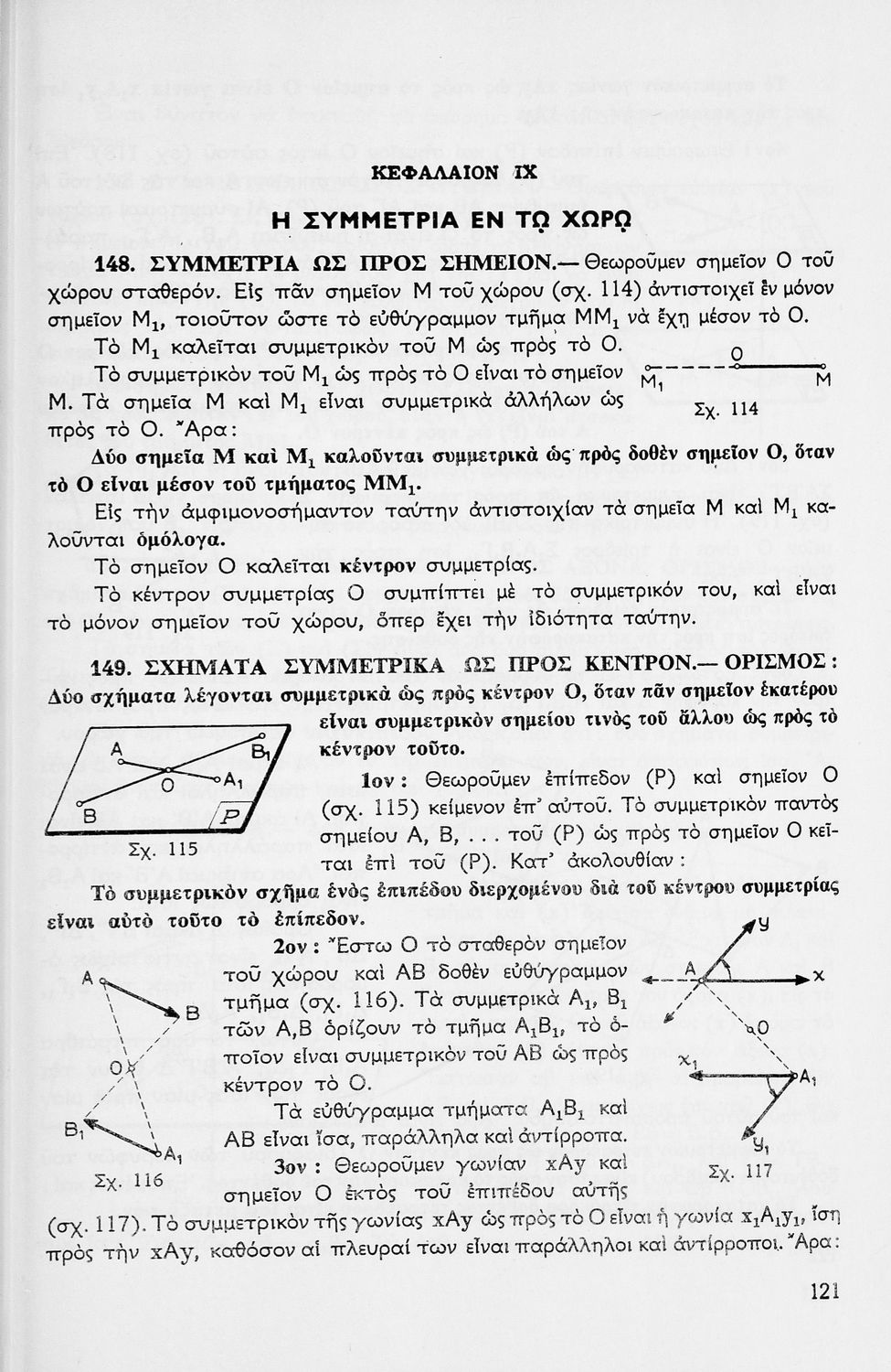 Σχολικό εγχειρίδιο Γεωμετρίας για τις Γ΄, Δ΄, Ε΄, ΣΤ΄ Γυμνασίου που περιλαμβάνει θεωρία και ασκήσεις και είναι χωρισμένο σε Επιπεδομετρία και Στερεομετρία. Φέρει το σύμβολο της δικτατορίας.