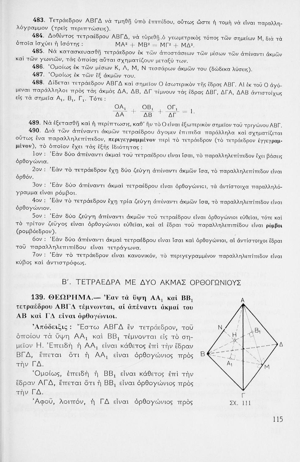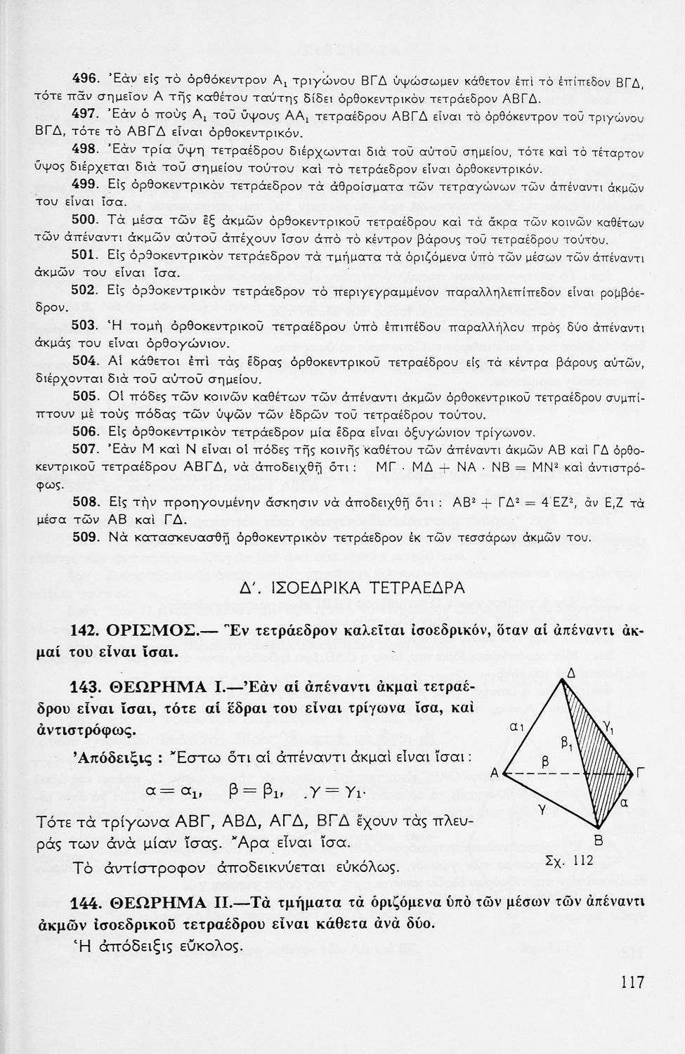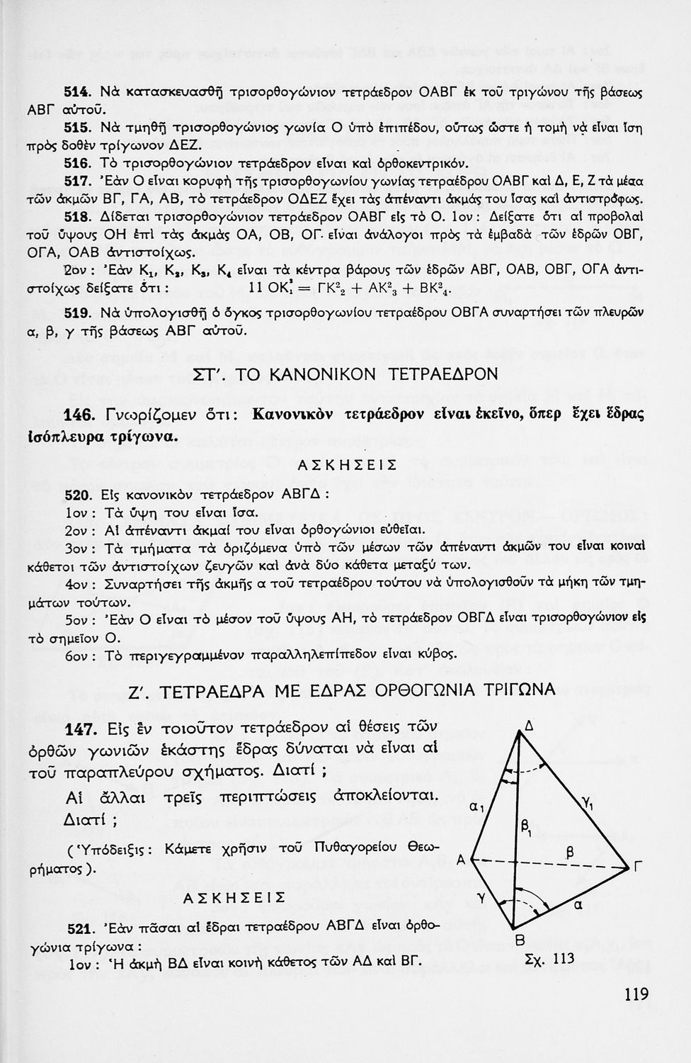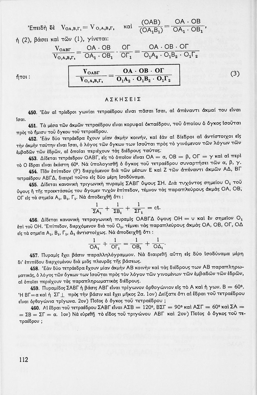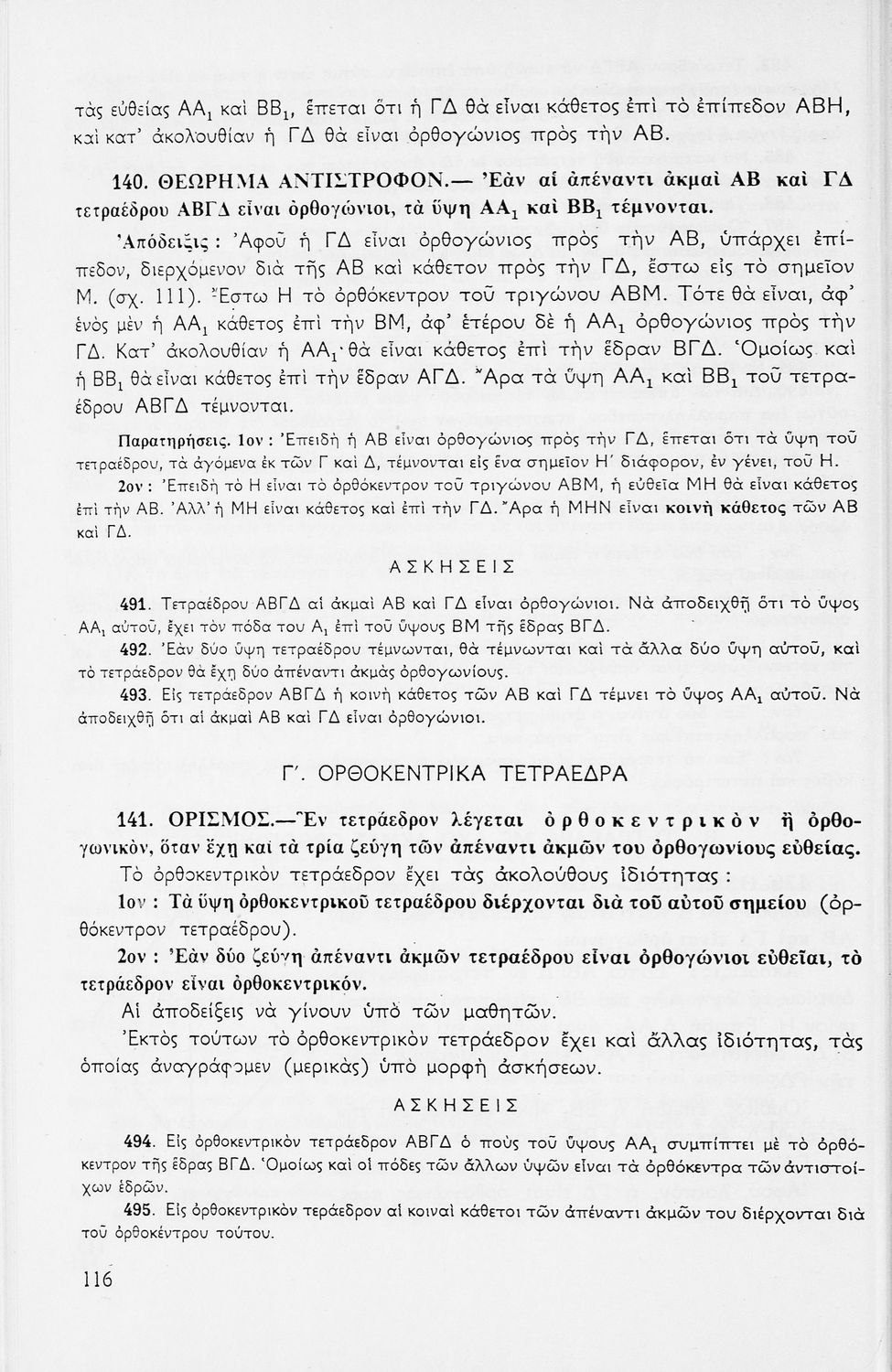 Σχολικό εγχειρίδιο Γεωμετρίας για τις Γ΄, Δ΄, Ε΄, ΣΤ΄ Γυμνασίου που περιλαμβάνει θεωρία και ασκήσεις και είναι χωρισμένο σε Επιπεδομετρία και Στερεομετρία.