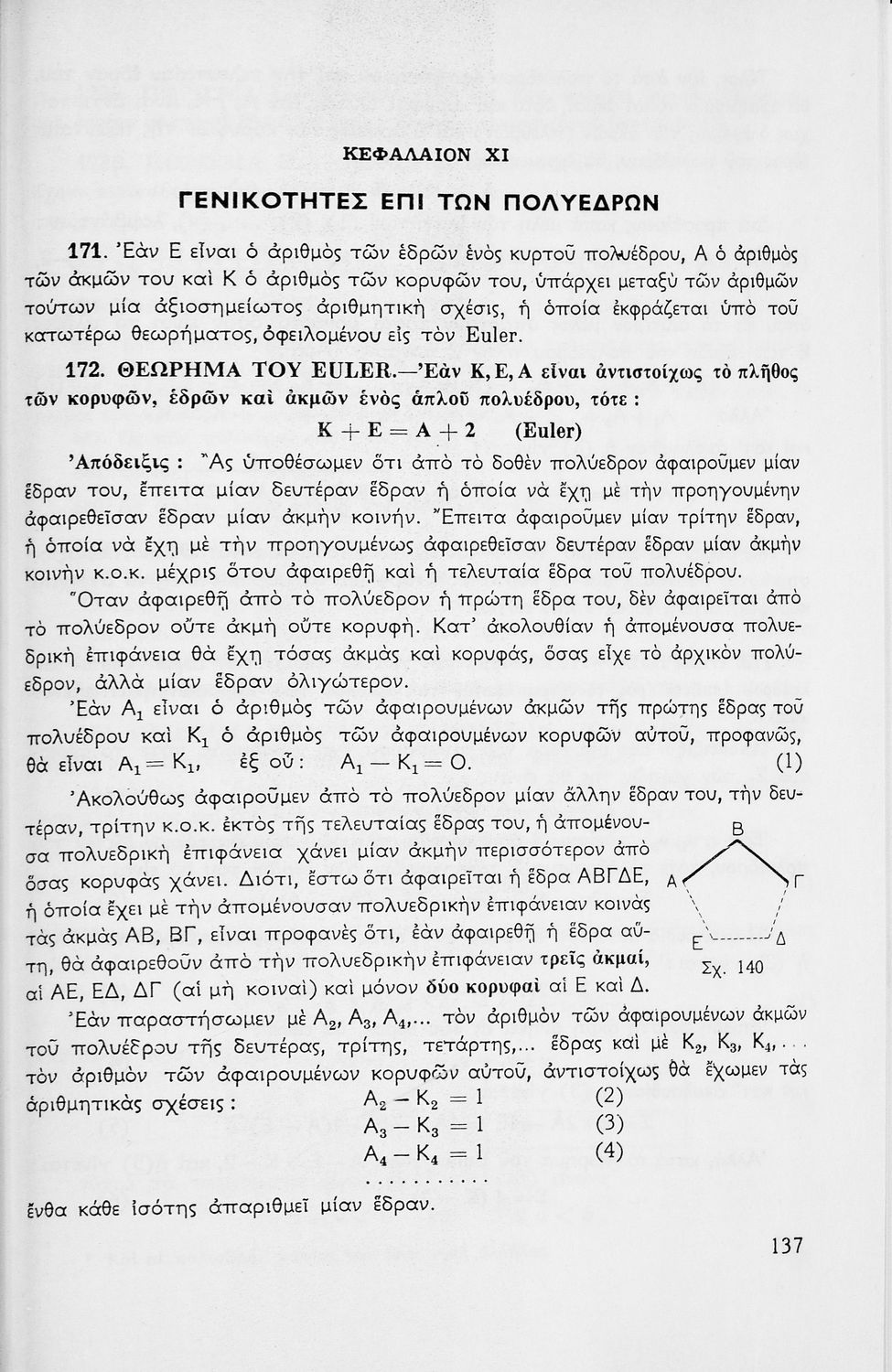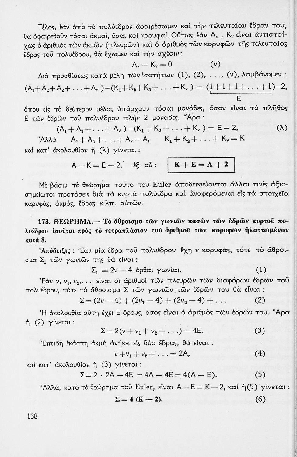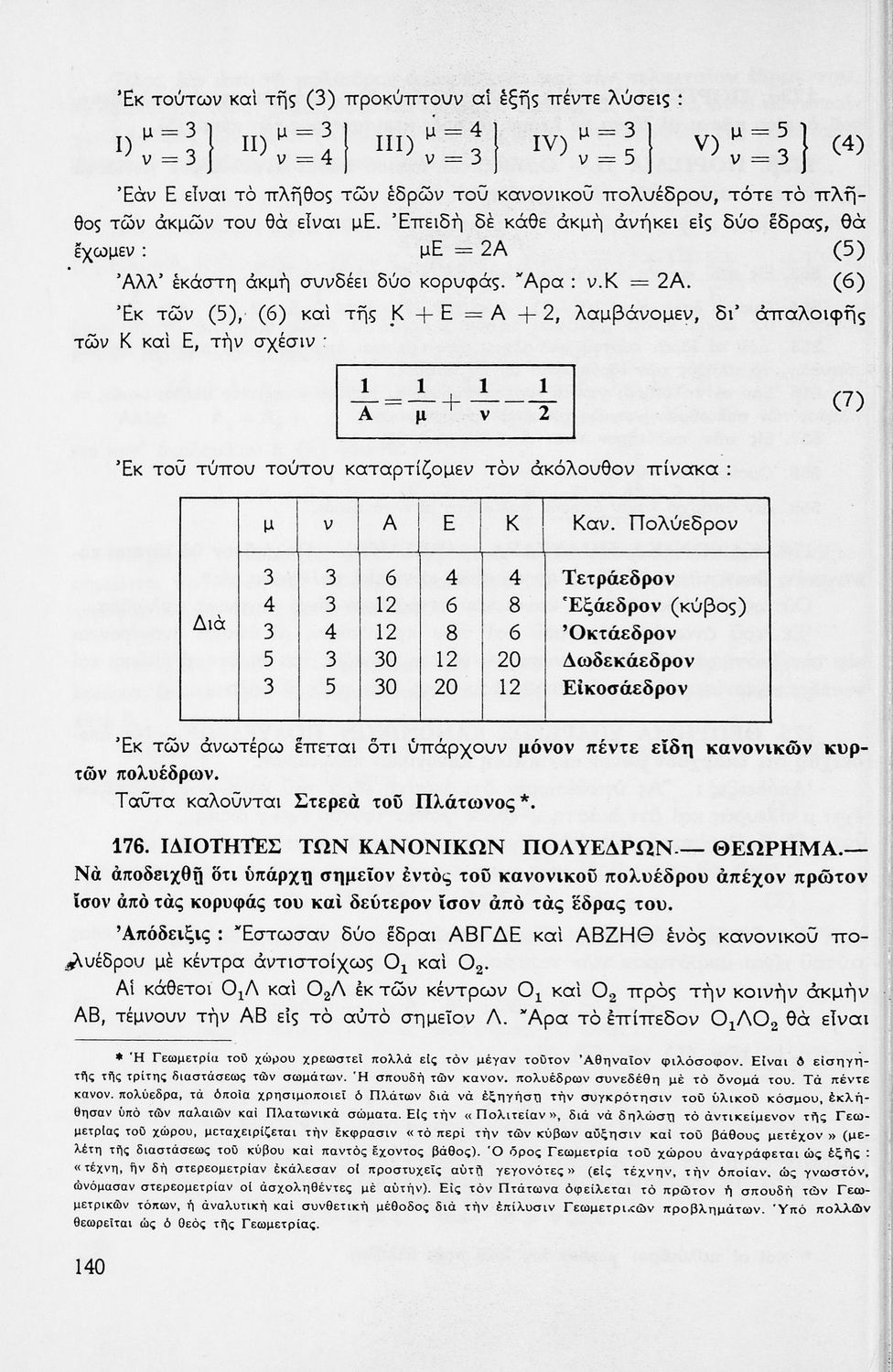 Σχολικό εγχειρίδιο Μαθηματικών για τις Δ΄, Ε΄ και ΣΤ΄ Γυμνασίου χωρισμένο σε θεωρήματα και ασκήσεις που εστιάζει στη Γεωμετρία. Φέρει το σύμβολο της δικτατορίας.