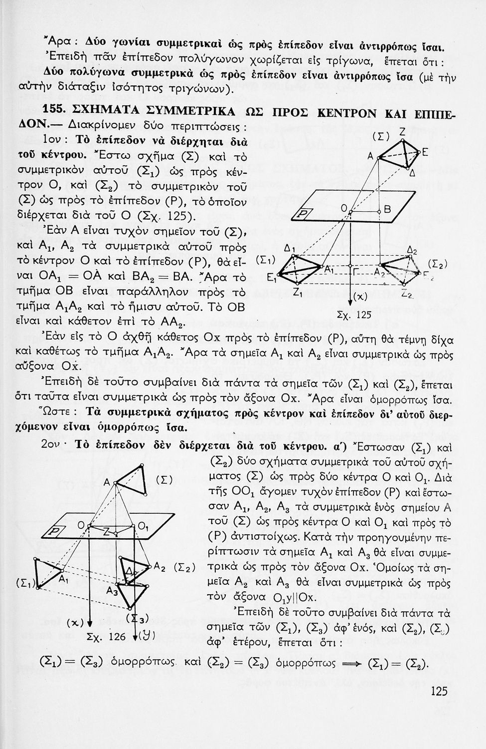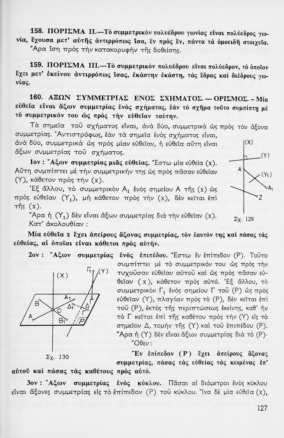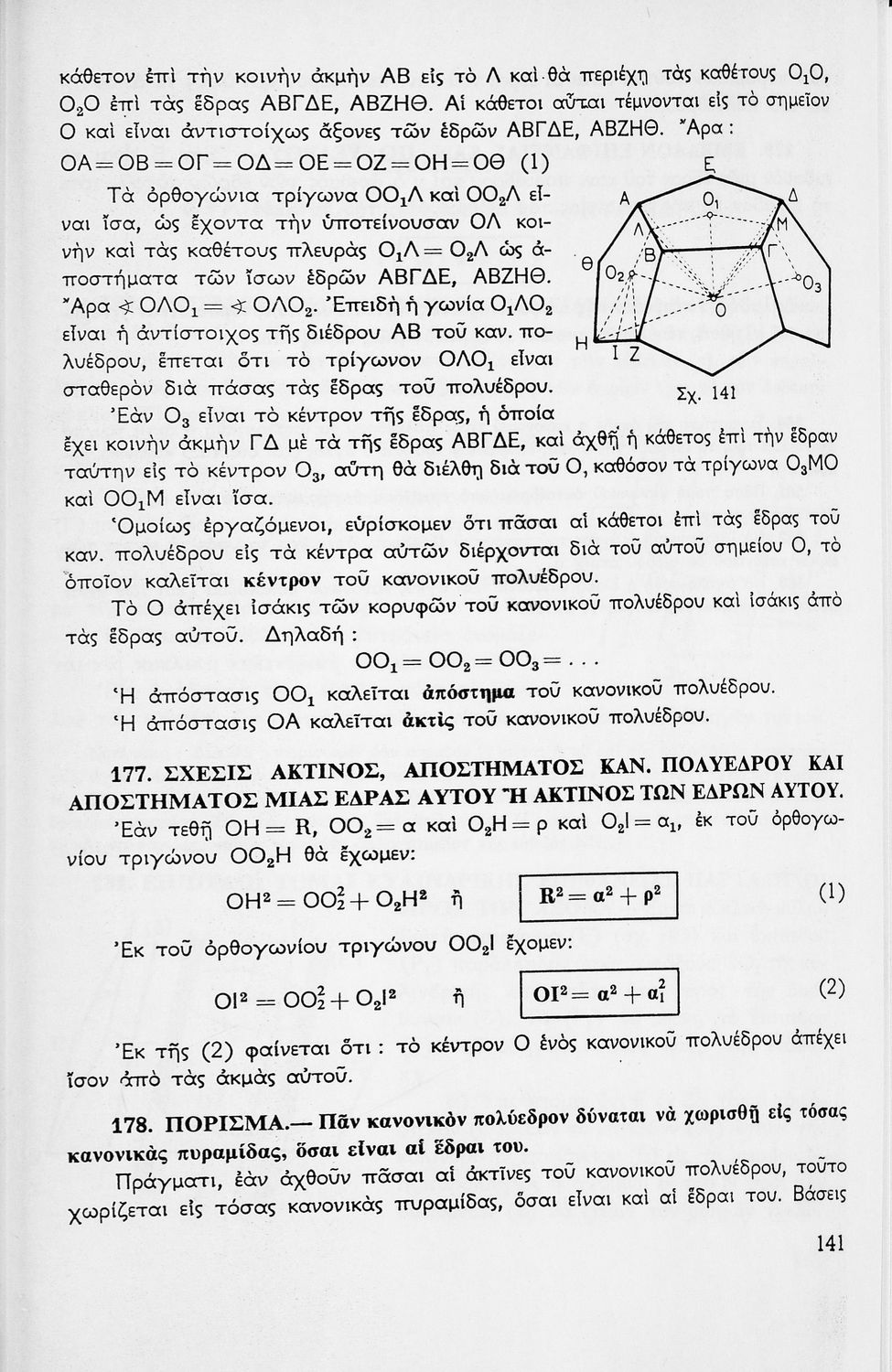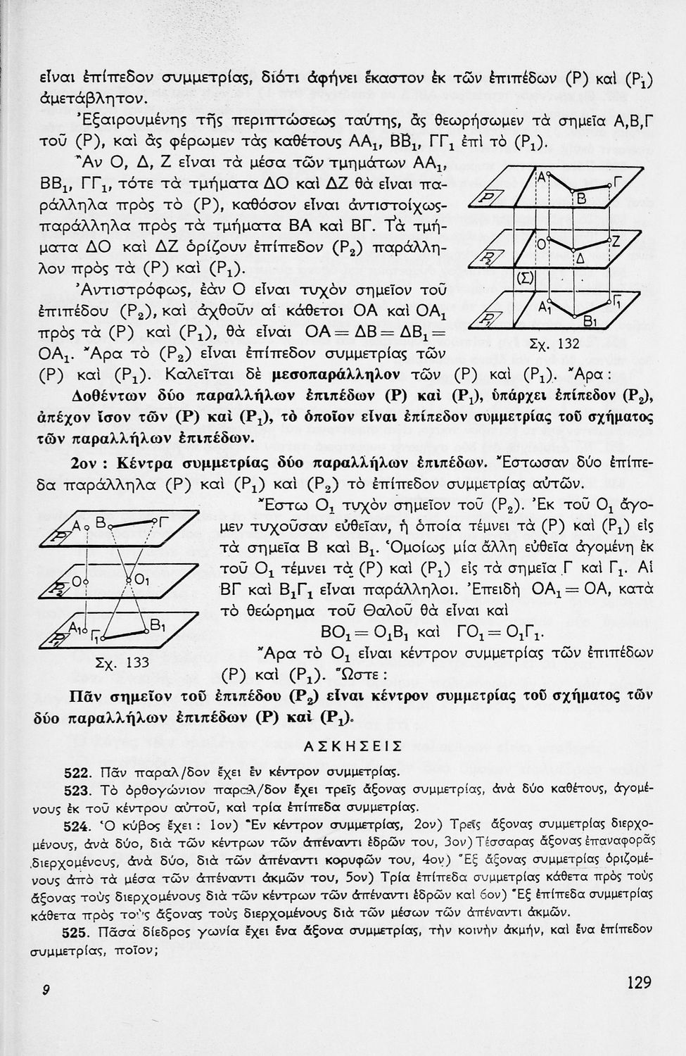 Σχολικό εγχειρίδιο Γεωμετρίας για τις Γ΄, Δ΄, Ε΄, ΣΤ΄ Γυμνασίου που περιλαμβάνει θεωρία και ασκήσεις και είναι χωρισμένο σε Επιπεδομετρία και Στερεομετρία. Φέρει το σύμβολο της δικτατορίας.