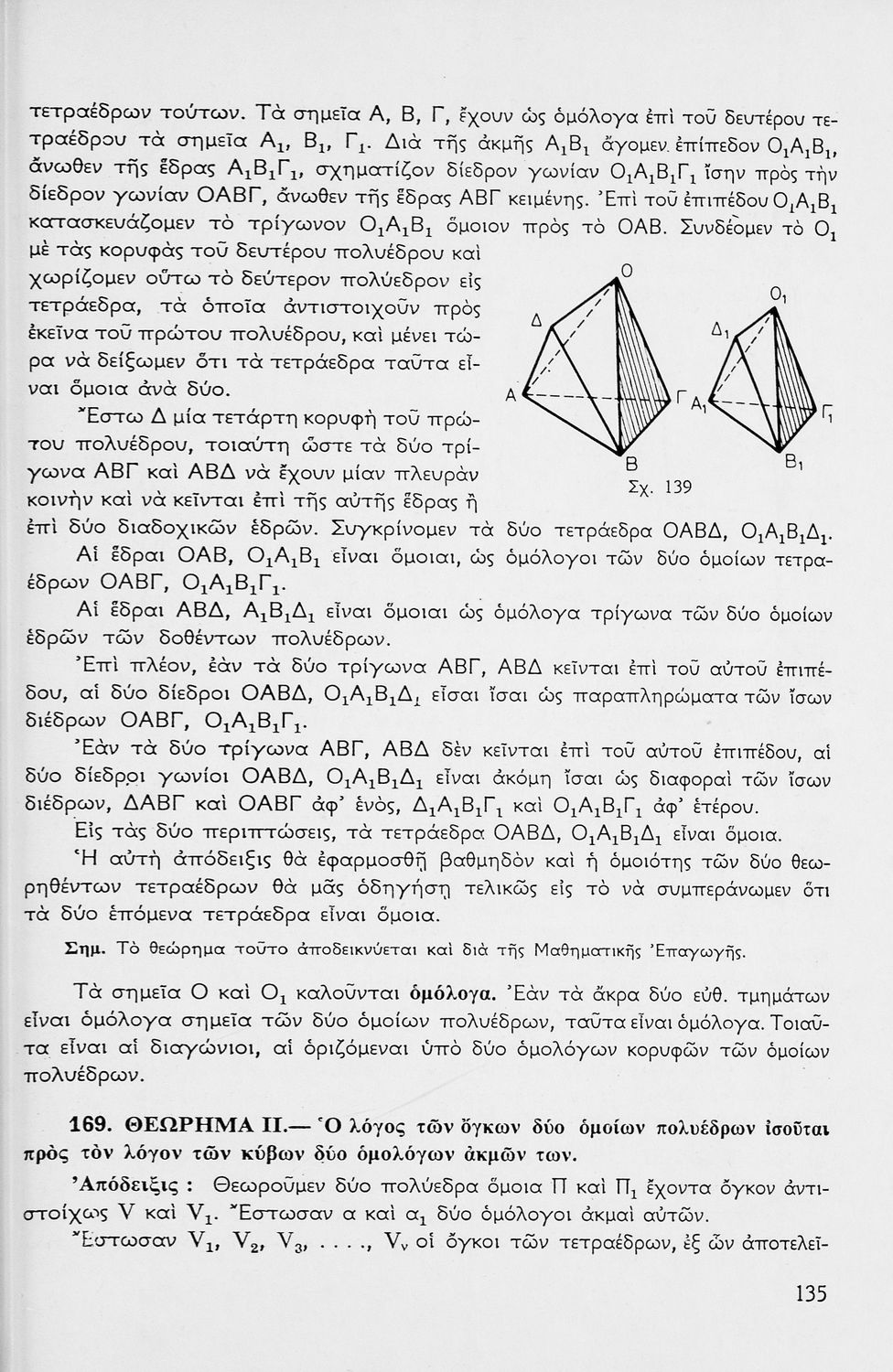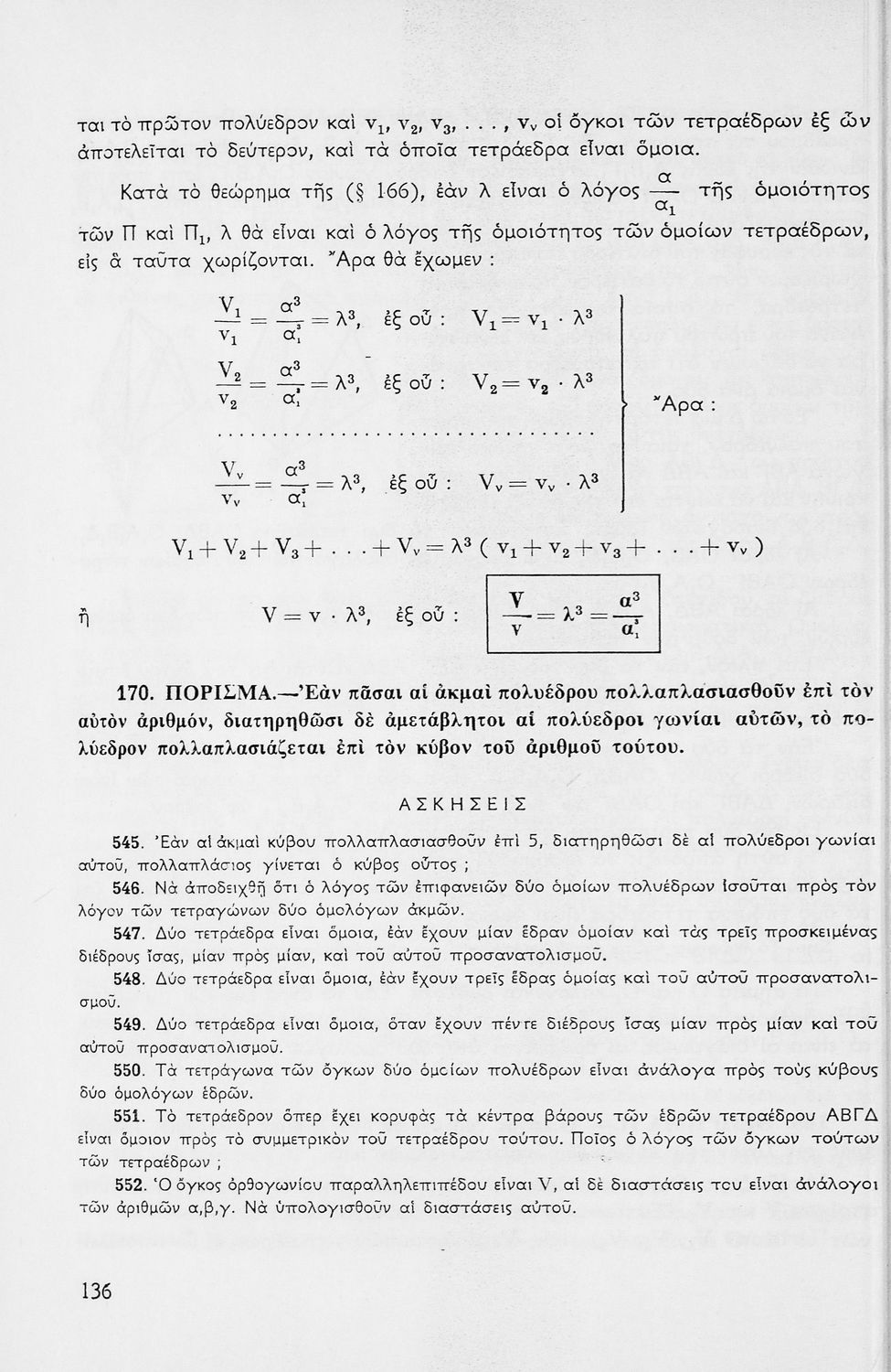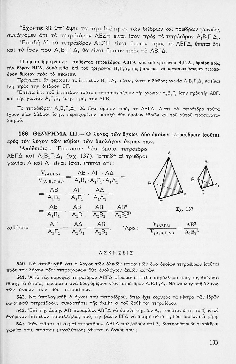 Σχολικό εγχειρίδιο Γεωμετρίας για τις Γ΄, Δ΄, Ε΄, ΣΤ΄ Γυμνασίου που περιλαμβάνει θεωρία και ασκήσεις και είναι χωρισμένο σε Επιπεδομετρία και Στερεομετρία.