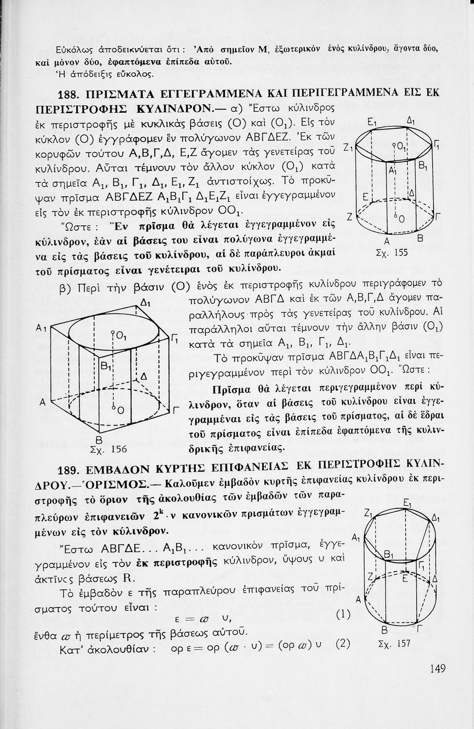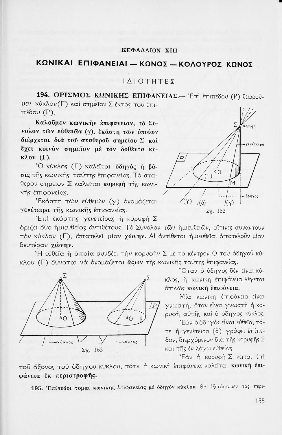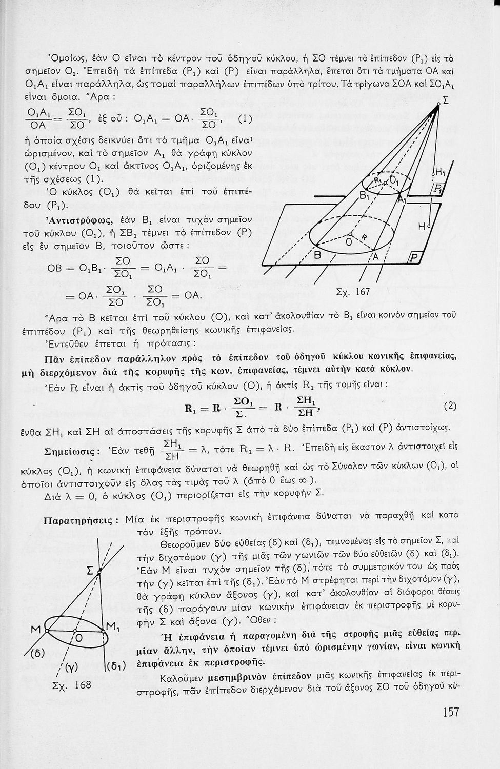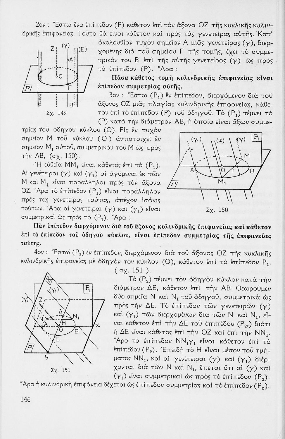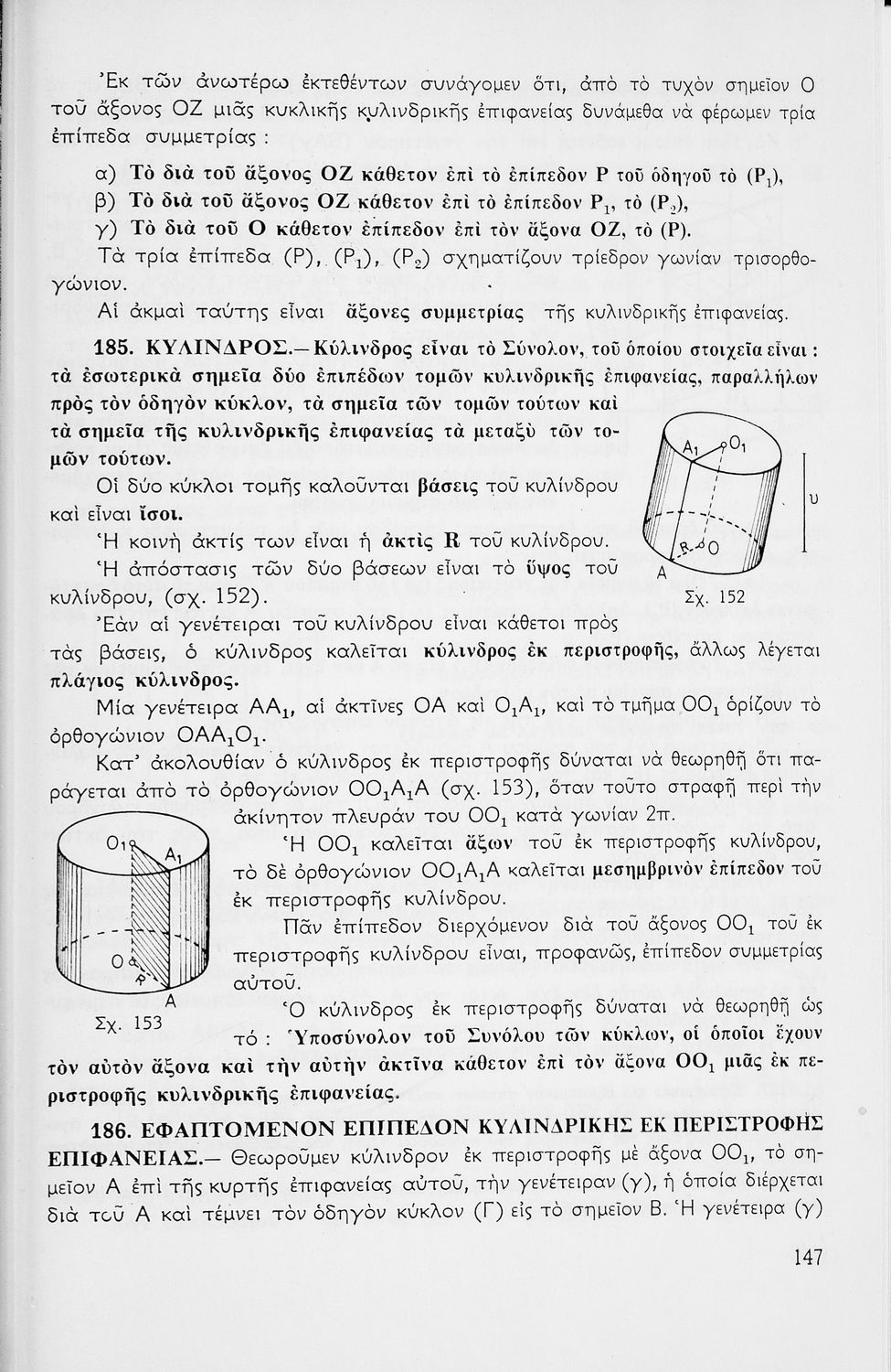 Σχολικό εγχειρίδιο Γεωμετρίας για τις Γ΄, Δ΄, Ε΄, ΣΤ΄ Γυμνασίου που περιλαμβάνει θεωρία και ασκήσεις και είναι χωρισμένο σε Επιπεδομετρία και Στερεομετρία. Φέρει το σύμβολο της δικτατορίας.