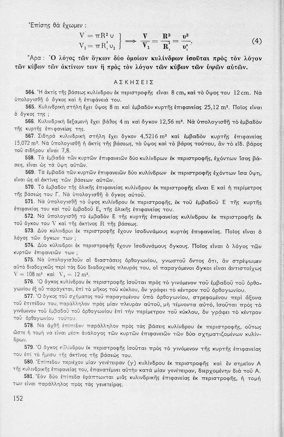 Σχολικό εγχειρίδιο Γεωμετρίας για τις Γ΄, Δ΄, Ε΄, ΣΤ΄ Γυμνασίου που περιλαμβάνει θεωρία και ασκήσεις και είναι χωρισμένο σε Επιπεδομετρία και Στερεομετρία.