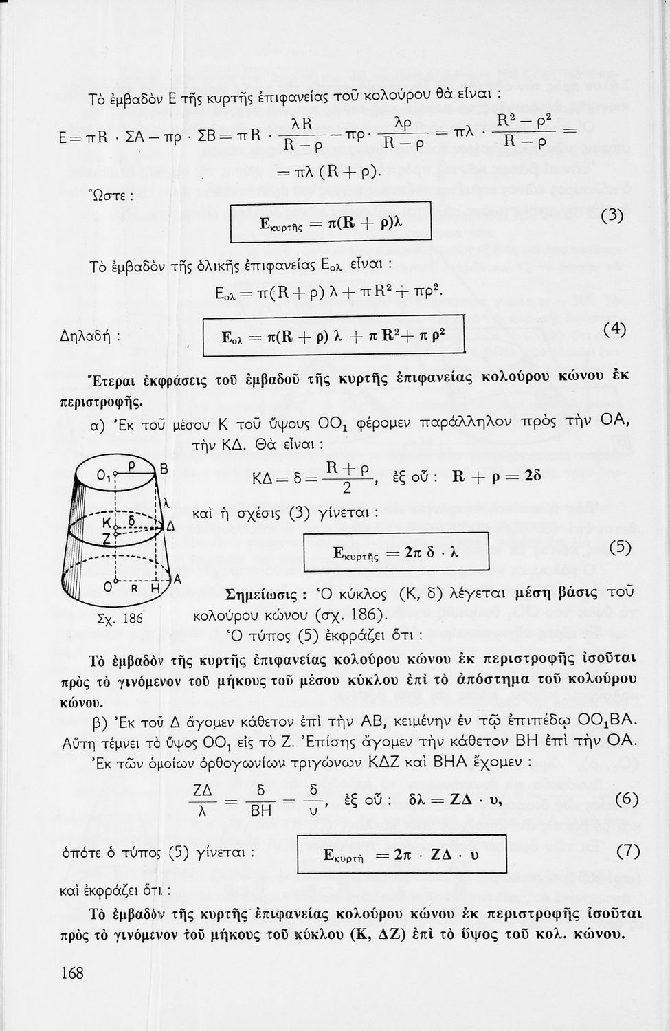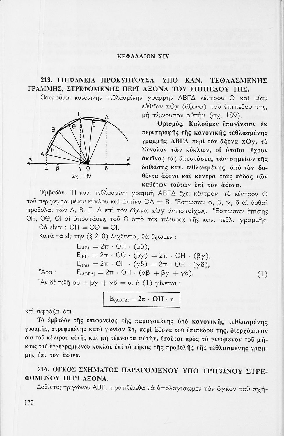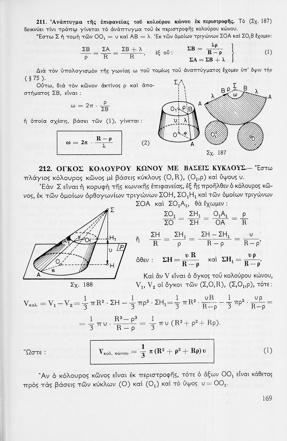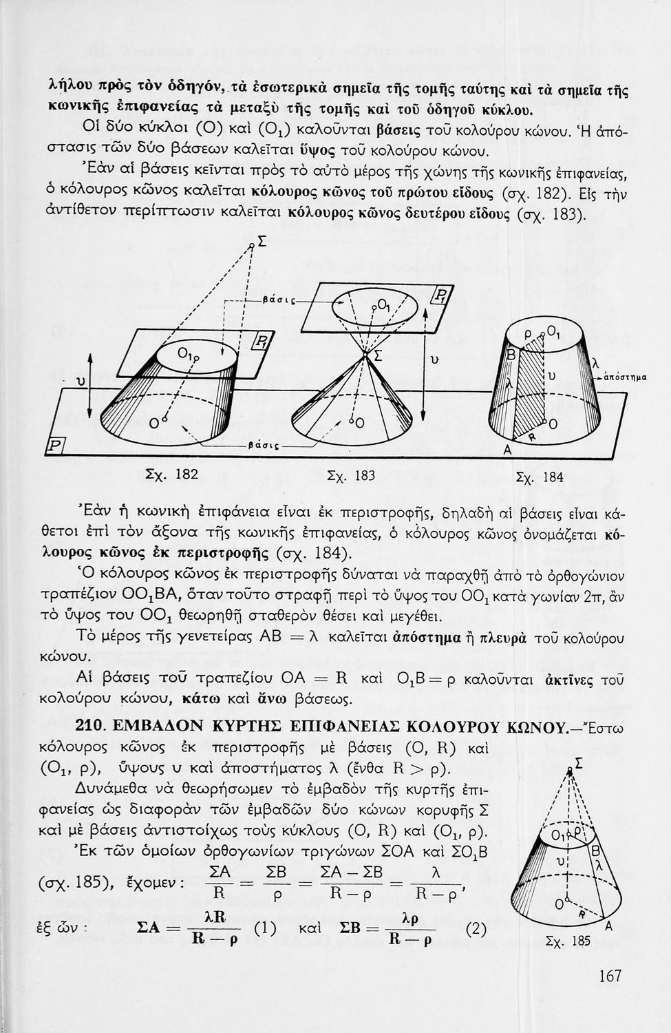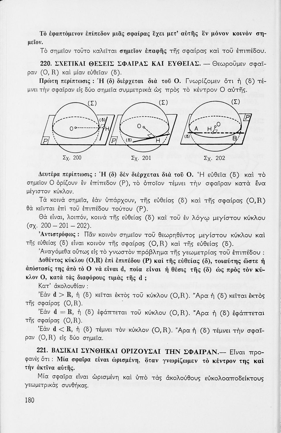 Σχολικό εγχειρίδιο Γεωμετρίας για τις Γ΄, Δ΄, Ε΄, ΣΤ΄ Γυμνασίου που περιλαμβάνει θεωρία και ασκήσεις και είναι χωρισμένο σε Επιπεδομετρία και Στερεομετρία. Φέρει το σύμβολο της δικτατορίας.