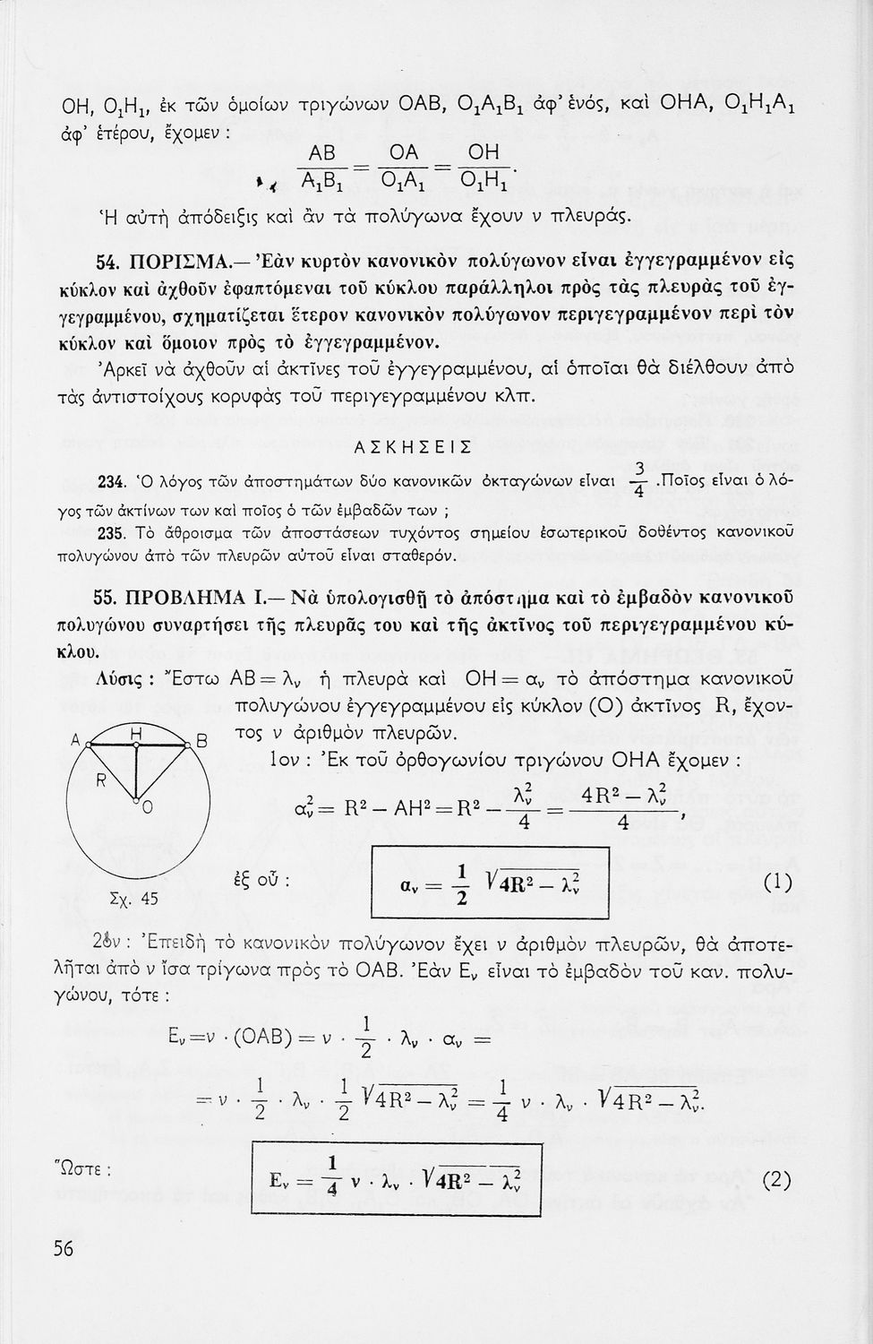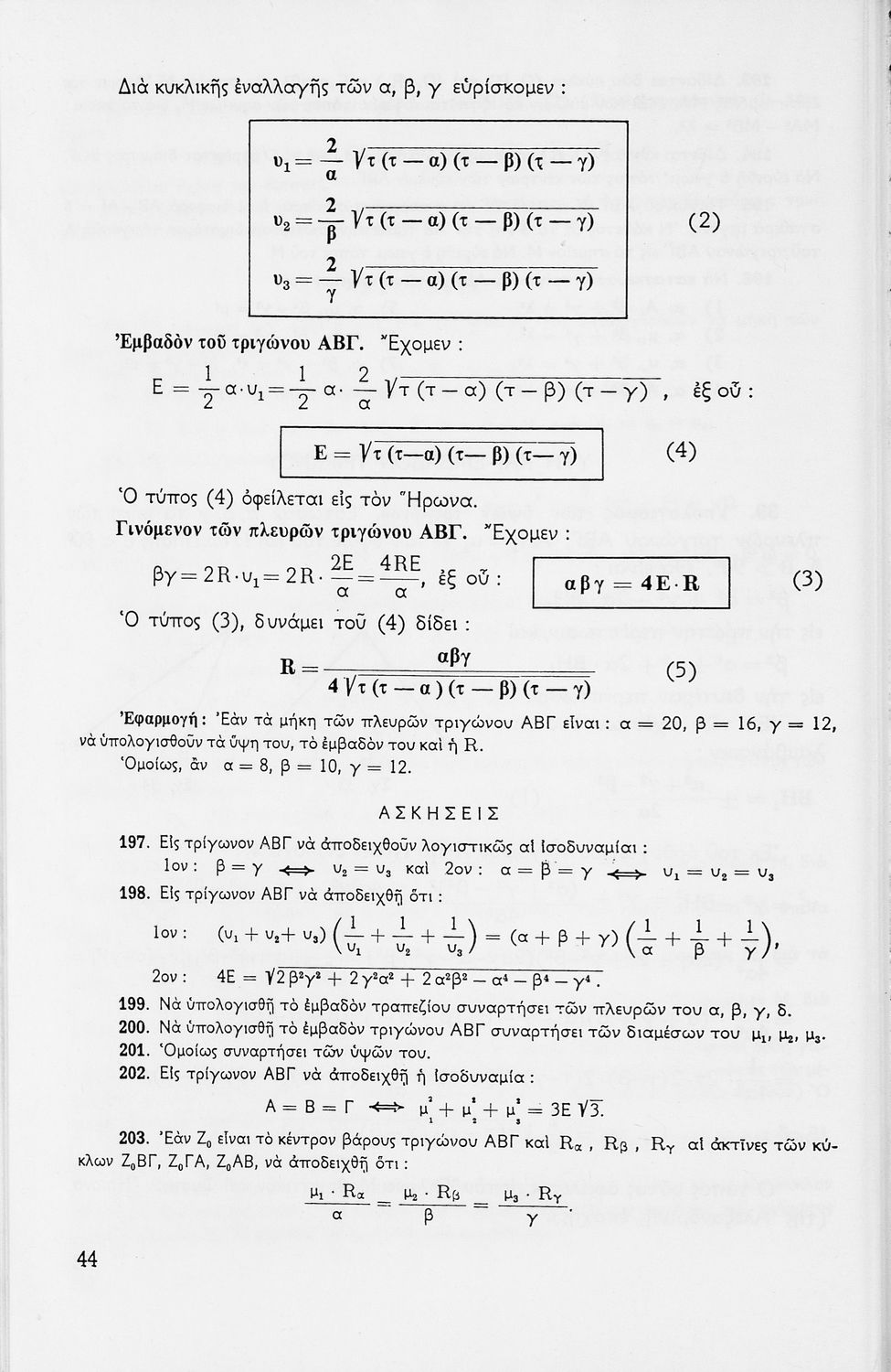 Σχολικό εγχειρίδιο Γεωμετρίας για τις Γ΄, Δ΄, Ε΄, ΣΤ΄ Γυμνασίου που περιλαμβάνει θεωρία και ασκήσεις και είναι χωρισμένο σε Επιπεδομετρία και Στερεομετρία.