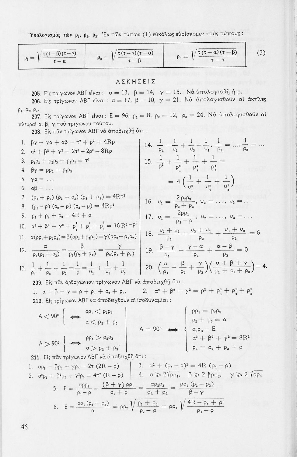 Σχολικό εγχειρίδιο Τριγωνομετρίας για τις Δ΄, Ε΄ και ΣΤ΄ Γυμνασίου που περιλαμβάνει θεωρία και ασκήσεις. Φέρει το σύμβολο της δικτατορίας.