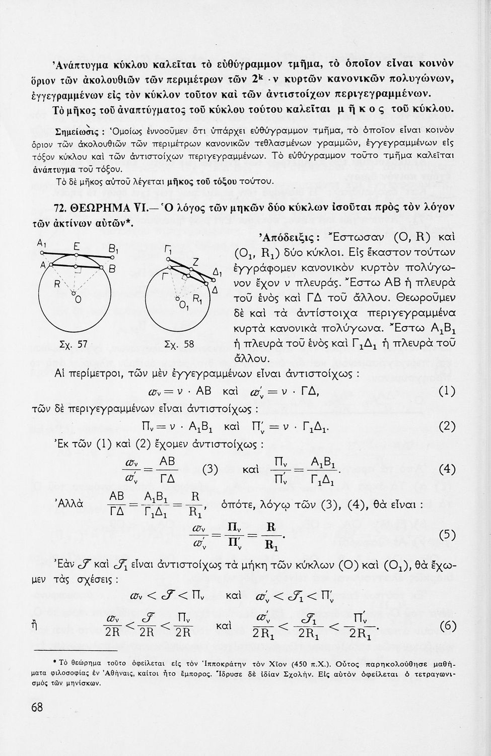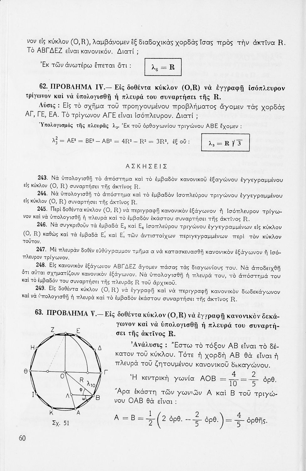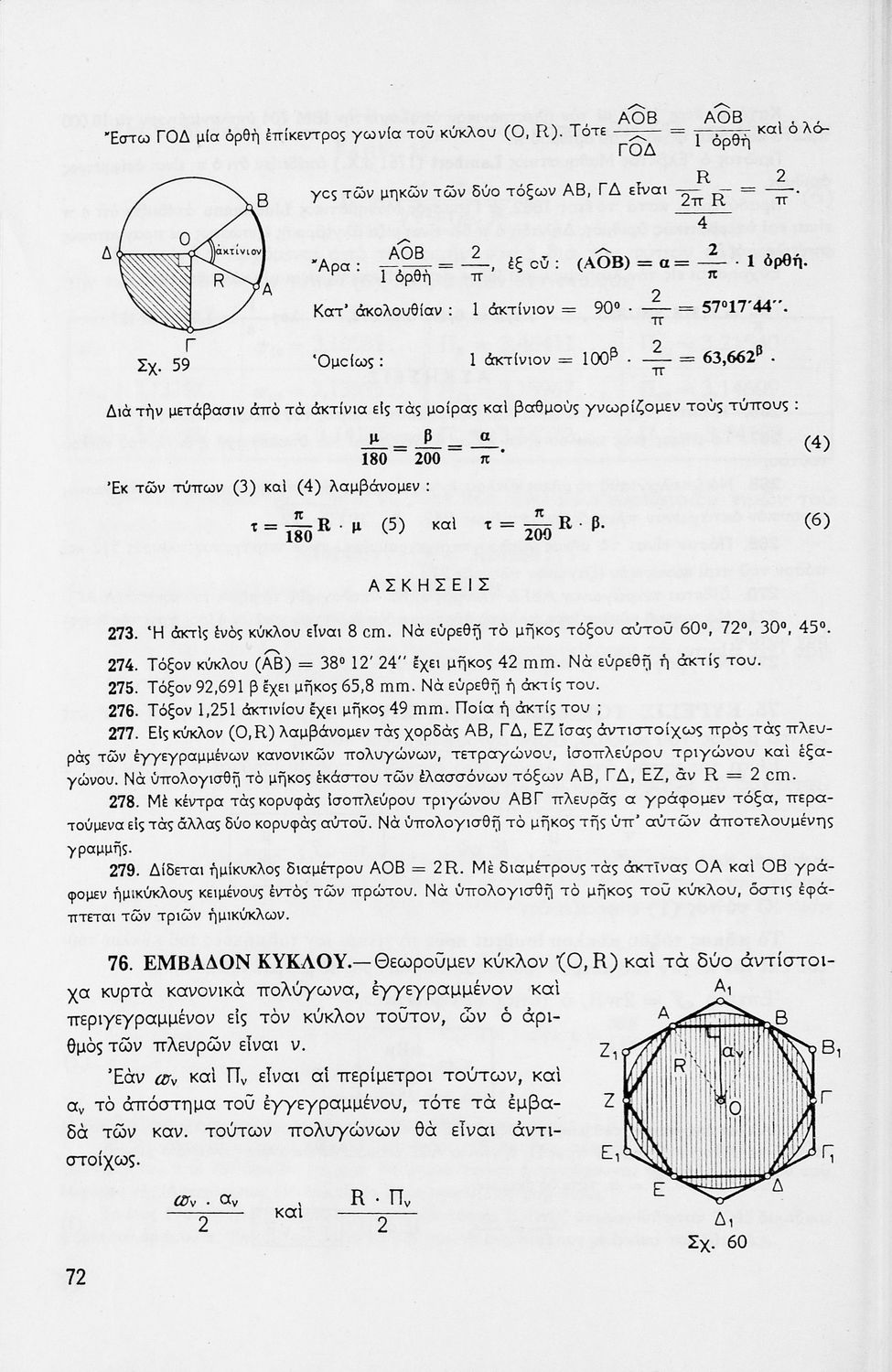 Σχολικό εγχειρίδιο Μαθηματικών για τις Δ΄, Ε΄ και ΣΤ΄ Γυμνασίου χωρισμένο σε θεωρήματα και ασκήσεις που εστιάζει στη Γεωμετρία. Φέρει το σύμβολο της δικτατορίας.