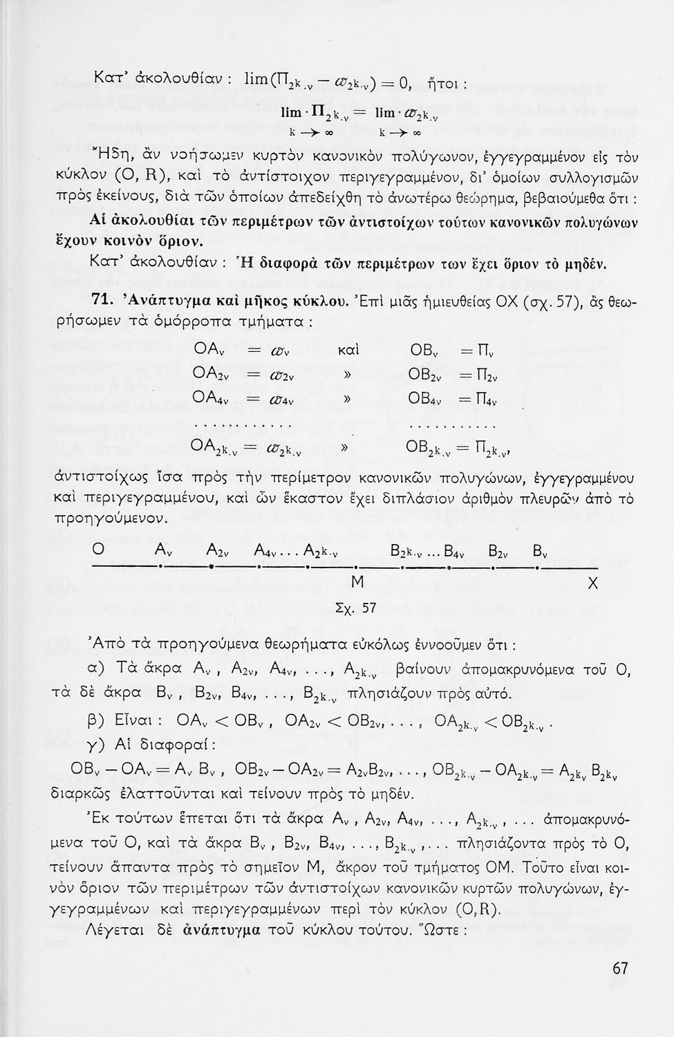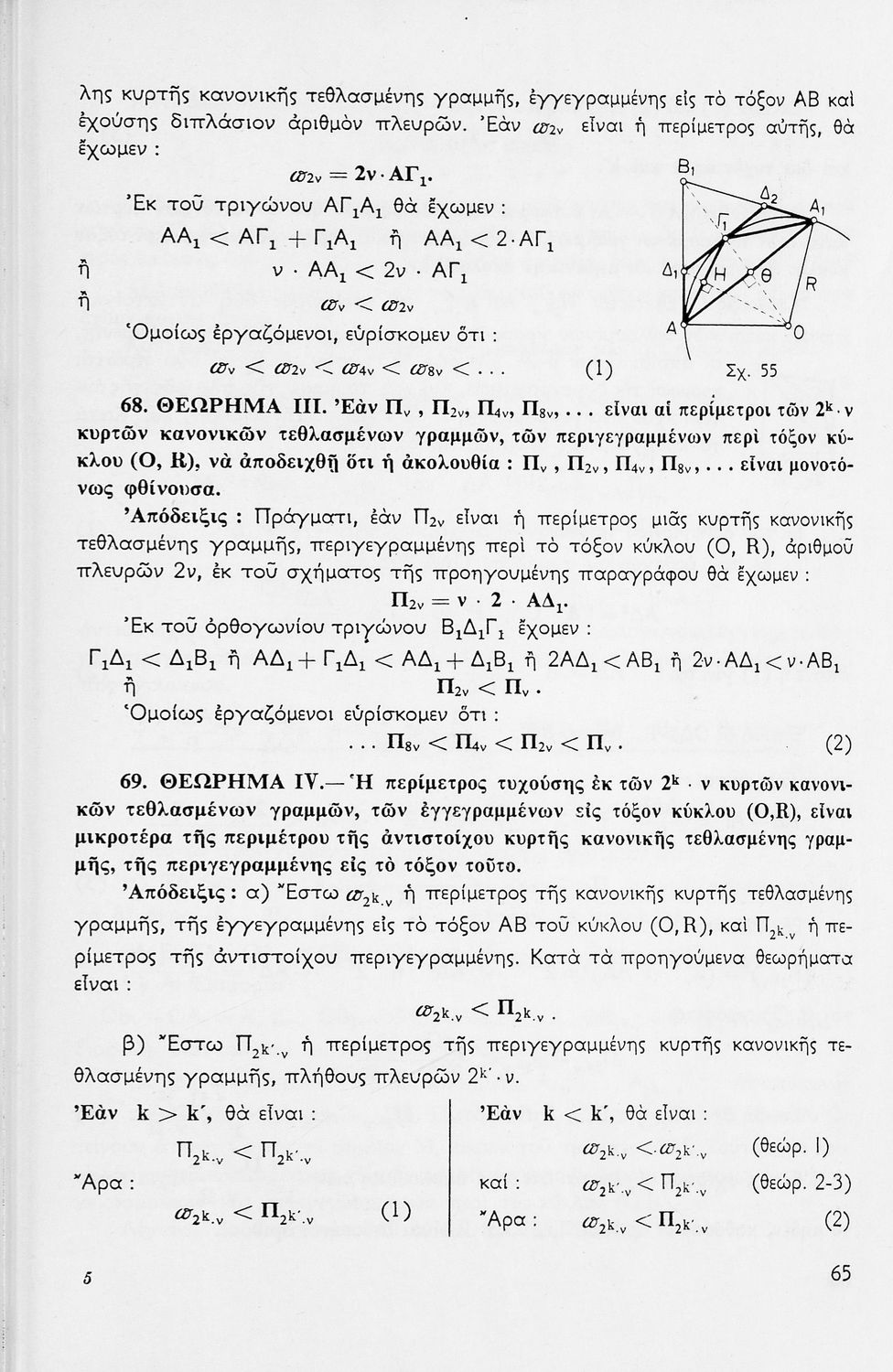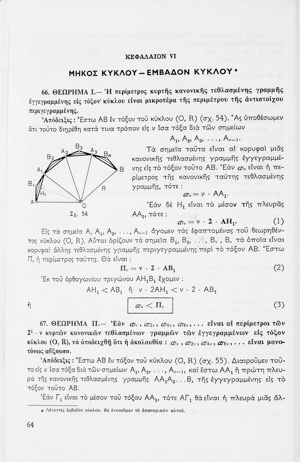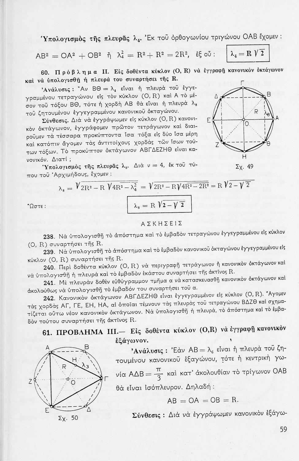 Σχολικό εγχειρίδιο Μαθηματικών για τις Δ΄, Ε΄ και ΣΤ΄ Γυμνασίου χωρισμένο σε θεωρήματα και ασκήσεις που εστιάζει στη Γεωμετρία. Φέρει το σύμβολο της δικτατορίας.