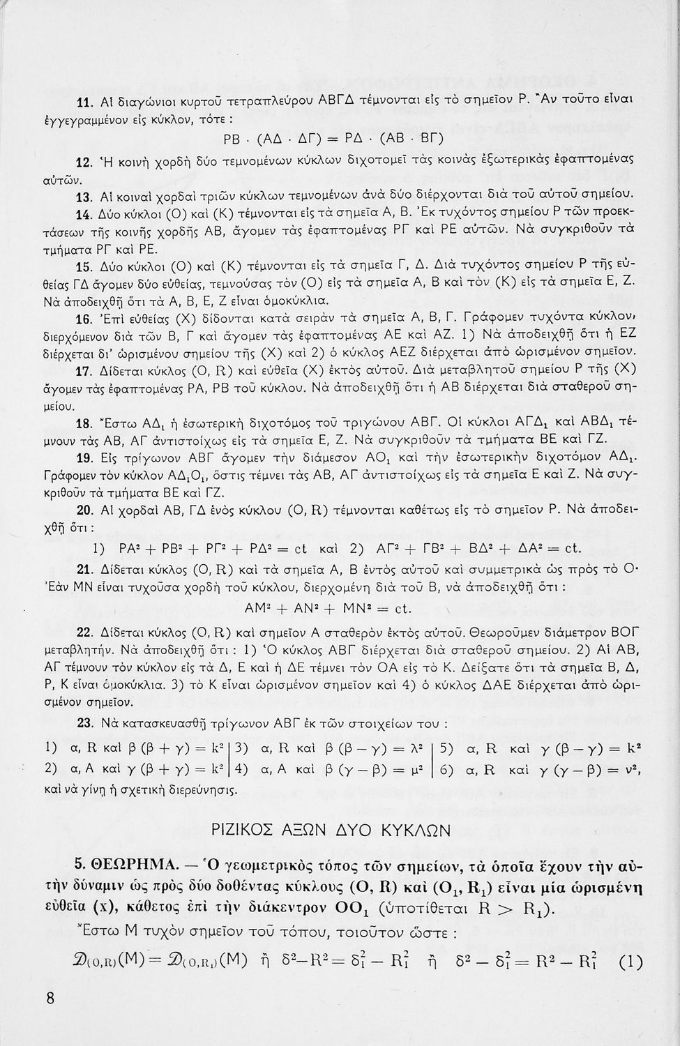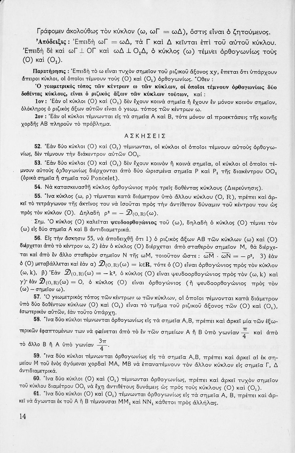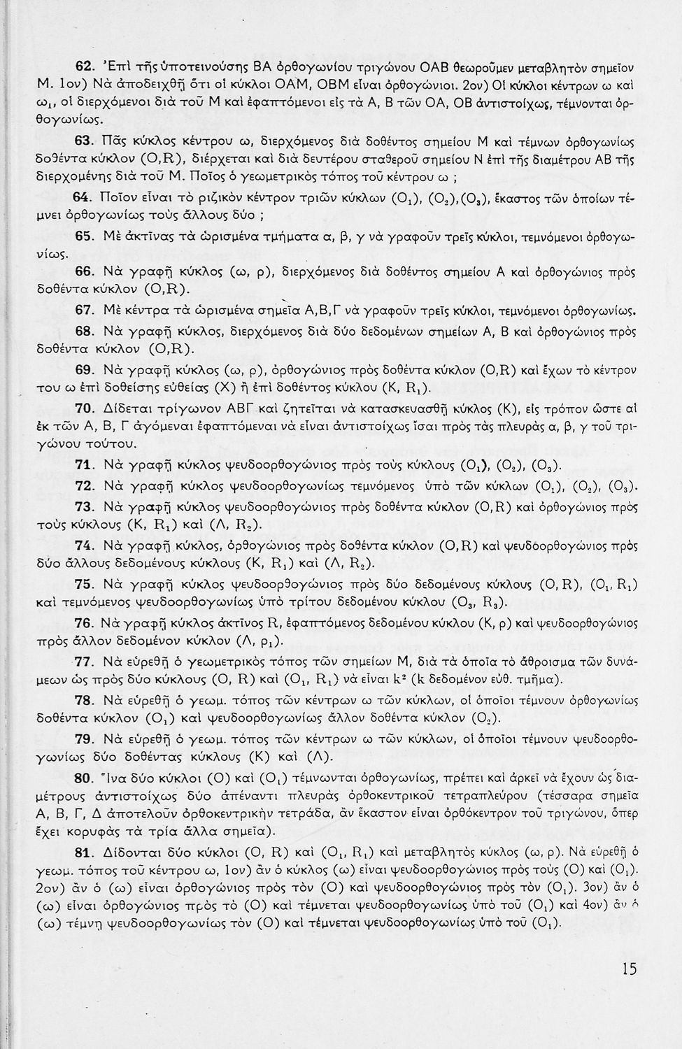 Σχολικό εγχειρίδιο Γεωμετρίας για τις Γ΄, Δ΄, Ε΄, ΣΤ΄ Γυμνασίου που περιλαμβάνει θεωρία και ασκήσεις και είναι χωρισμένο σε Επιπεδομετρία και Στερεομετρία.