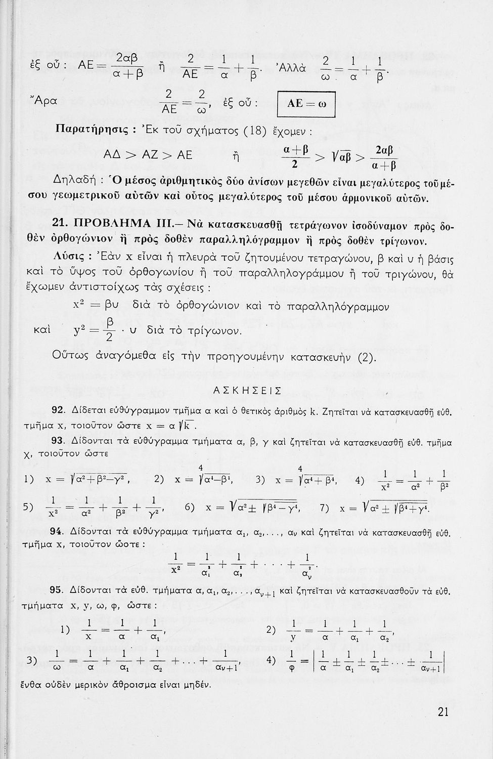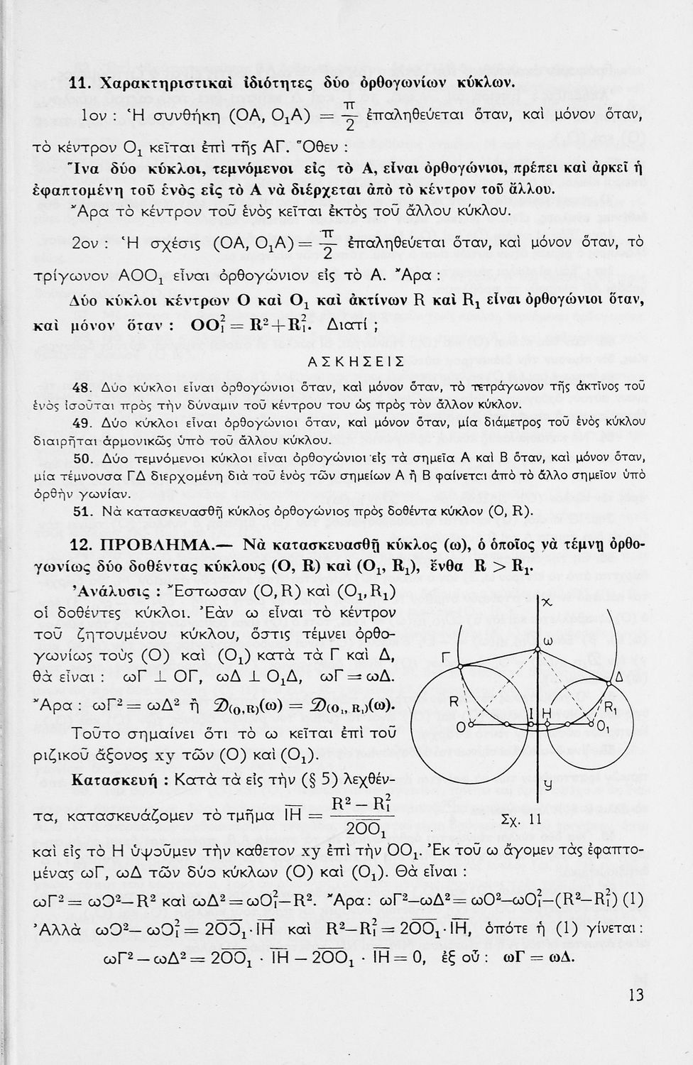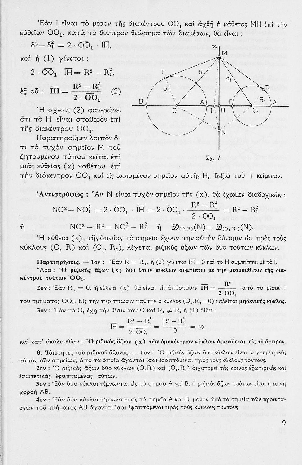 Σχολικό εγχειρίδιο Μαθηματικών για τις Δ΄, Ε΄ και ΣΤ΄ Γυμνασίου χωρισμένο σε θεωρήματα και ασκήσεις που εστιάζει στη Γεωμετρία. Φέρει το σύμβολο της δικτατορίας.