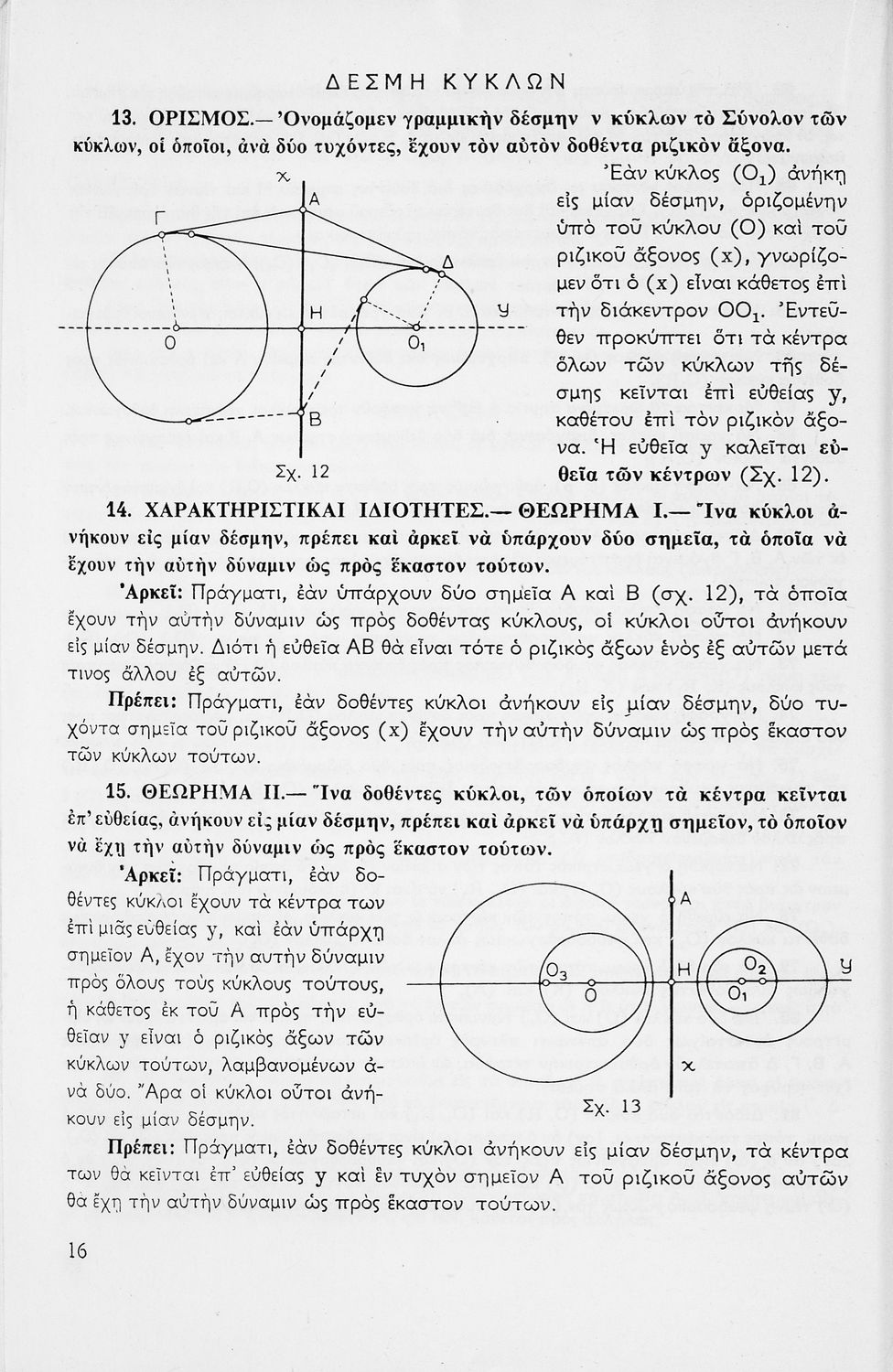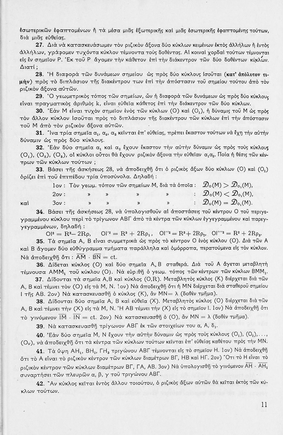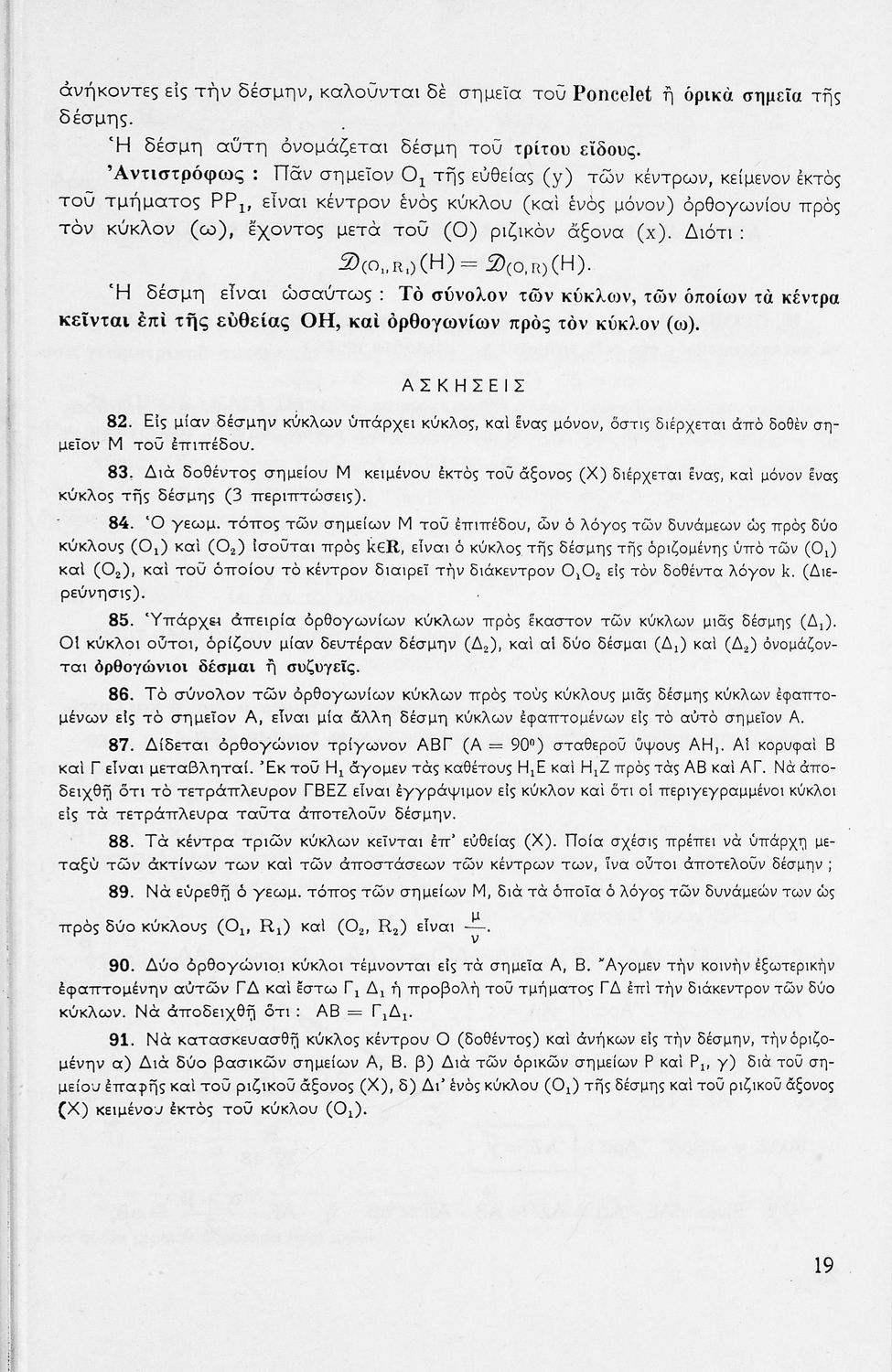 Σχολικό εγχειρίδιο Γεωμετρίας για τις Γ΄, Δ΄, Ε΄, ΣΤ΄ Γυμνασίου που περιλαμβάνει θεωρία και ασκήσεις και είναι χωρισμένο σε Επιπεδομετρία και Στερεομετρία. Φέρει το σύμβολο της δικτατορίας.