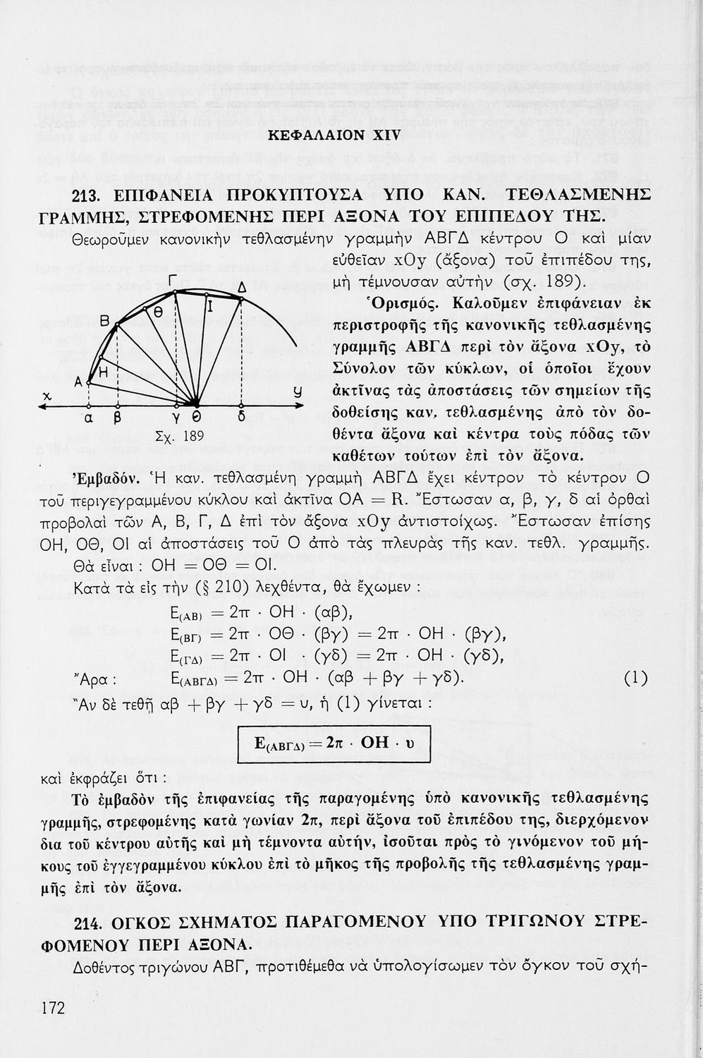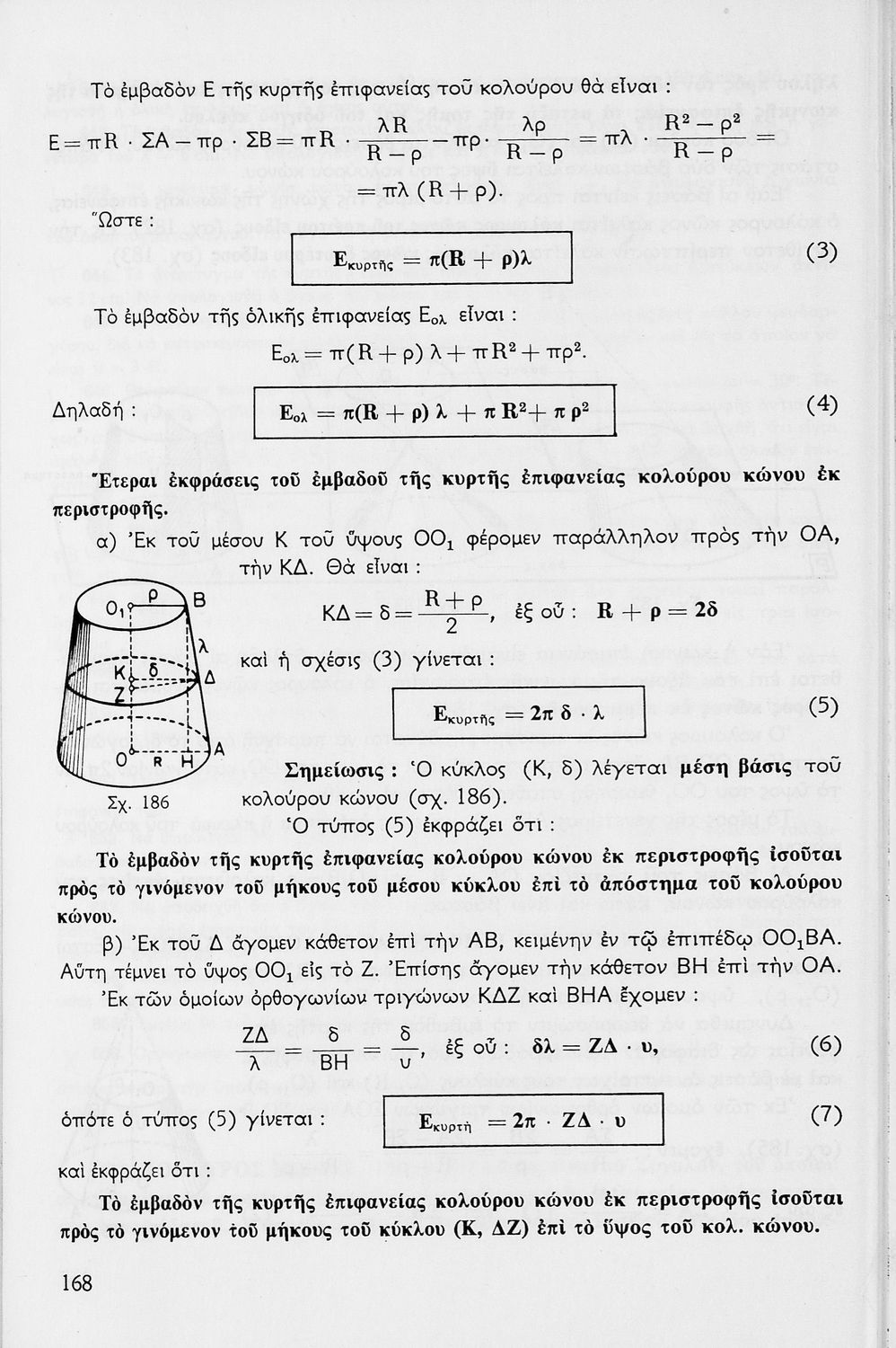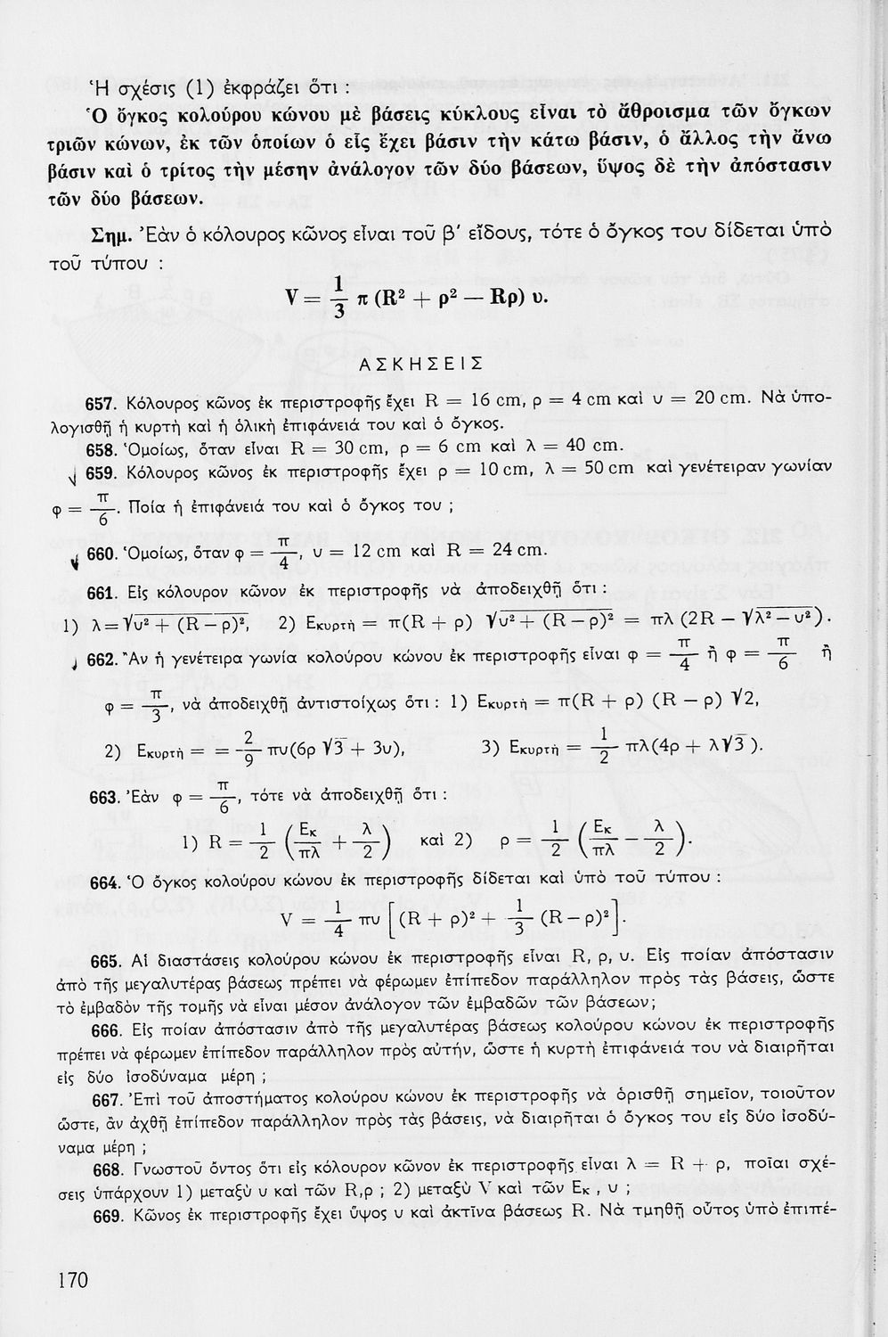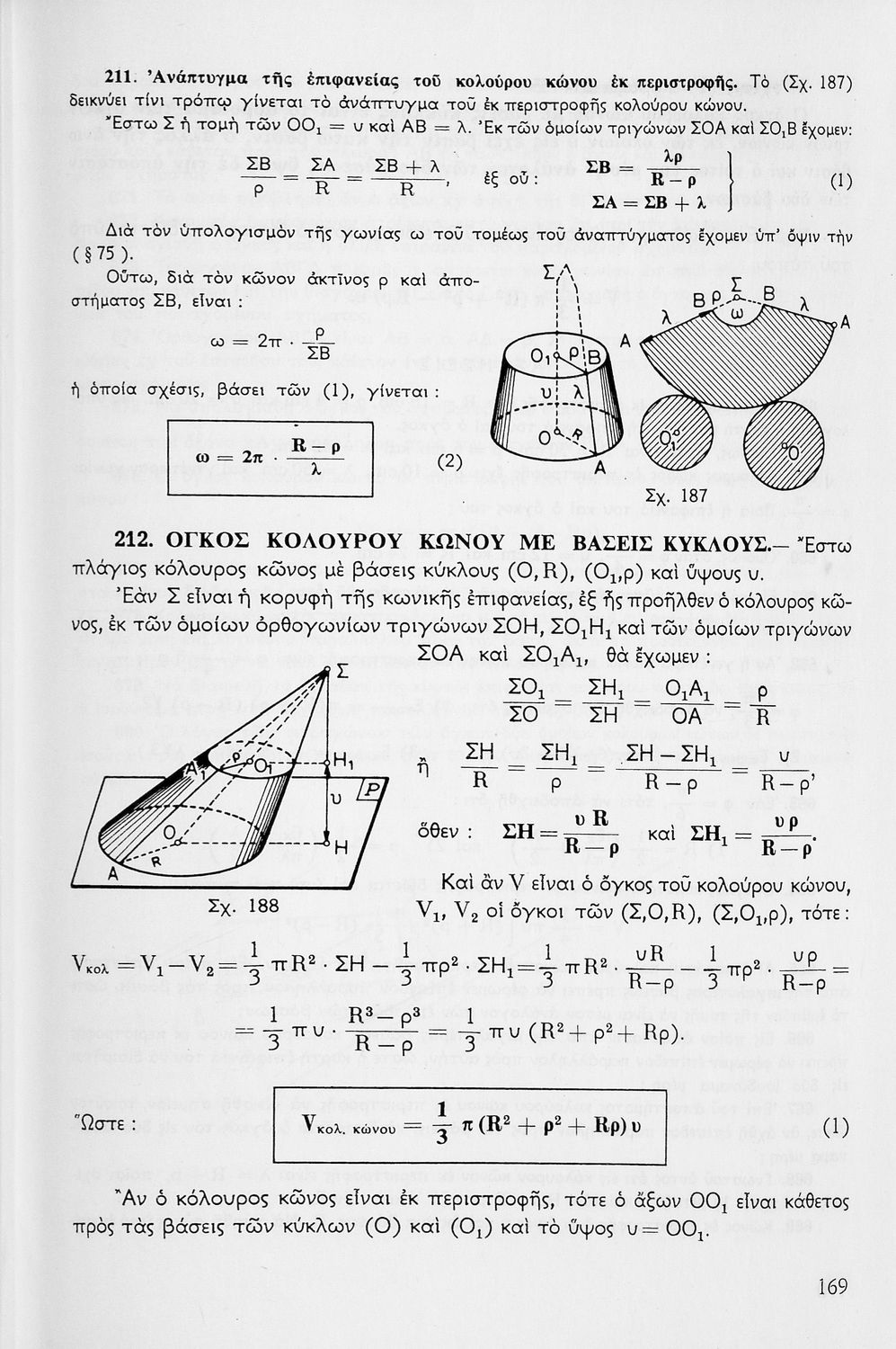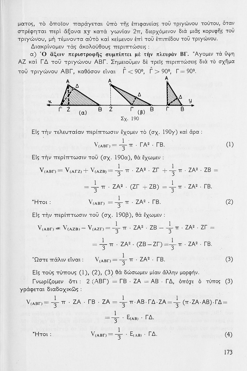 Σχολικό εγχειρίδιο Γεωμετρίας για τις Γ΄, Δ΄, Ε΄, ΣΤ΄ Γυμνασίου που περιλαμβάνει θεωρία και ασκήσεις και είναι χωρισμένο σε Επιπεδομετρία και Στερεομετρία. Φέρει το σύμβολο της δικτατορίας.