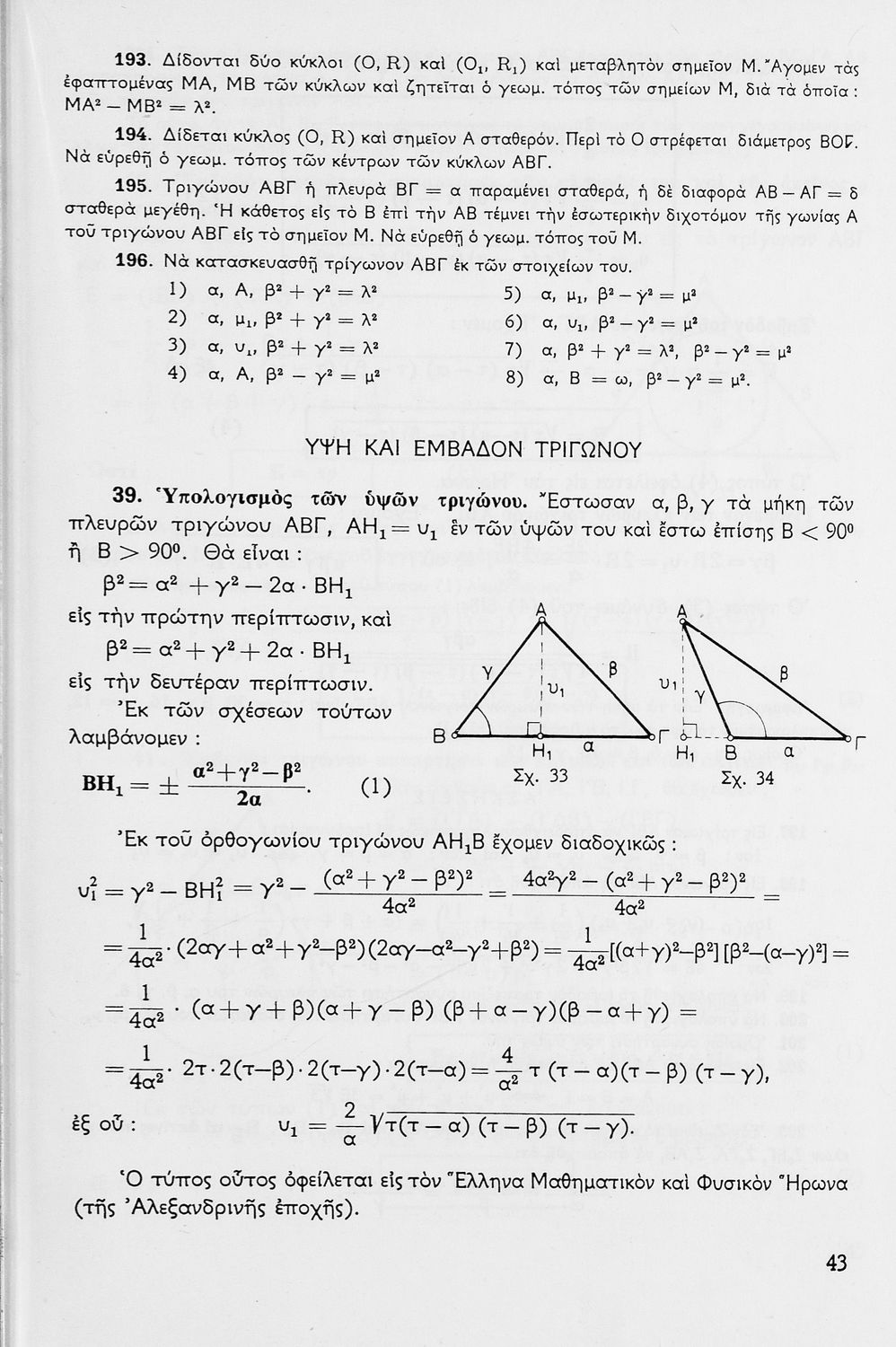 Σχολικό εγχειρίδιο Γεωμετρίας για τις Γ΄, Δ΄, Ε΄, ΣΤ΄ Γυμνασίου που περιλαμβάνει θεωρία και ασκήσεις και είναι χωρισμένο σε Επιπεδομετρία και Στερεομετρία. Φέρει το σύμβολο της δικτατορίας.