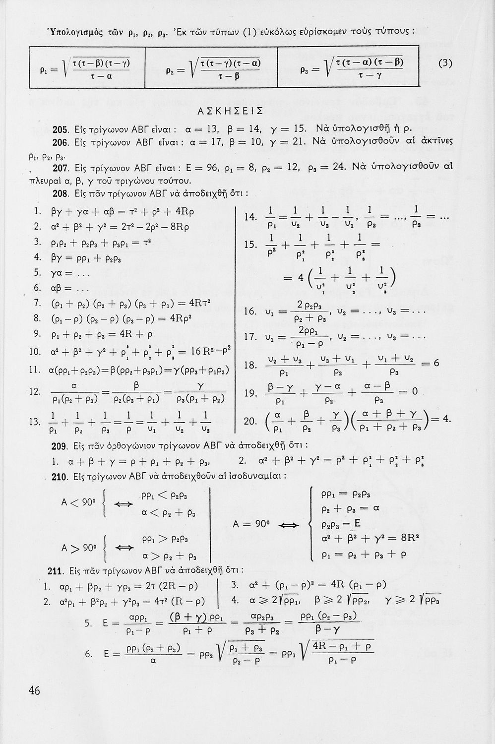 Σχολικό εγχειρίδιο Τριγωνομετρίας για τις Δ΄, Ε΄ και ΣΤ΄ Γυμνασίου που περιλαμβάνει θεωρία και ασκήσεις. Φέρει το σύμβολο της δικτατορίας.