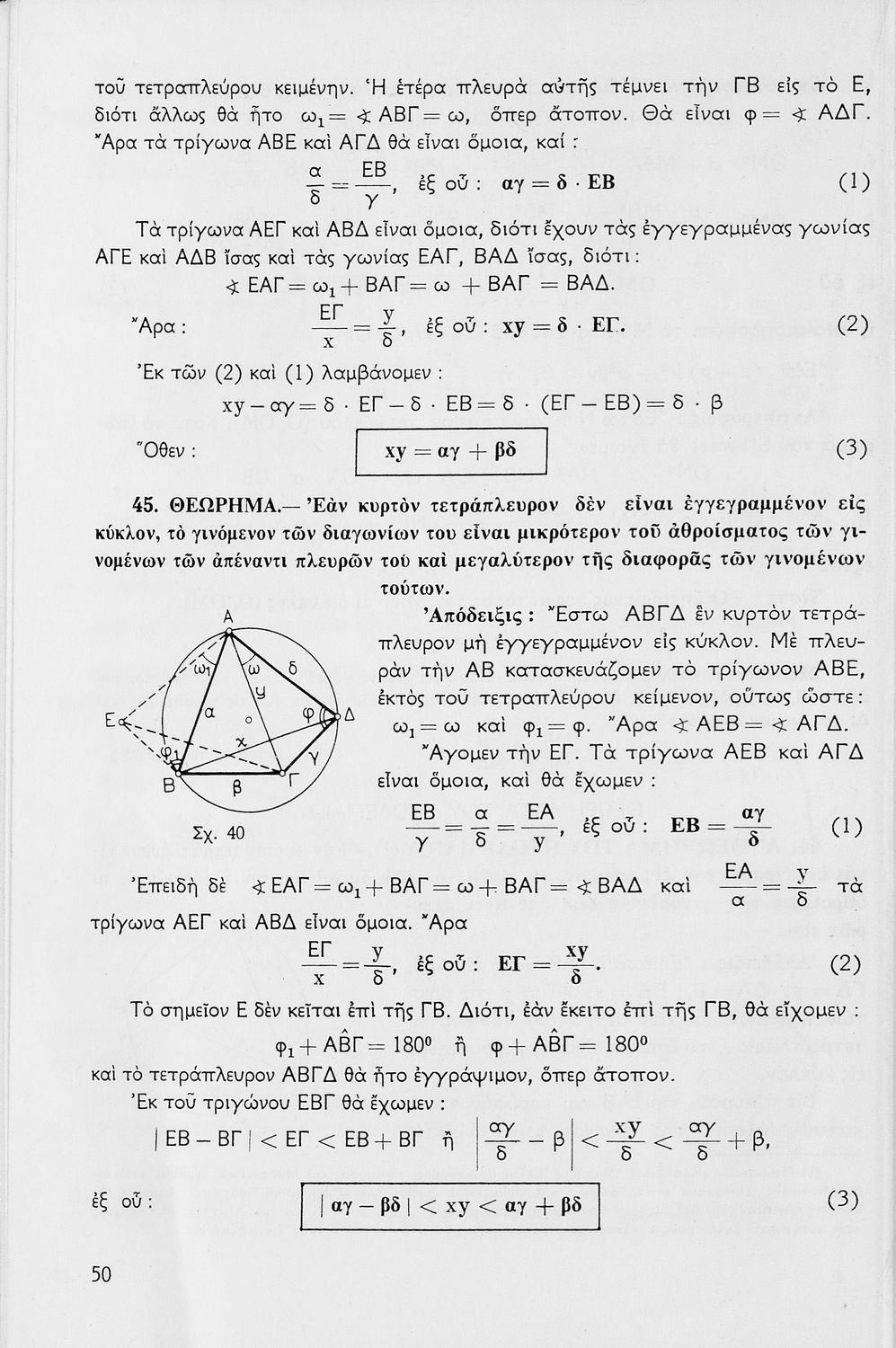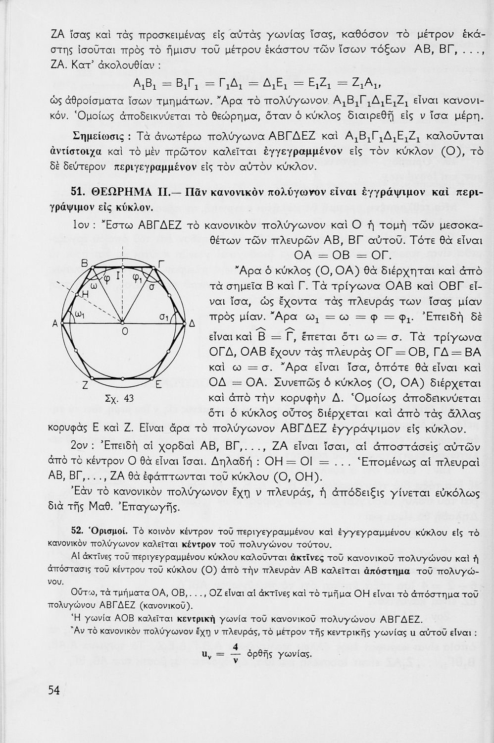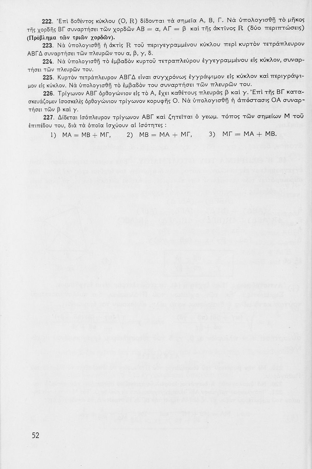 Σχολικό εγχειρίδιο Μαθηματικών για τις Δ΄, Ε΄ και ΣΤ΄ Γυμνασίου χωρισμένο σε θεωρήματα και ασκήσεις που εστιάζει στη Γεωμετρία. Φέρει το σύμβολο της δικτατορίας.