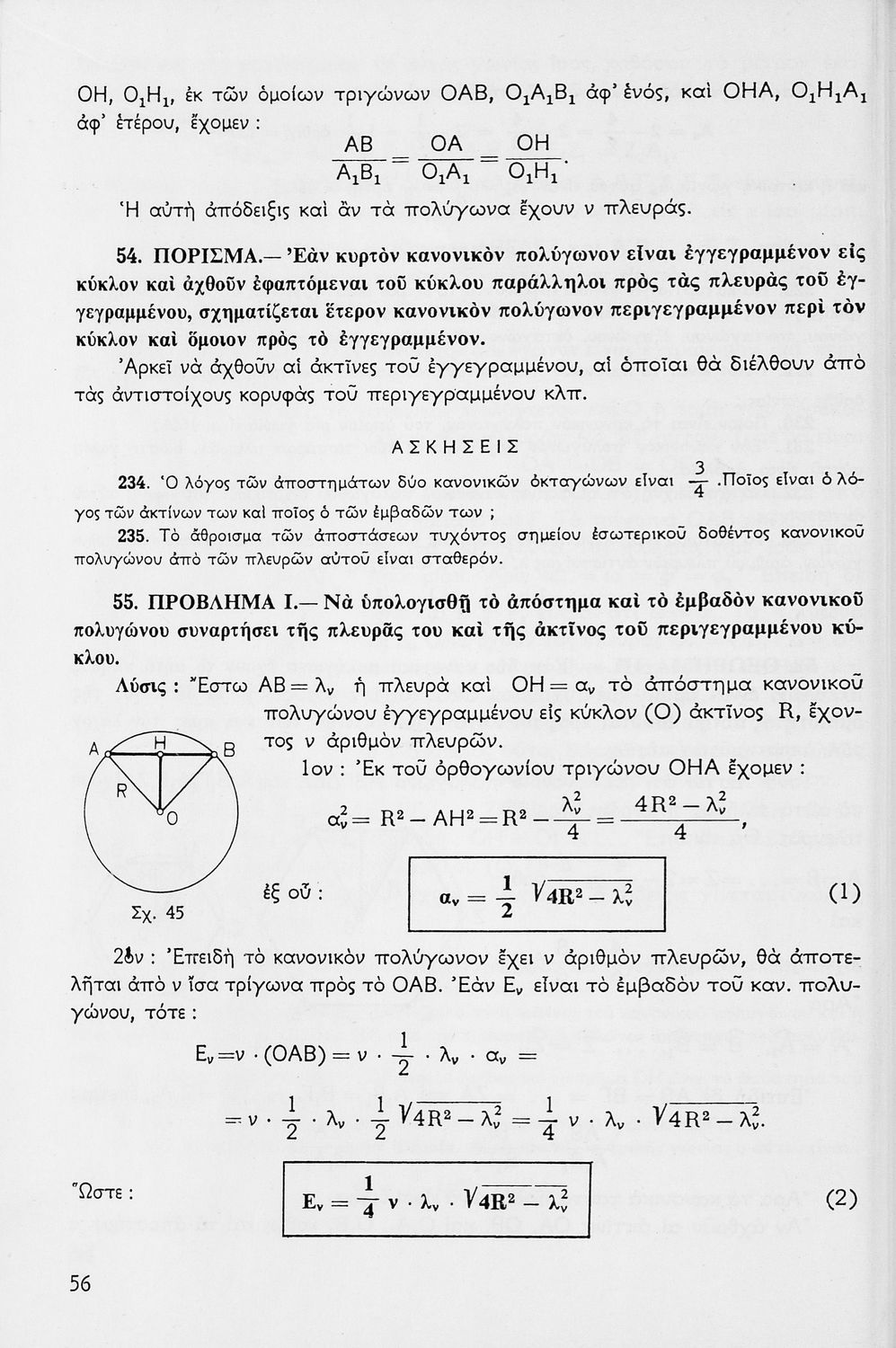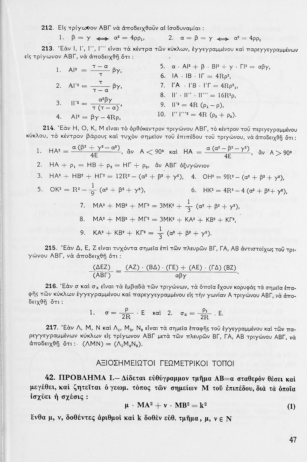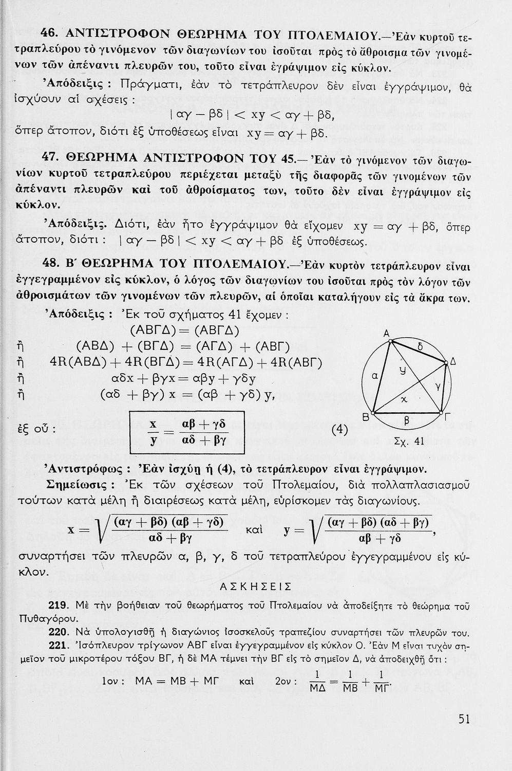 Σχολικό εγχειρίδιο Μαθηματικών για τις Δ΄, Ε΄ και ΣΤ΄ Γυμνασίου χωρισμένο σε θεωρήματα και ασκήσεις που εστιάζει στη Γεωμετρία. Φέρει το σύμβολο της δικτατορίας.