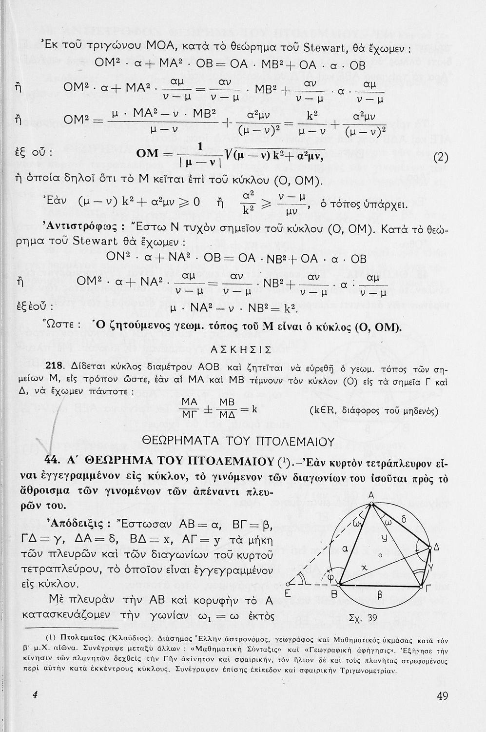 Σχολικό εγχειρίδιο Μαθηματικών Δ΄ και Ε΄ Γυμνασίου που είναι χωρισμένο σε θεωρήματα και ασκήσεις και εστιάζει στη Γεωμετρία. Φέρει το σύμβολο της δικτατορίας.