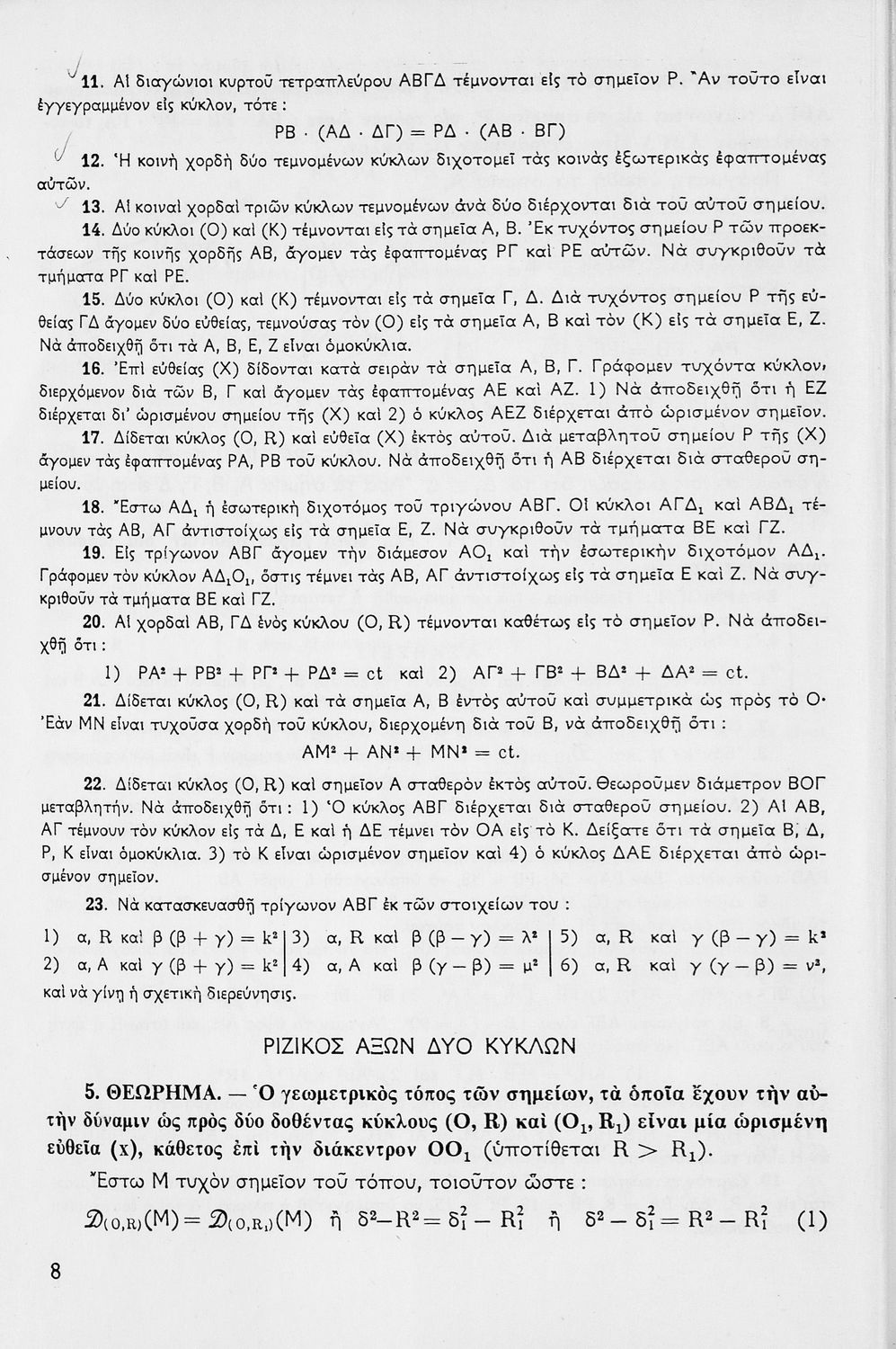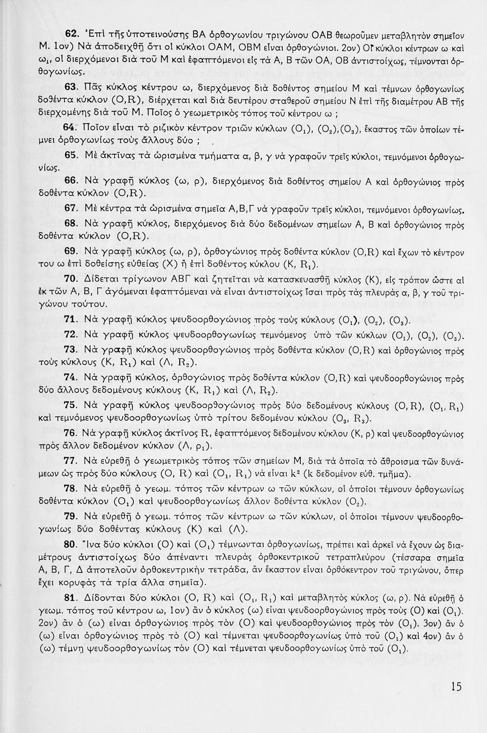 Σχολικό εγχειρίδιο Γεωμετρίας για τις Δ΄, Ε΄ και ΣΤ΄ Γυμνασίου που περιλαμβάνει αξιώματα, θεωρήματα και κατασκευές και είναι χωρισμένο σε γεωμετρία επιπέδου και γεωμετρία χώρου.