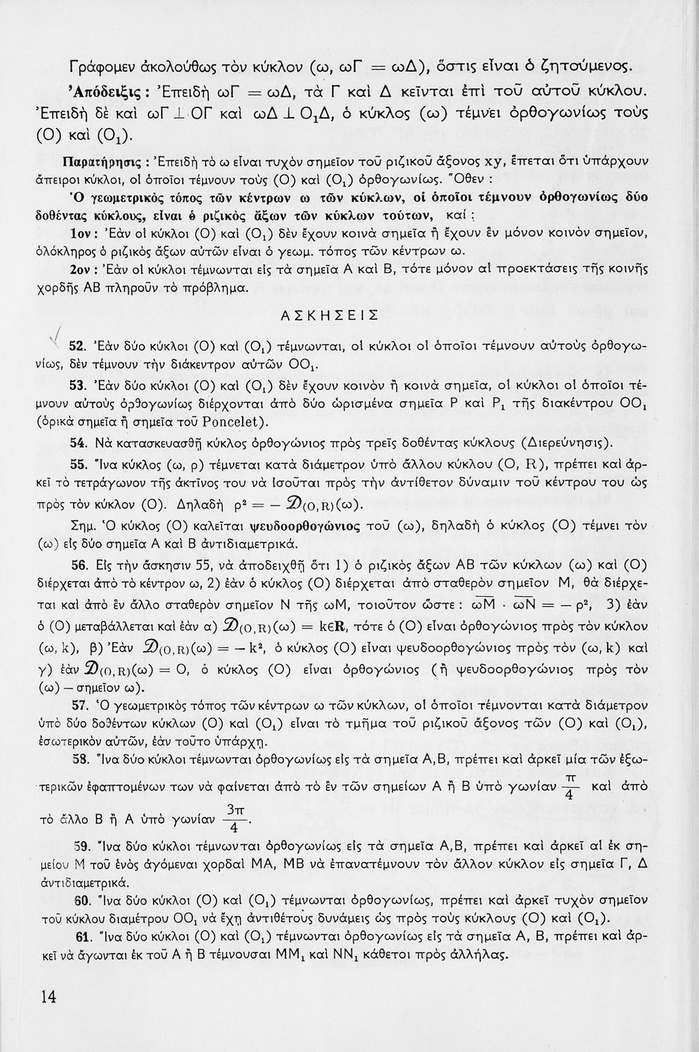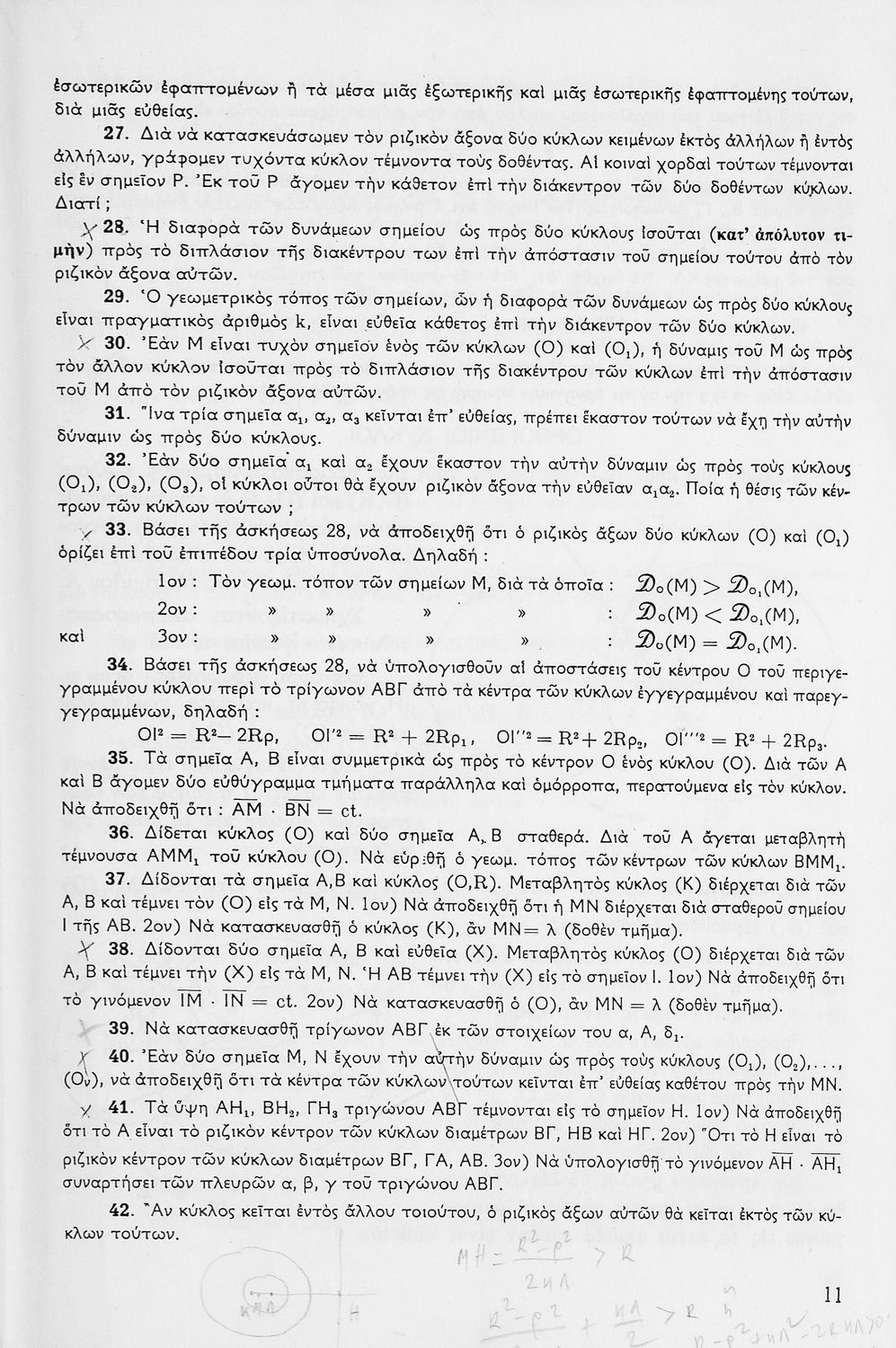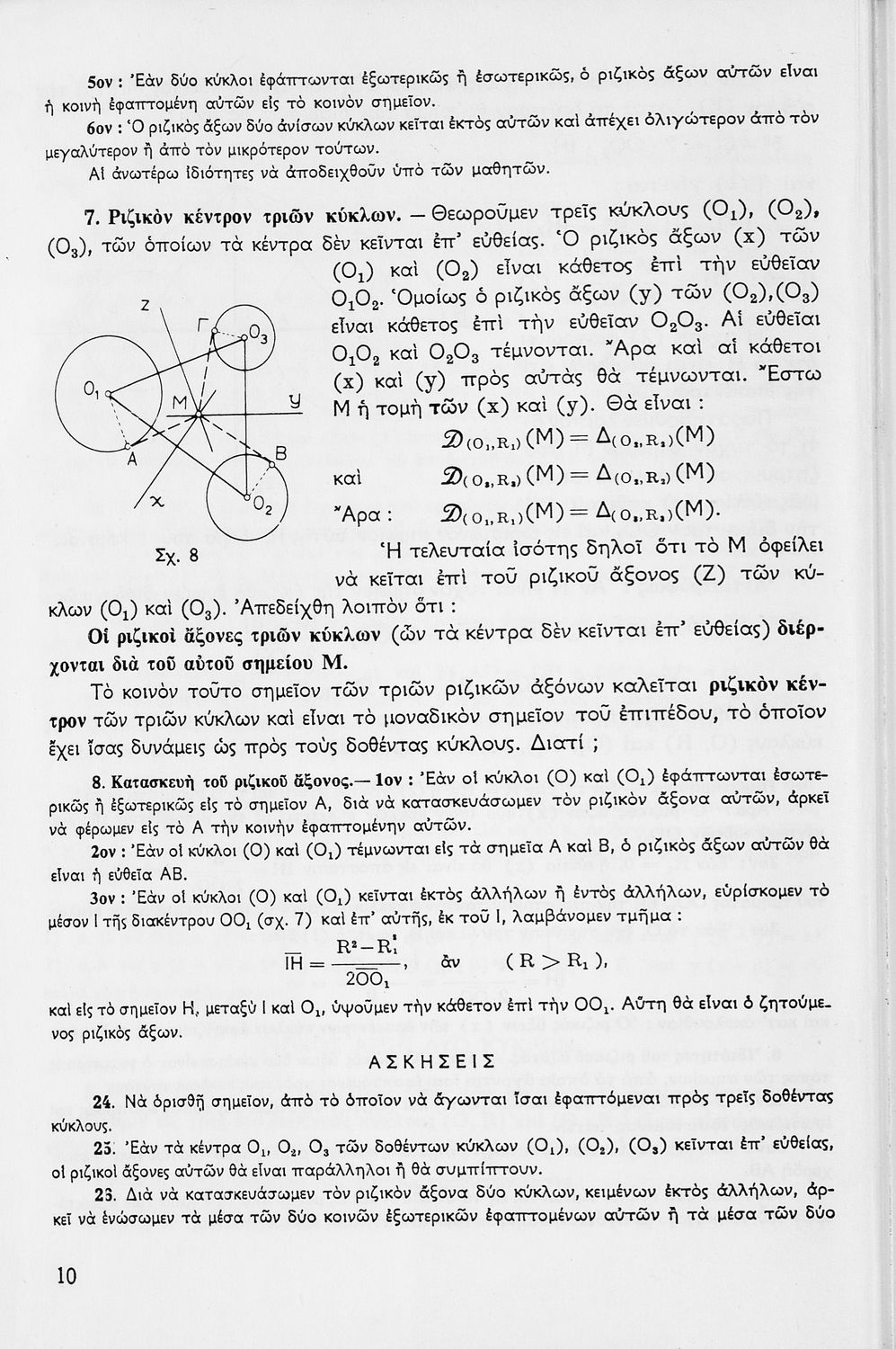 Σχολικό εγχειρίδιο Γεωμετρίας για τις Γ΄, Δ΄, Ε΄, ΣΤ΄ Γυμνασίου που περιλαμβάνει θεωρία και ασκήσεις και είναι χωρισμένο σε Επιπεδομετρία και Στερεομετρία. Φέρει το σύμβολο της δικτατορίας.
