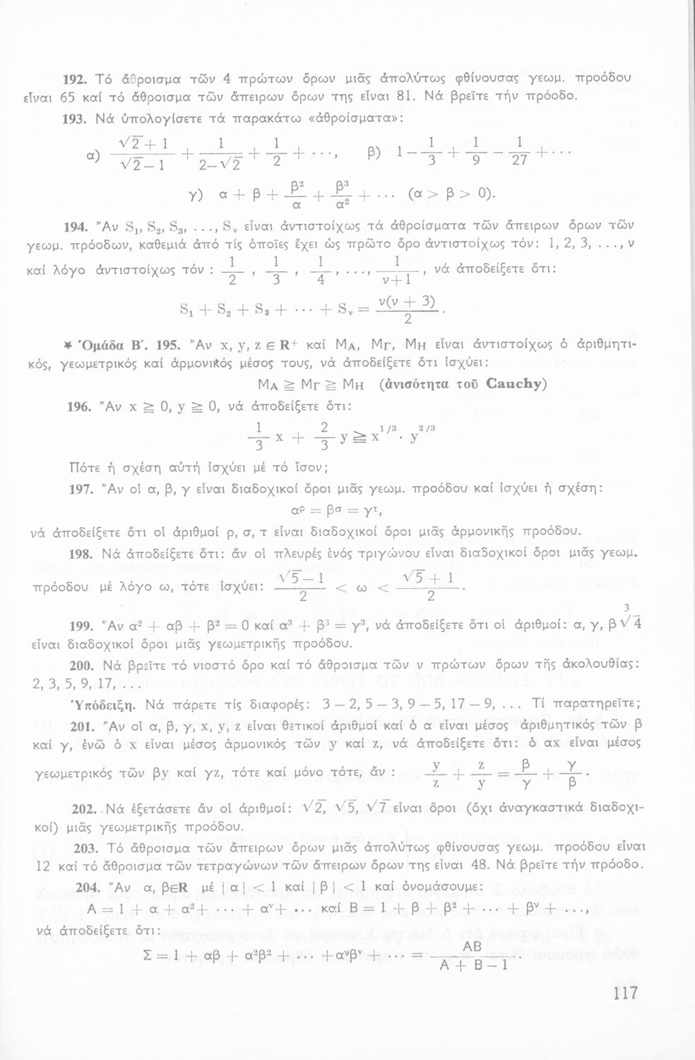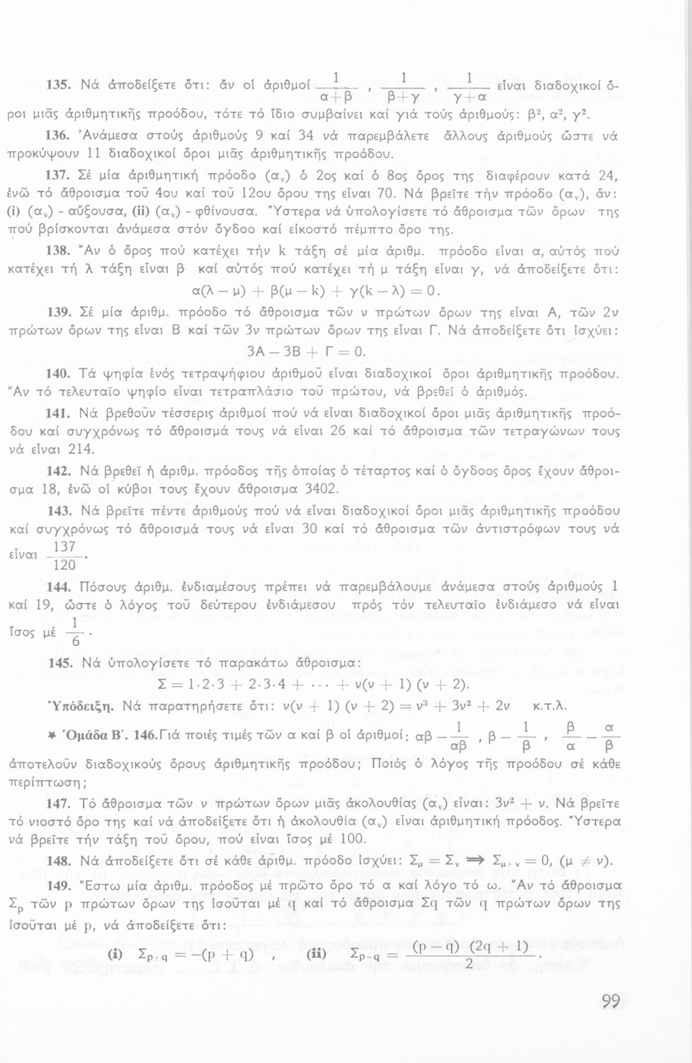 Σχολικό εγχειρίδιο Άλγεβρας Β΄ Λυκείου χωρισμένο σε αξιώματα, θεωρήματα, παρατηρήσεις και ασκήσεις που εστιάζει στα σύνολα, τις ακολουθίες και τις προόδους.