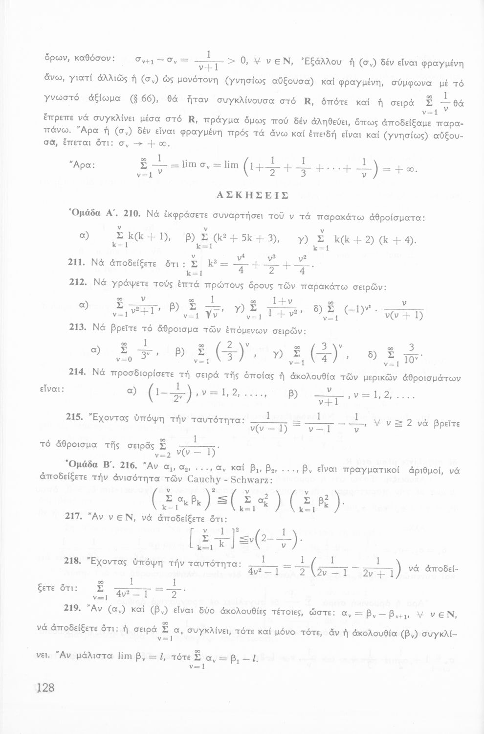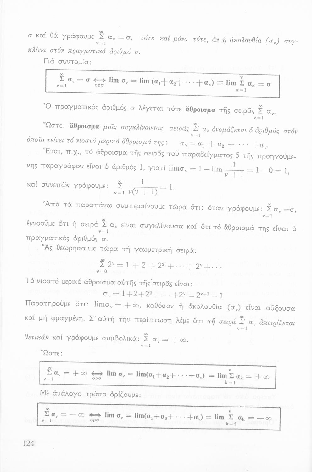 Σχολικό εγχειρίδιο Άλγεβρας Β΄ Λυκείου χωρισμένο σε αξιώματα, θεωρήματα, παρατηρήσεις και ασκήσεις που εστιάζει στα σύνολα, τις ακολουθίες και τις προόδους.