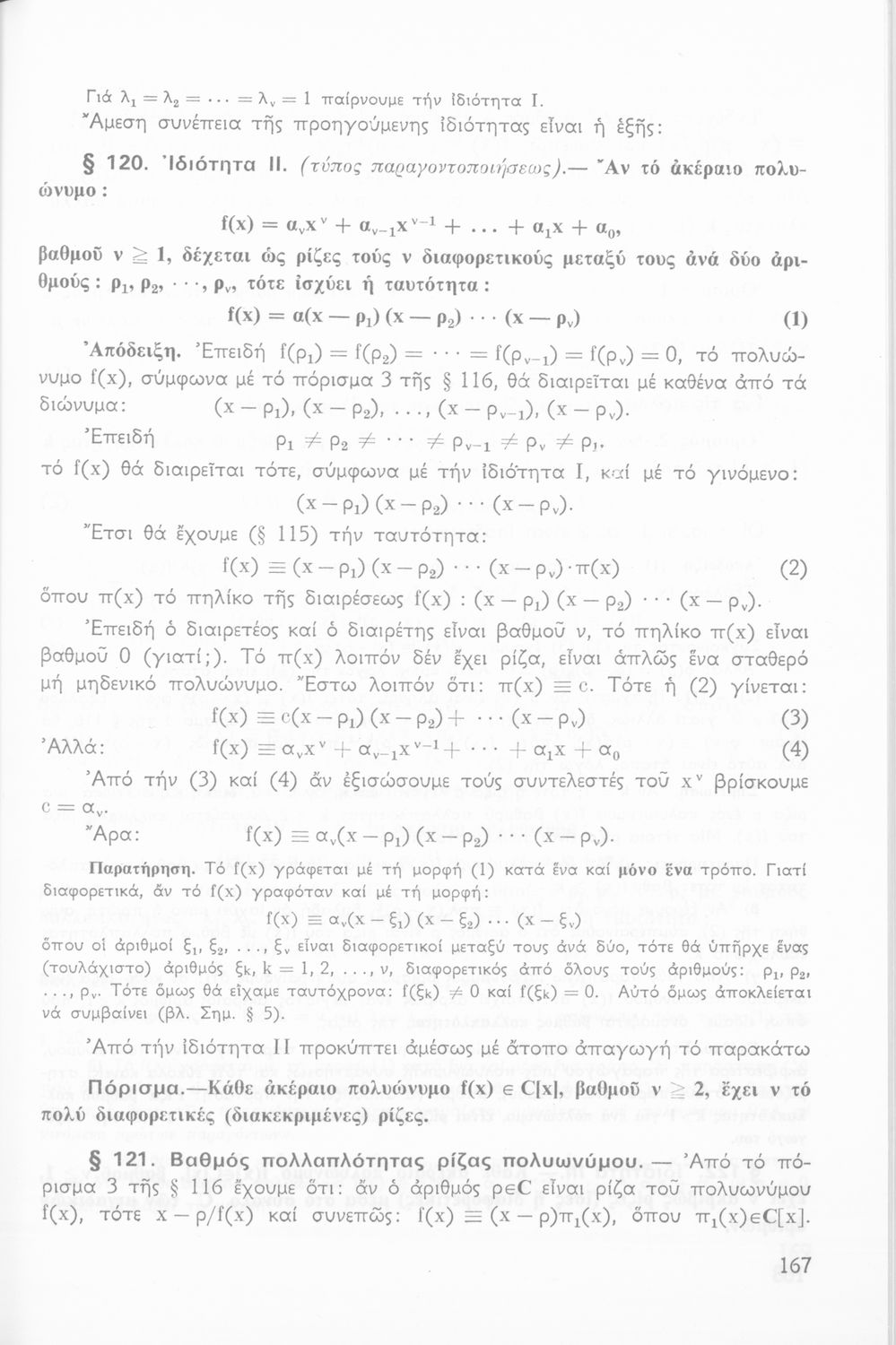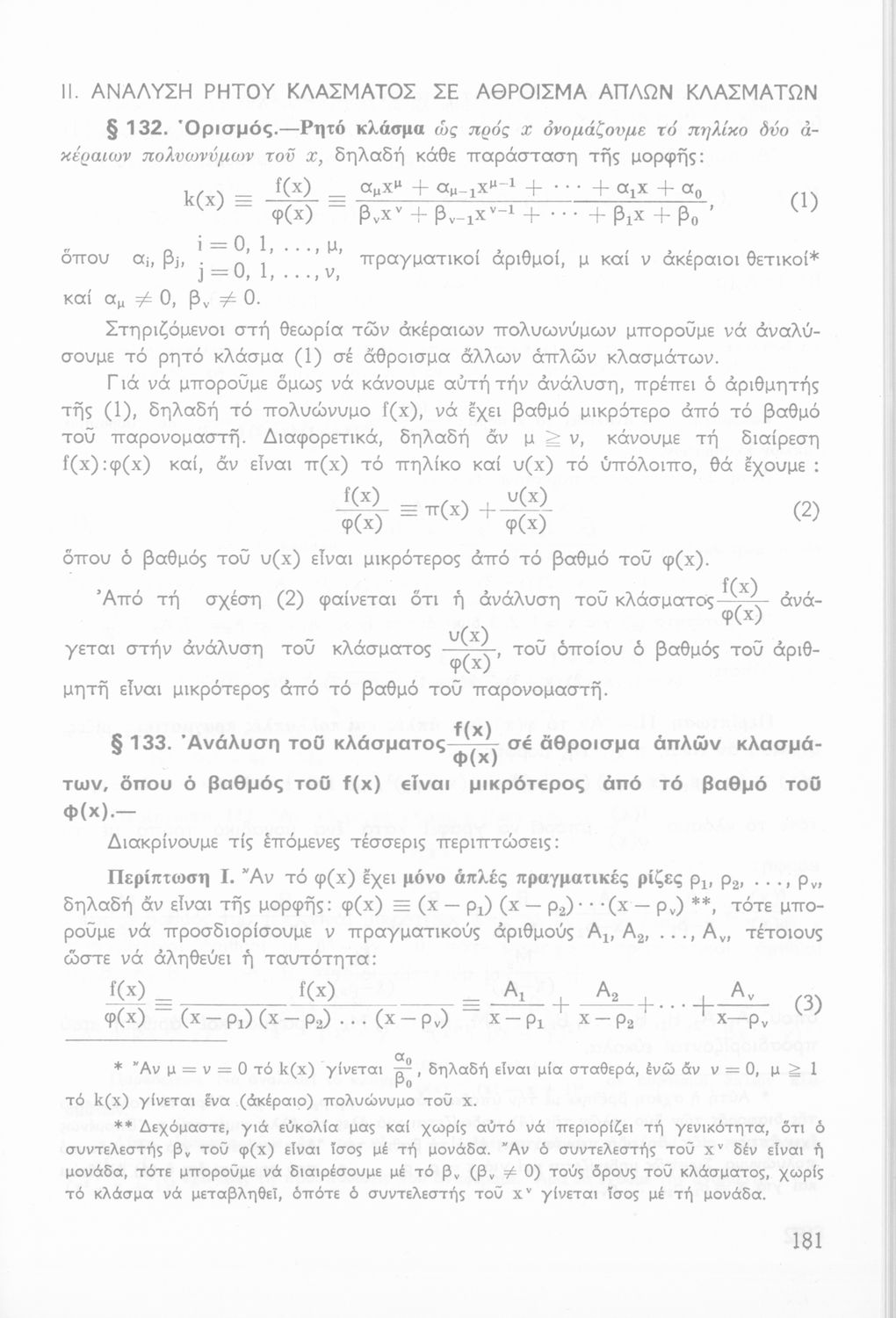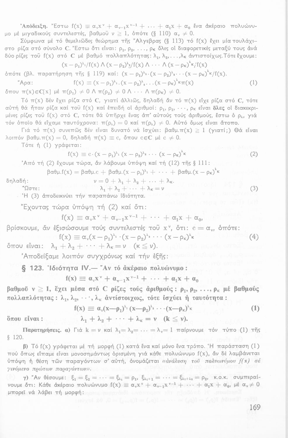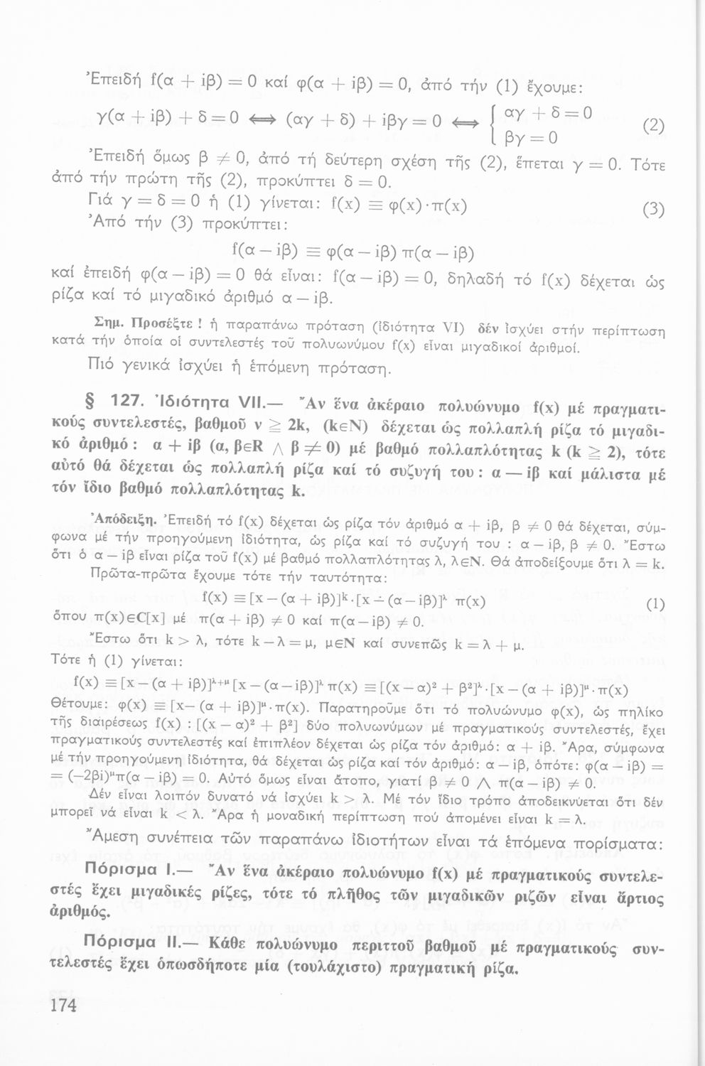 Σχολικό εγχειρίδιο Άλγεβρας Β΄ Λυκείου χωρισμένο σε θεωρία, παρατηρήσεις και ασκήσεις που περιλαμβάνει και στοιχεία από το Διανυσματικό Λογισμό και την Αναλυτική Γεωμετρία που έχουν συγγραφεί από τον Ιωάννη Πανάκη. Το εγχειρίδιο μεταγλωττίστηκε στη δημοτική από τον συγγραφέα και τους Ε. Πλατή, Ιορδ. Παπαδόπουλο και Β. Θεοδωρακόπουλο.