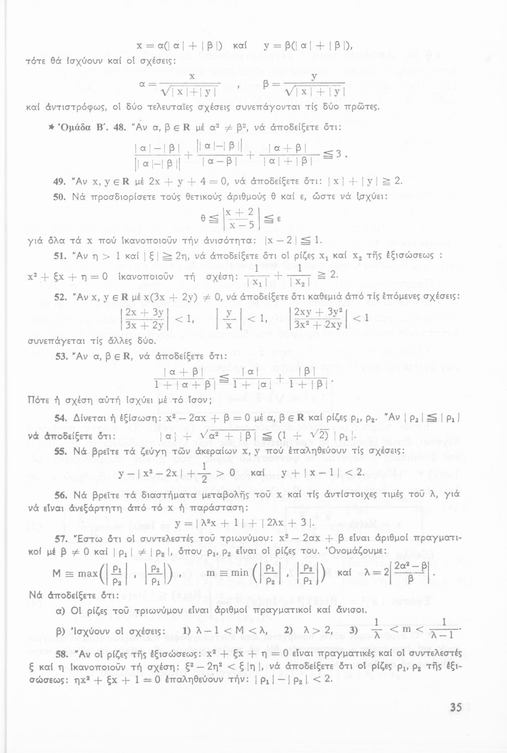 Μαθηματικά άλγεβρα Β΄ Λυκείου